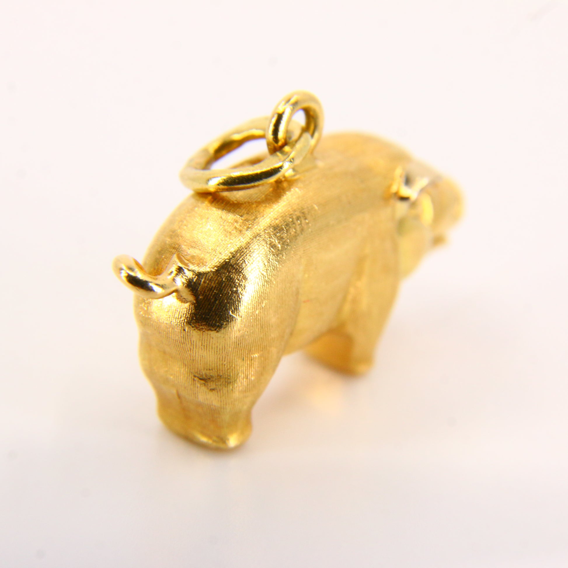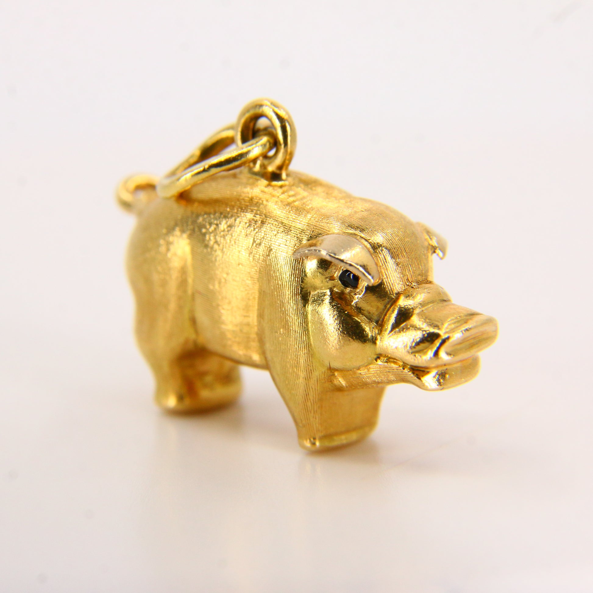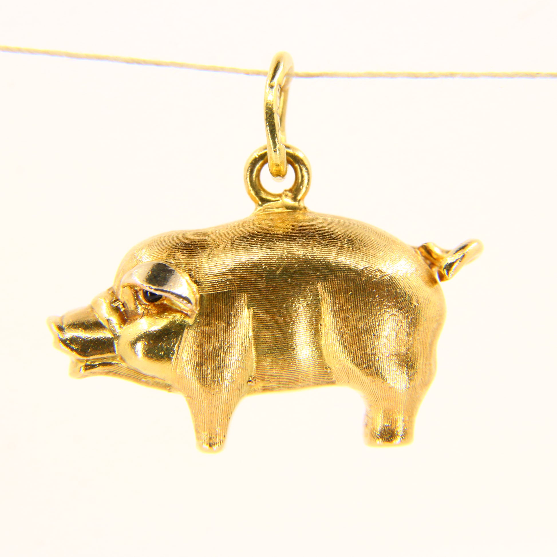 A charming vintage pig charm crafted in solid 18ct yellow gold. This beautifully detailed piece makes a fun and meaningful pendant or bracelet charm—perfect for animal lovers, collectors, or as a symbol of luck and prosperity.