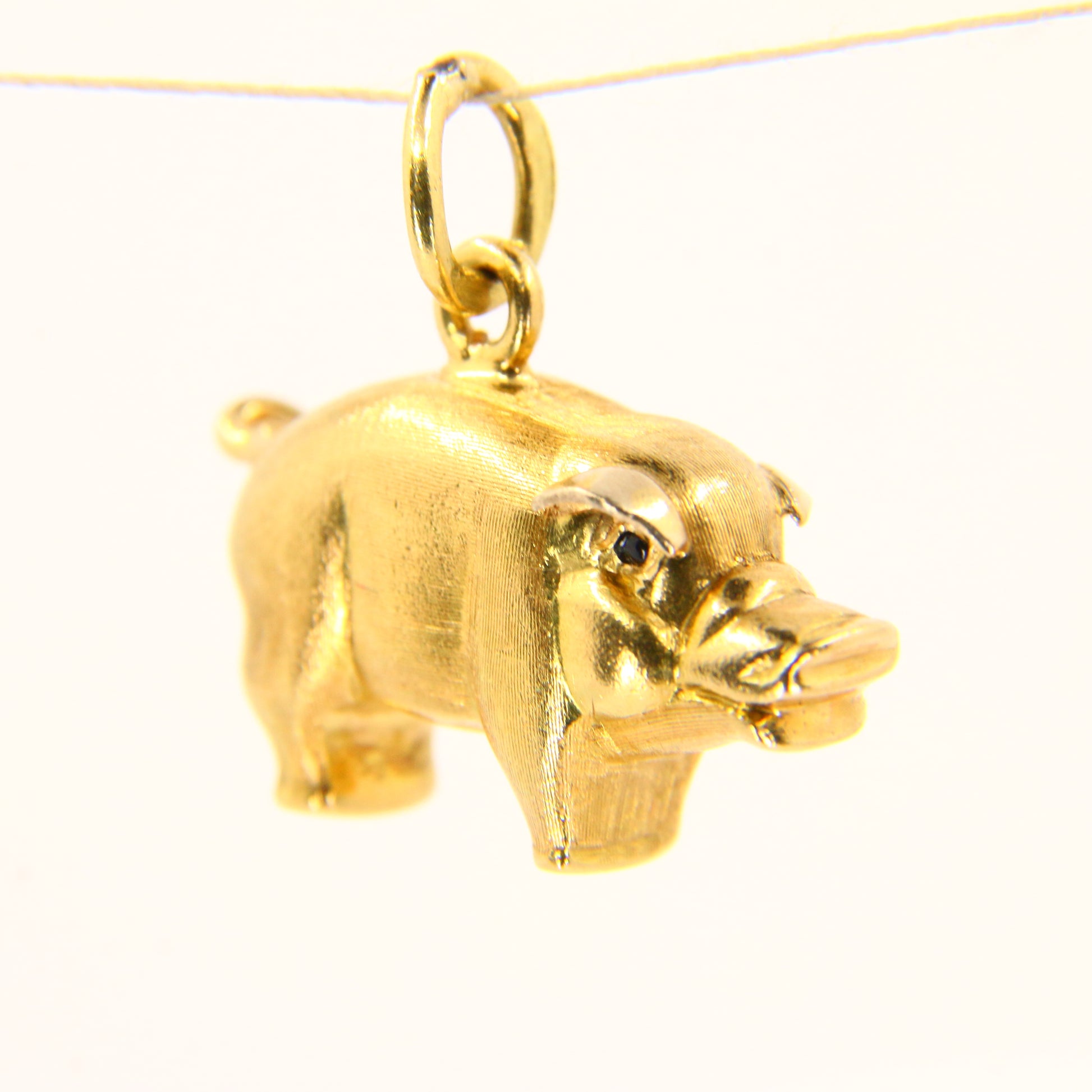 Vintage 18ct Yellow Gold Pig Charm Pendant 18 Carat Animal Gift