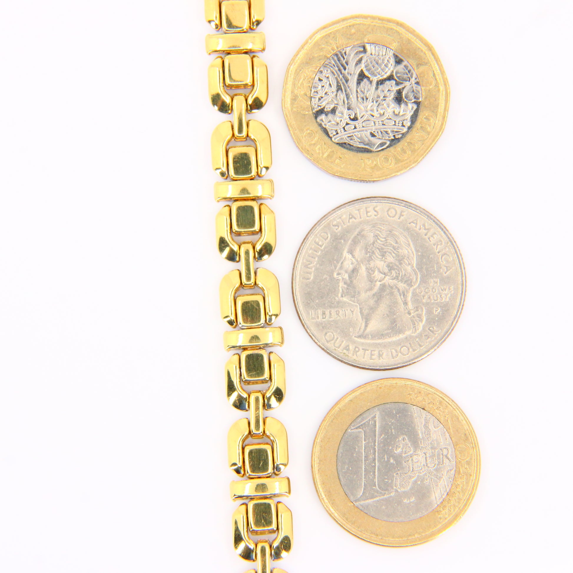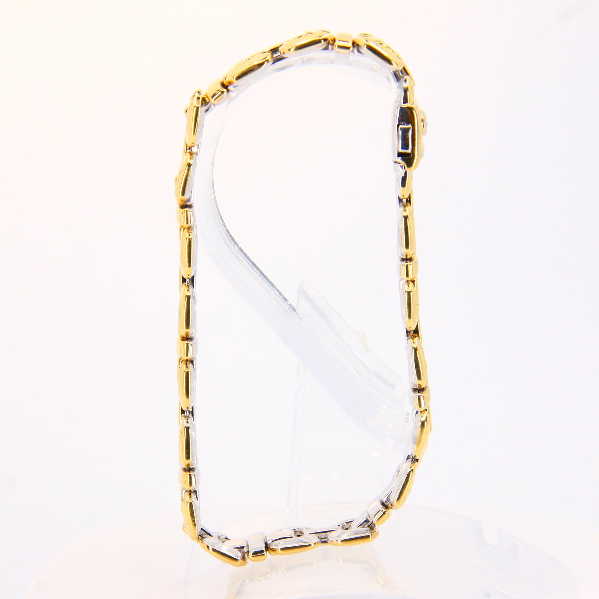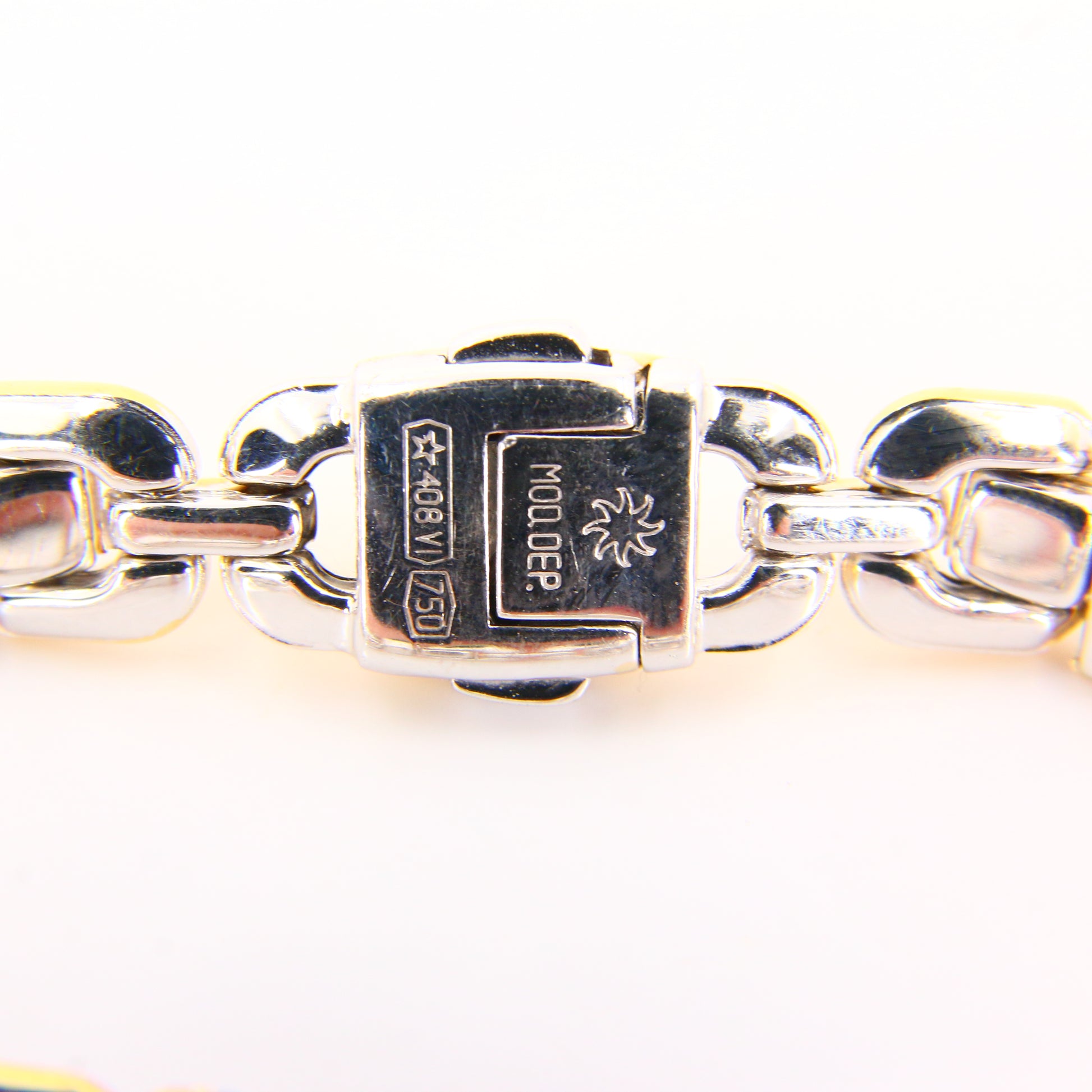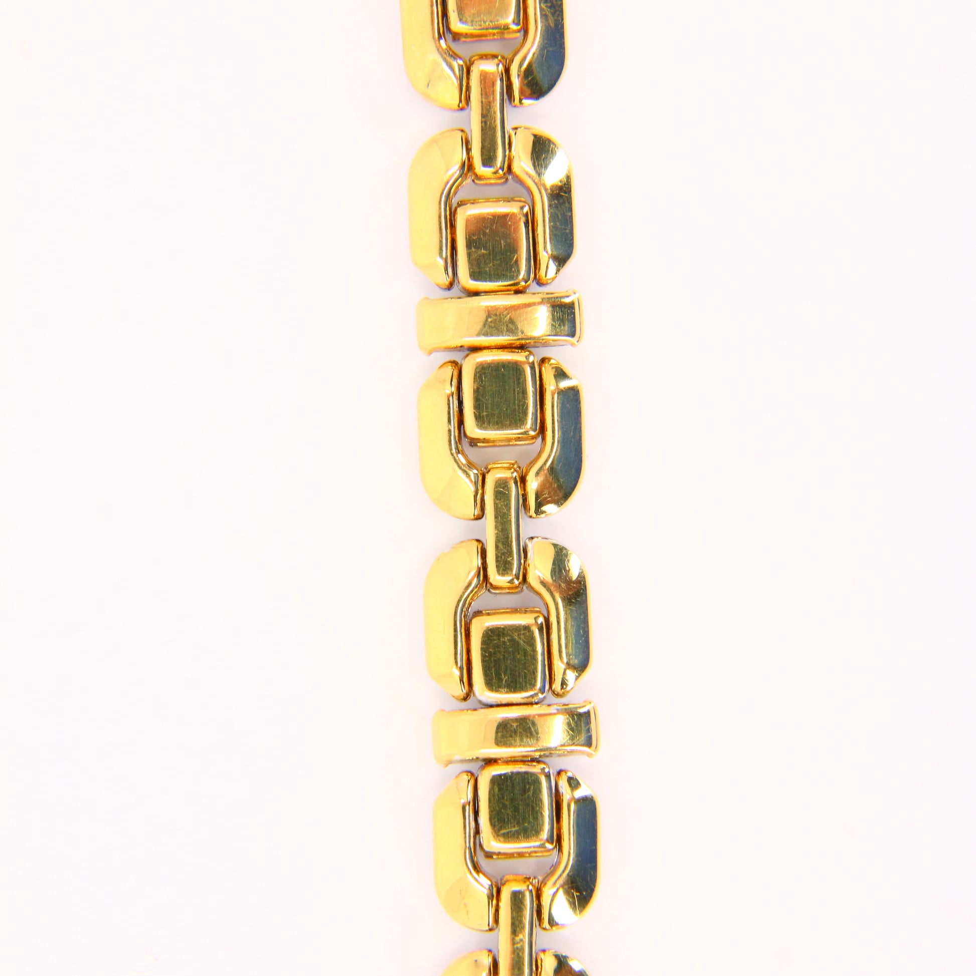 An 8 inch Chimento 18K 2 tone gold bracelet with button clasp. In good condition with only minor signs of wear. Boxed in a plain black box, a perfect gift or addition to any collection.