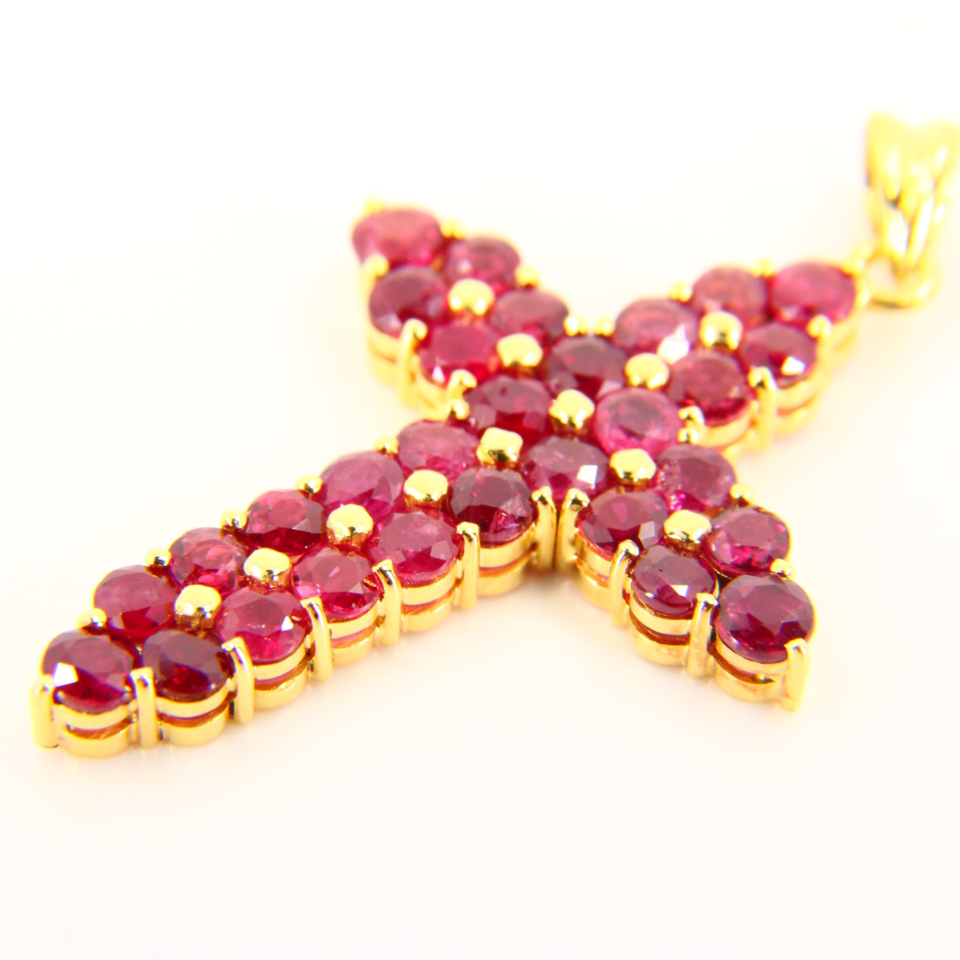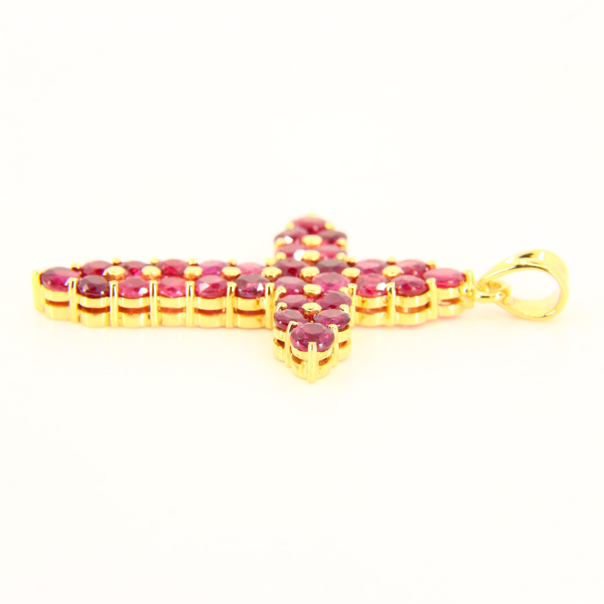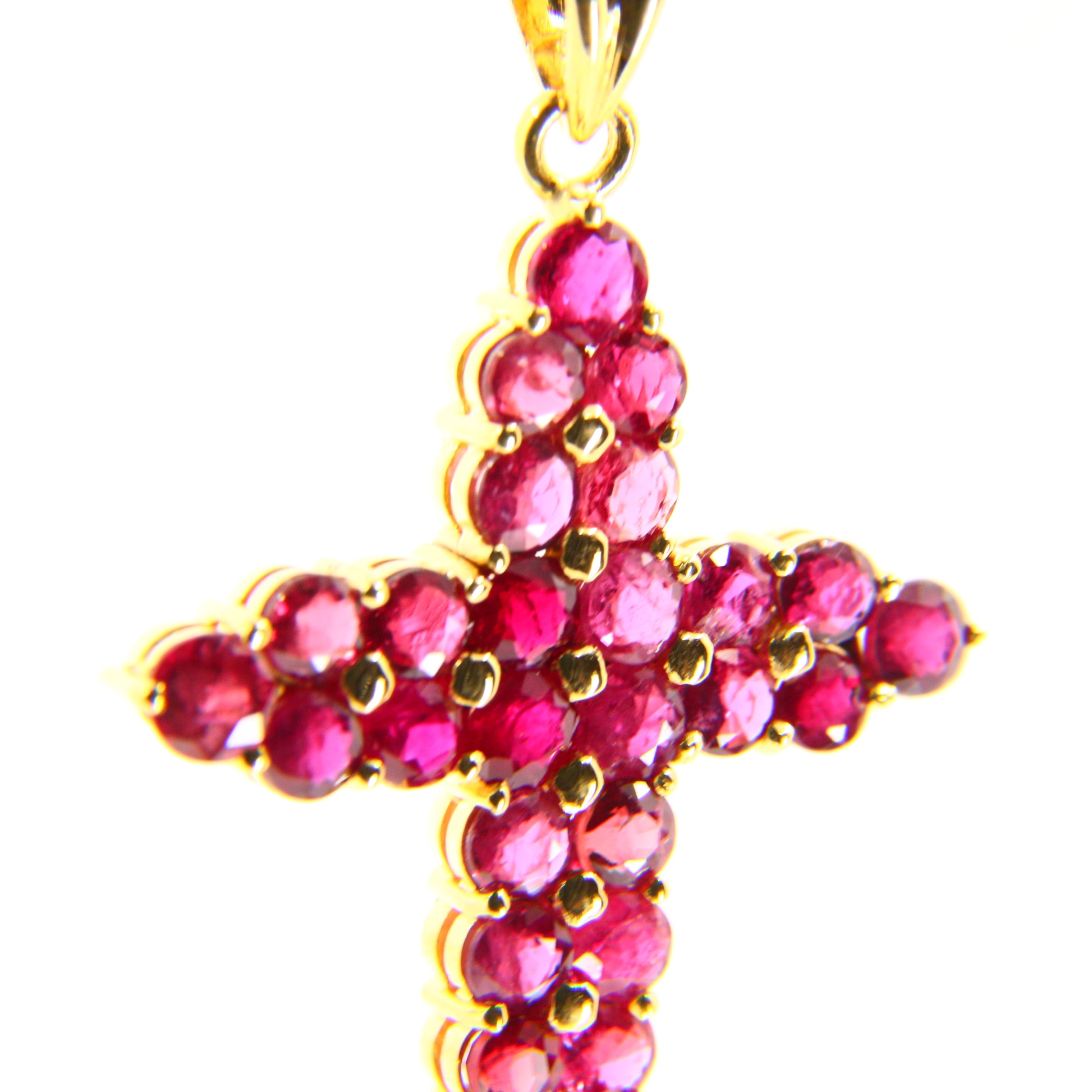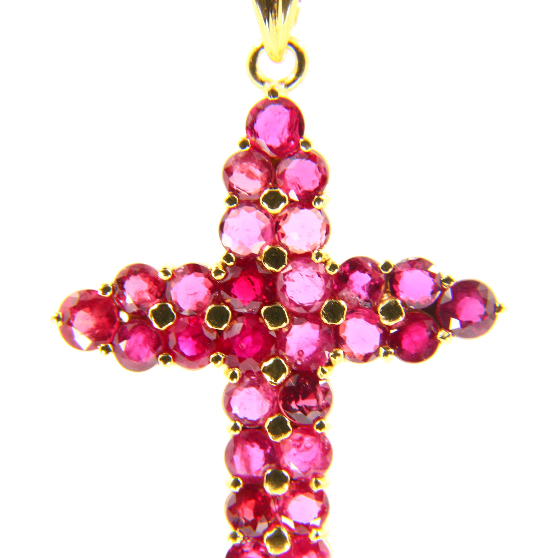 Vintage 18K Gold Cross Pendant Red Garnet Set Studded Cross Charm 18K Yellow Gold