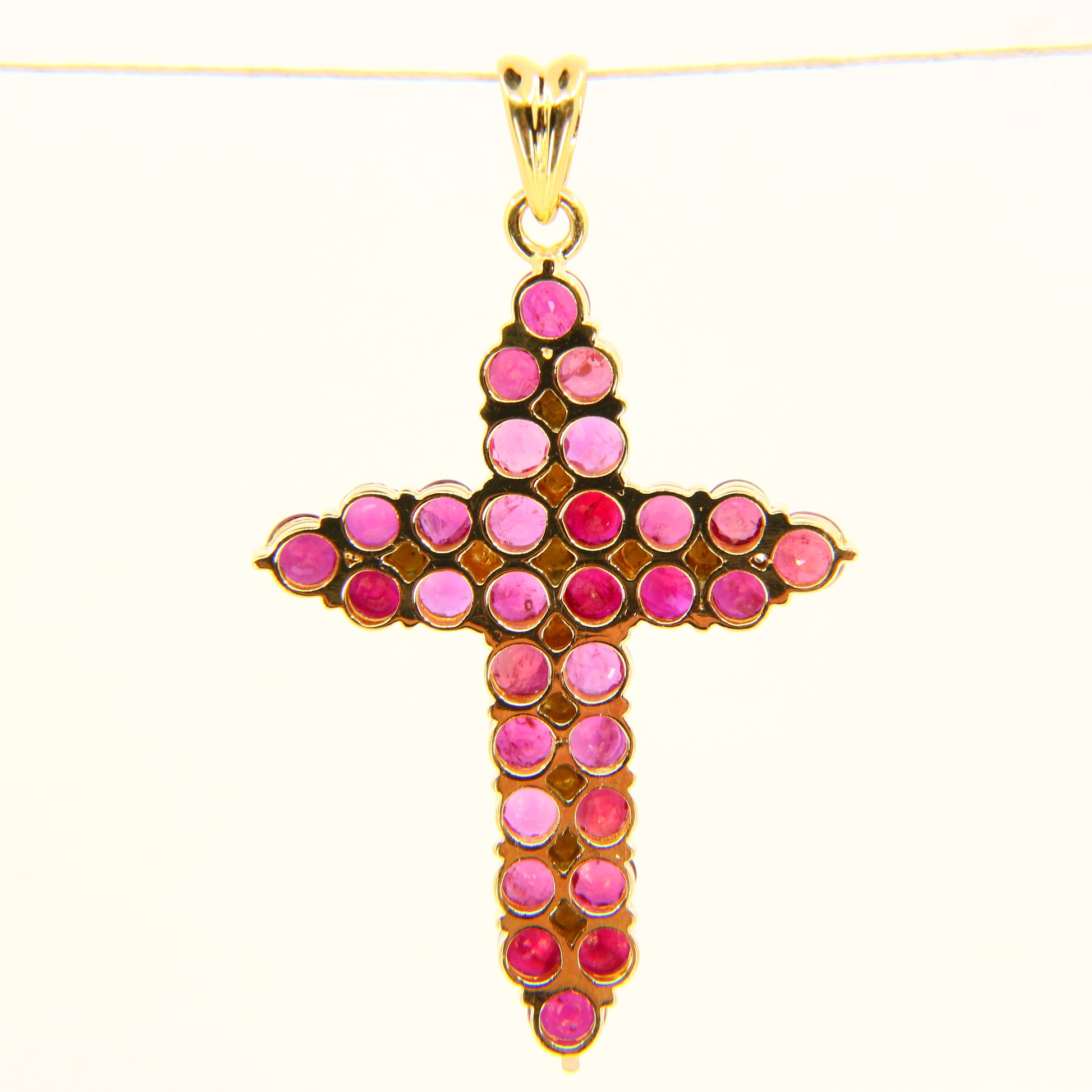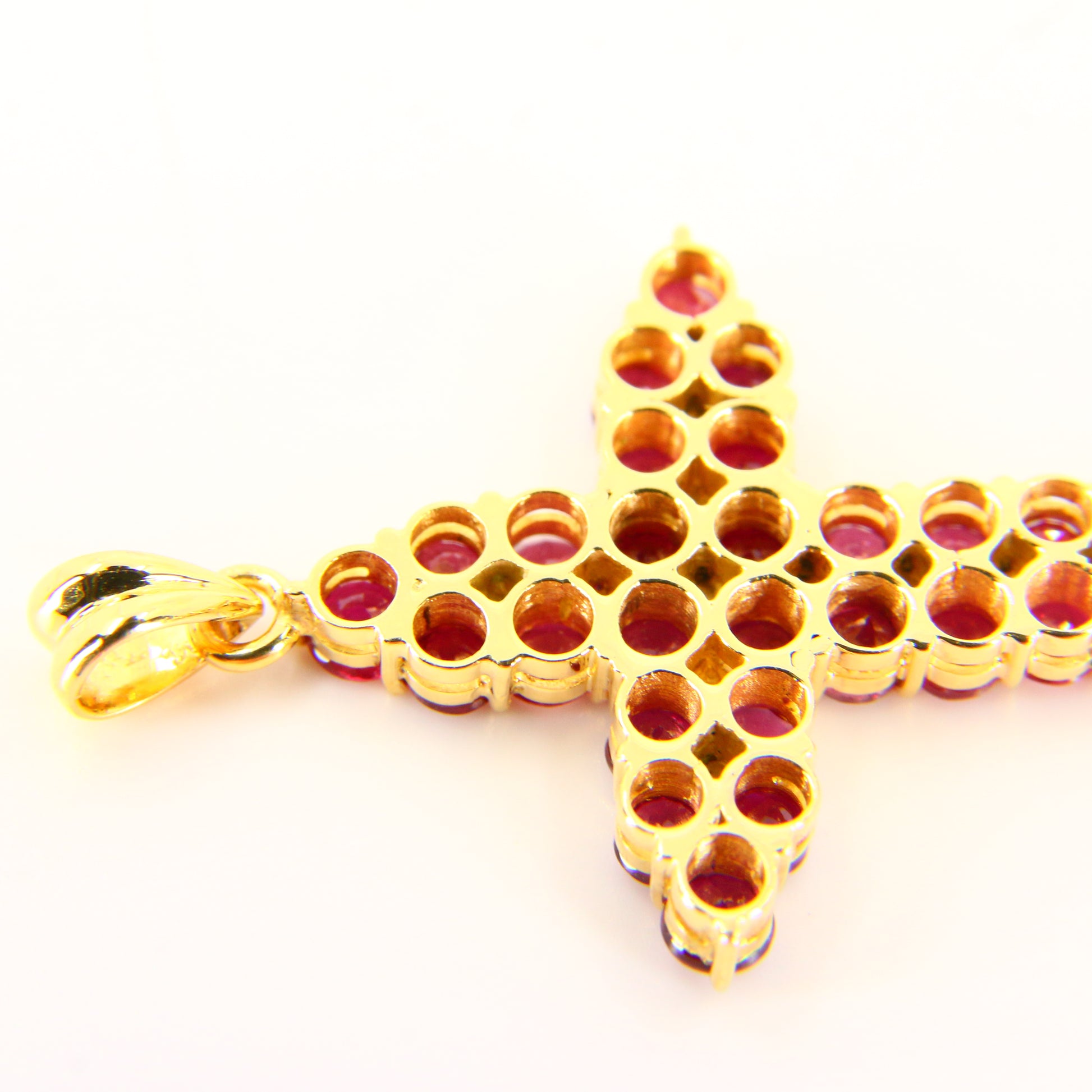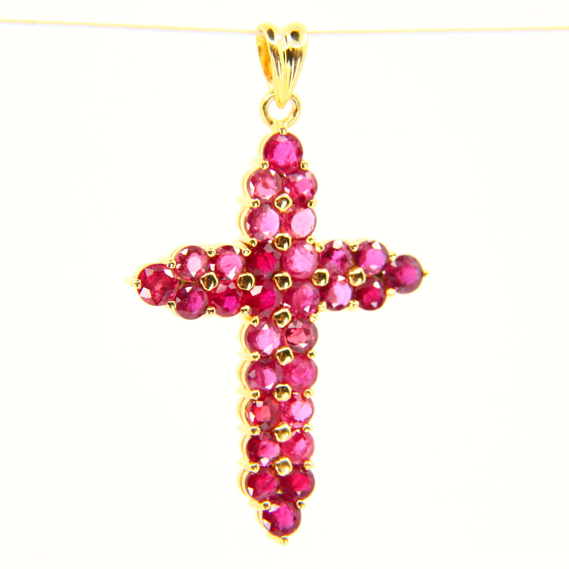 Vintage 18K Gold Cross Pendant Red Garnet Set Studded Cross Charm 18K Yellow Gold