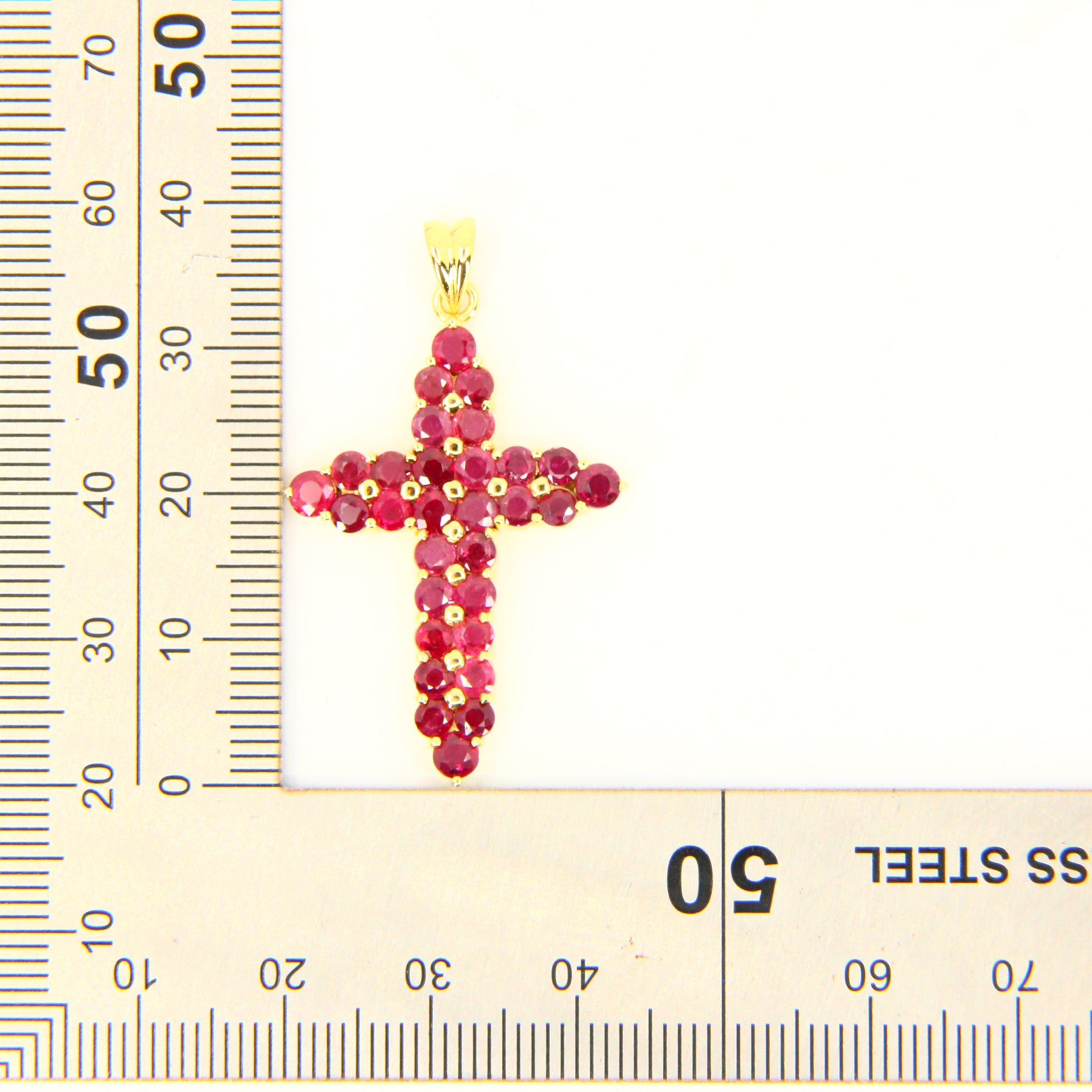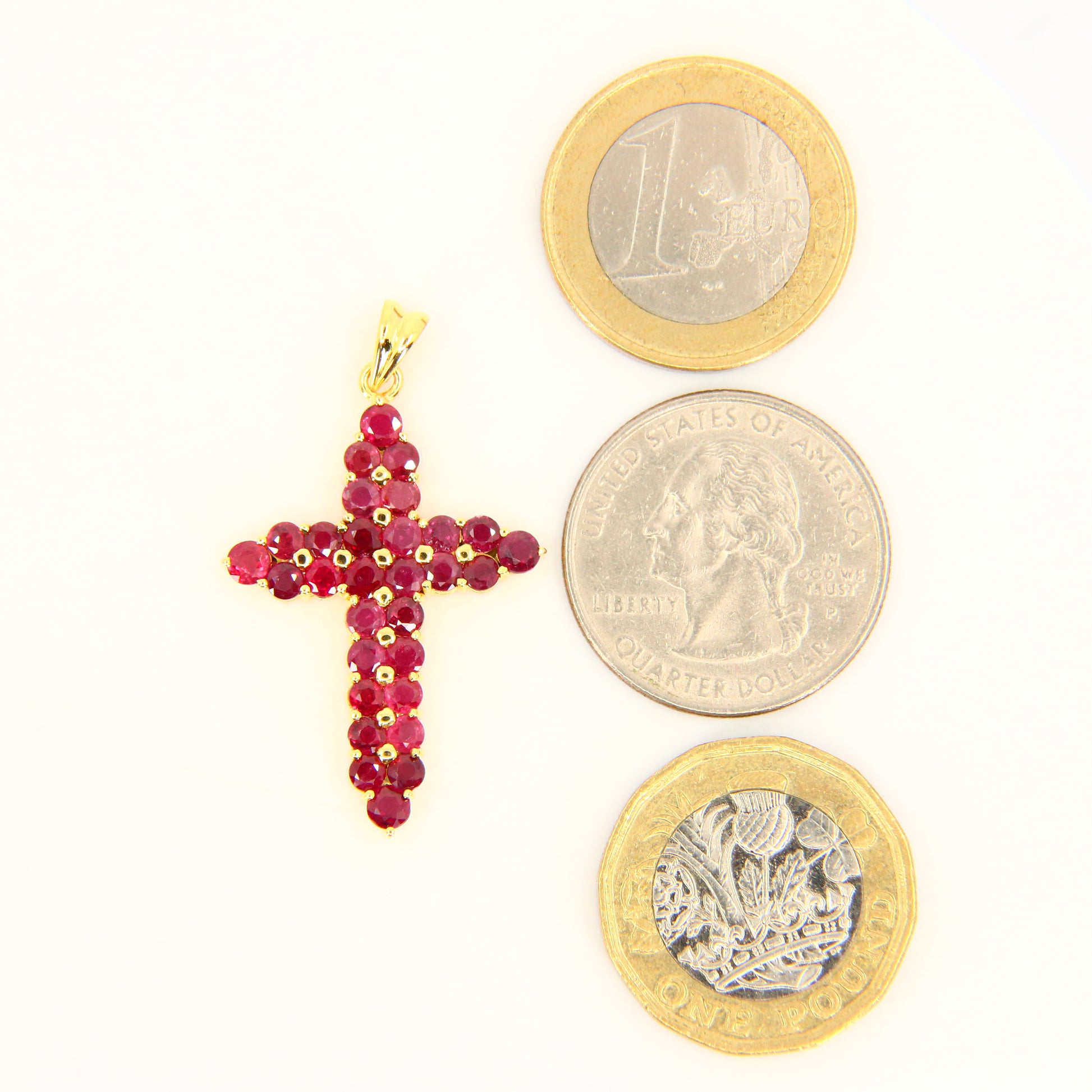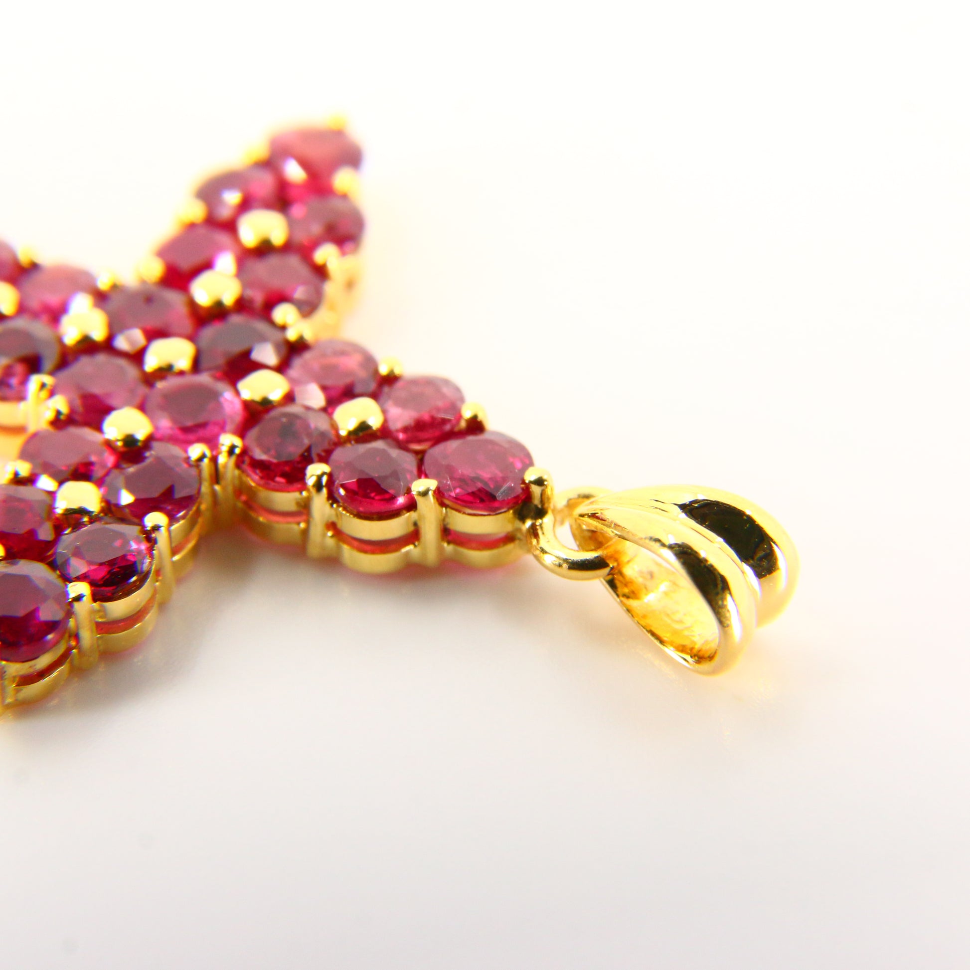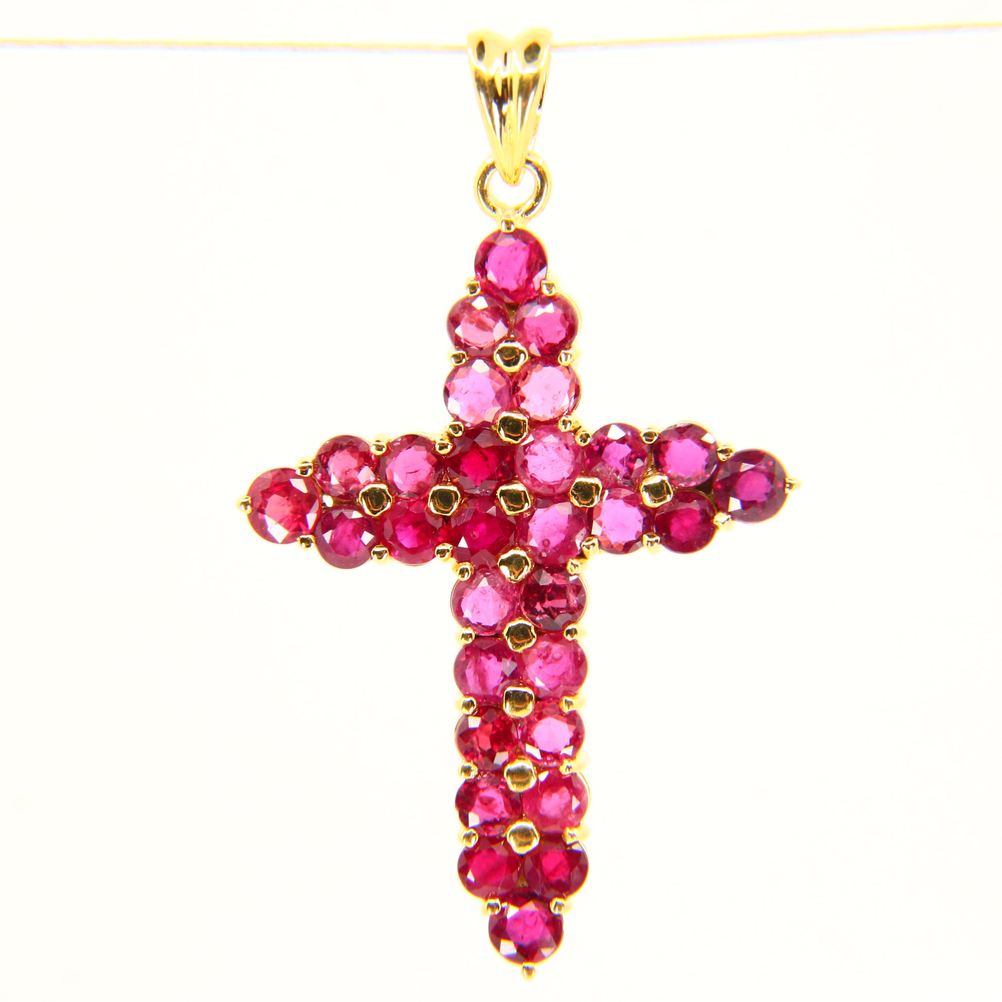 Vintage 18K Gold Cross Pendant Red Garnet Set Studded Cross Charm 18K Yellow Gold
