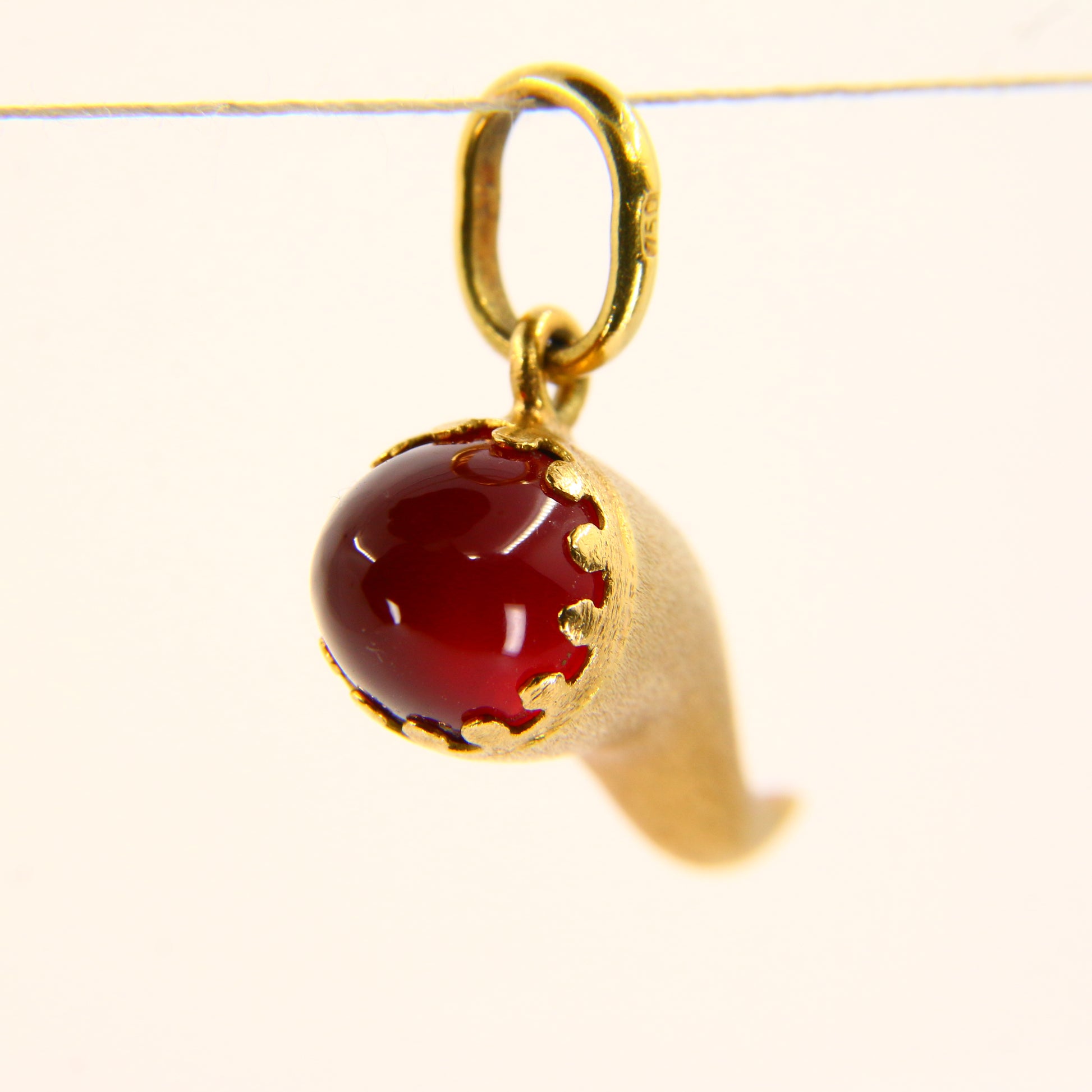 Vintage 18K Horn of Plenty Concilio Horn Charm with Red Gem – Gold Pendant
