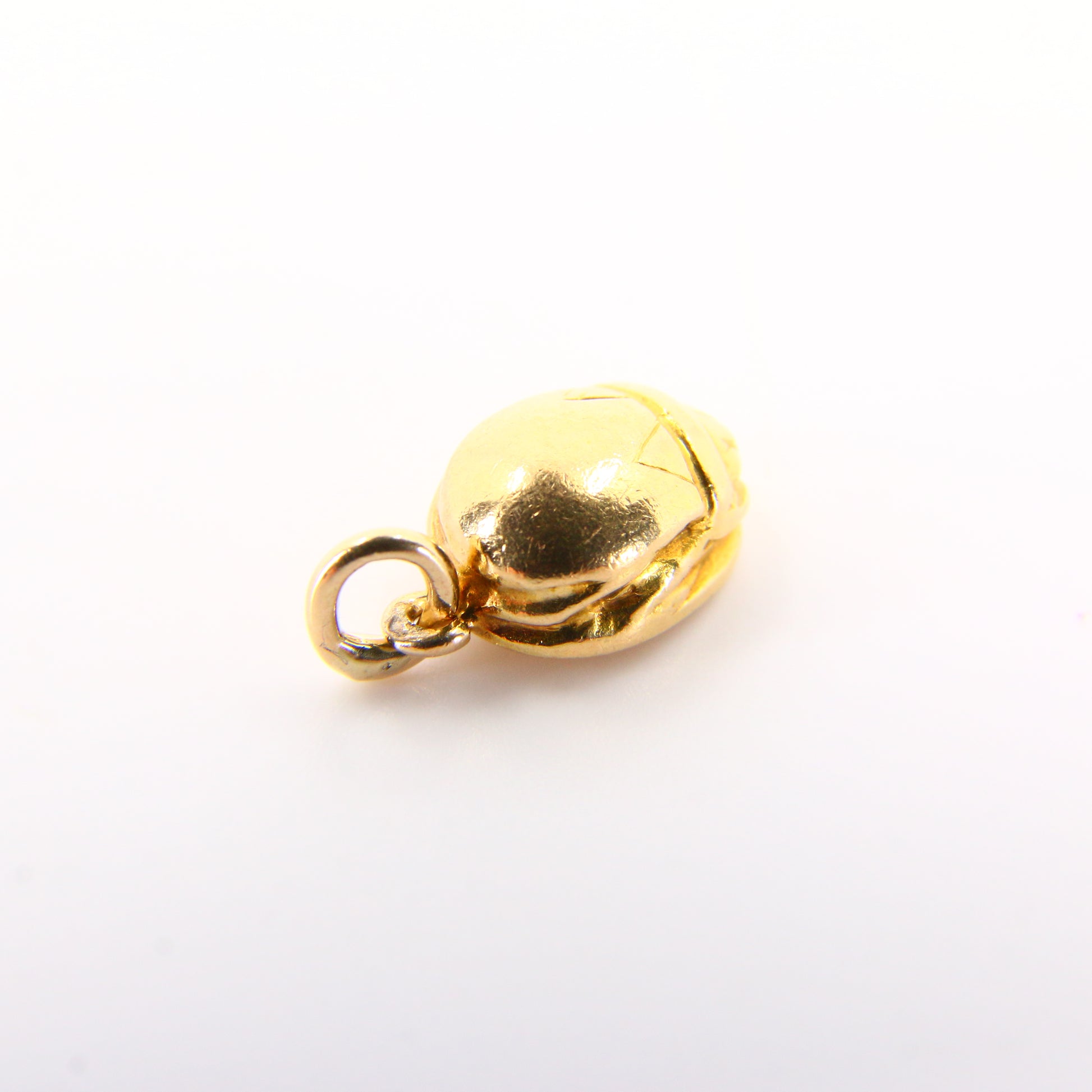 Vintage 18K Scarab Beetle Charm 18 Carat Yellow Gold Pendant Egyptian Hallmarked Gift