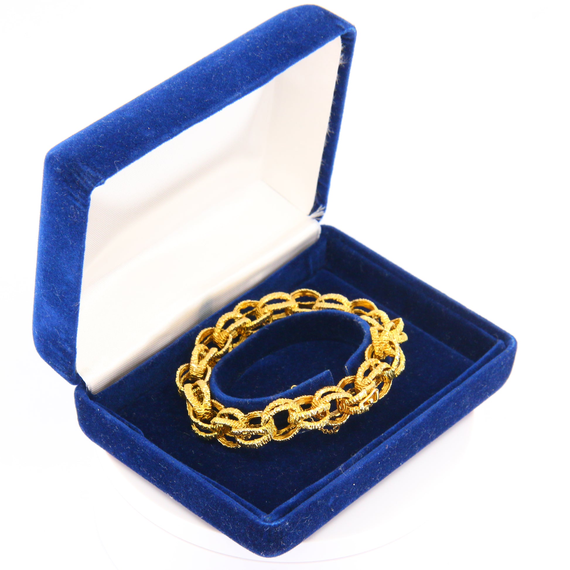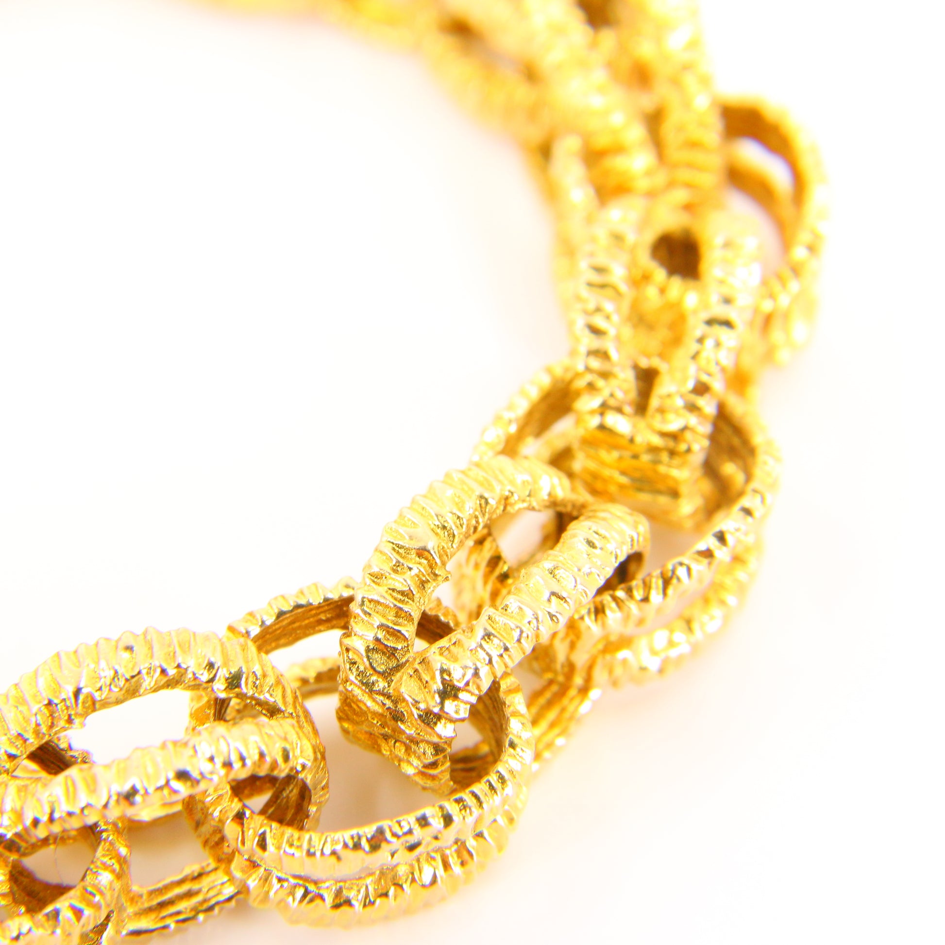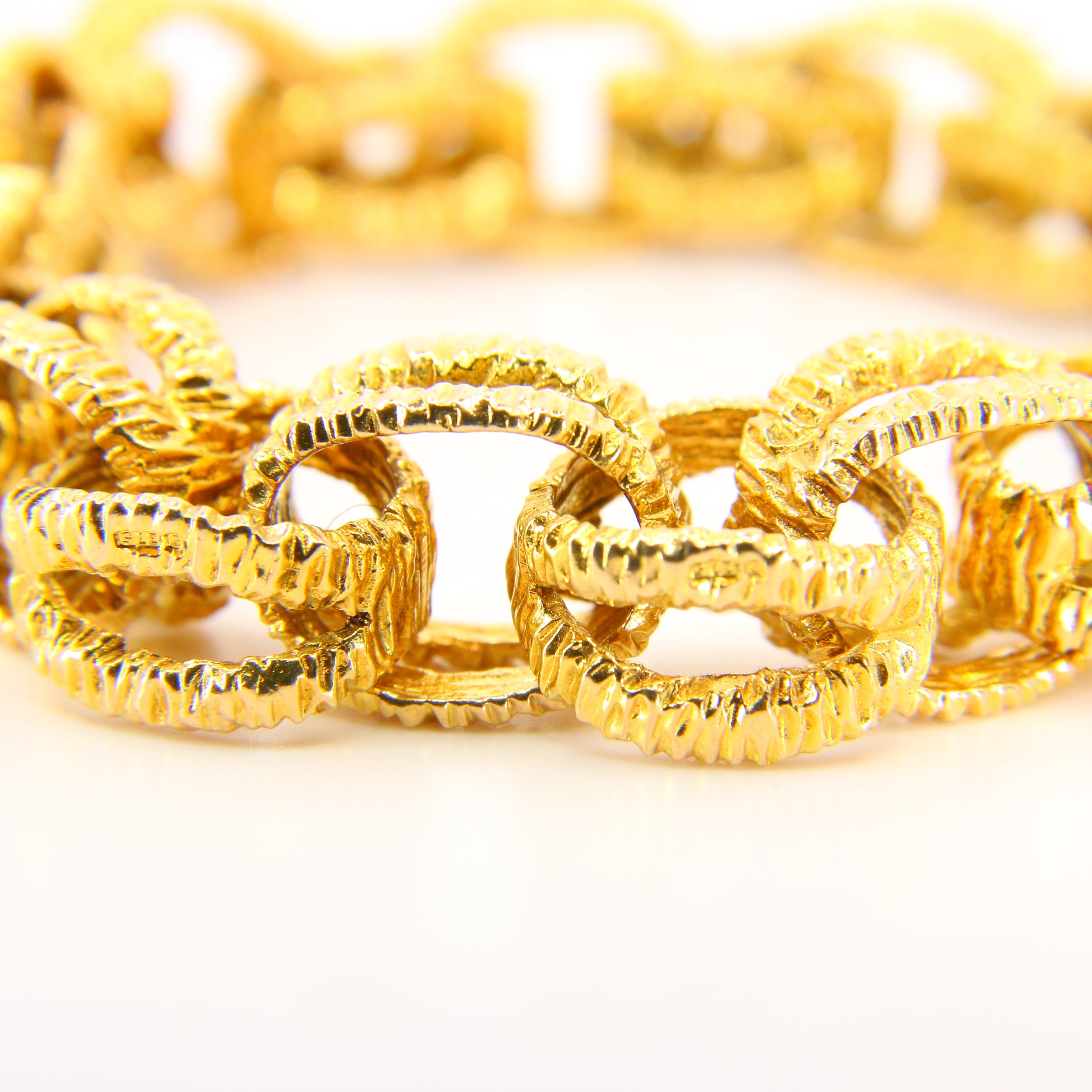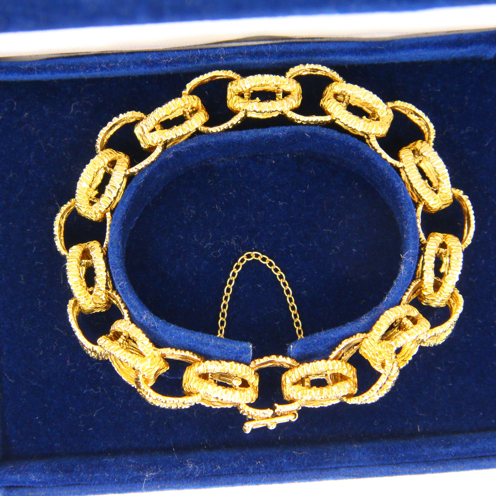 Vintage 1970s London 9ct Chain Link Bracelet Textured Yellow Gold Hallmarked Boxed