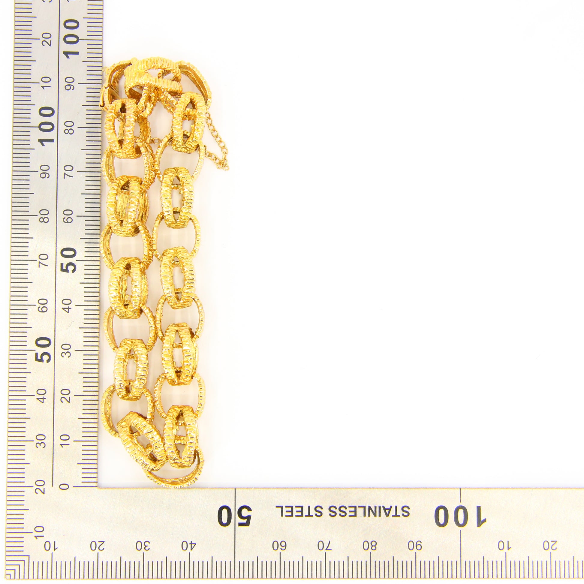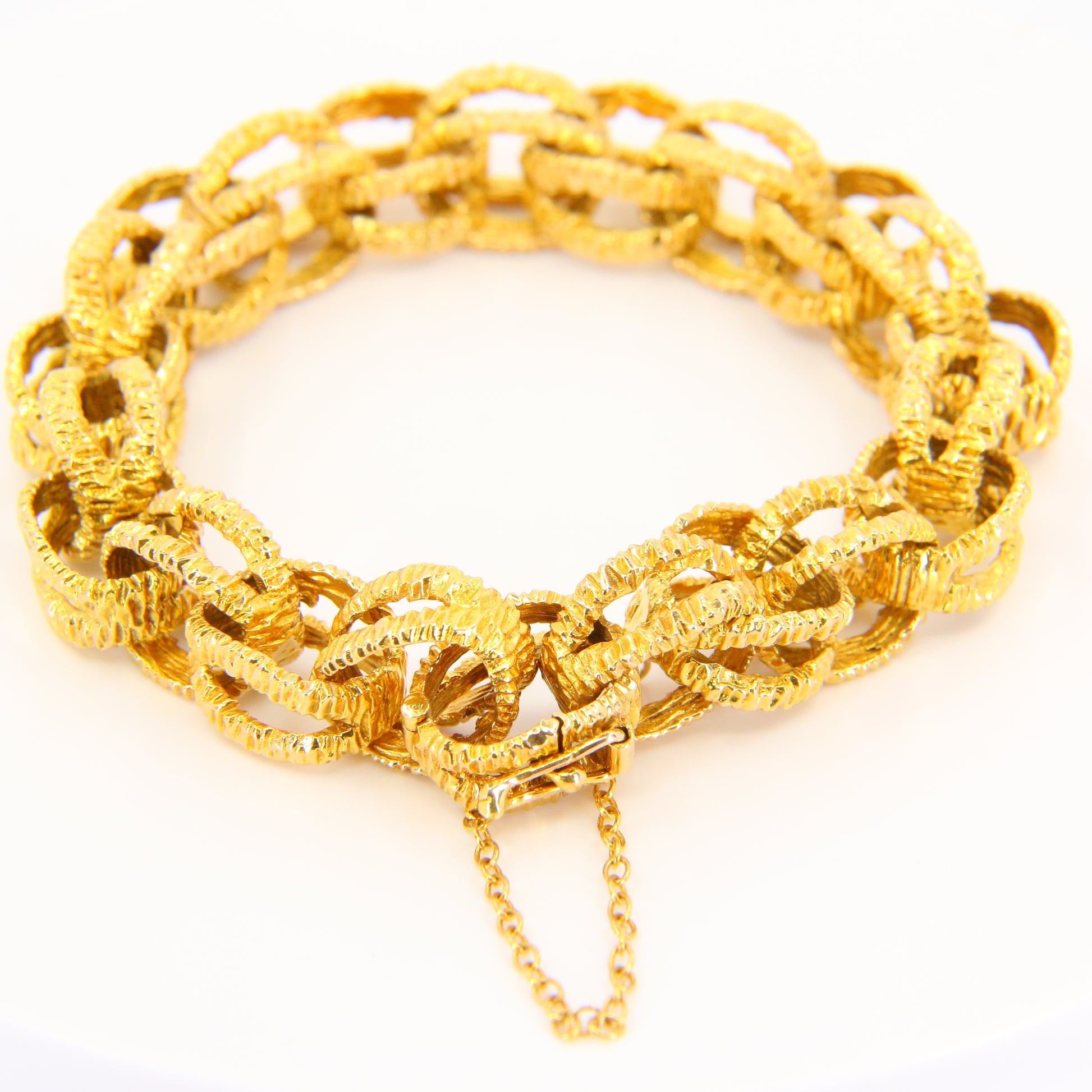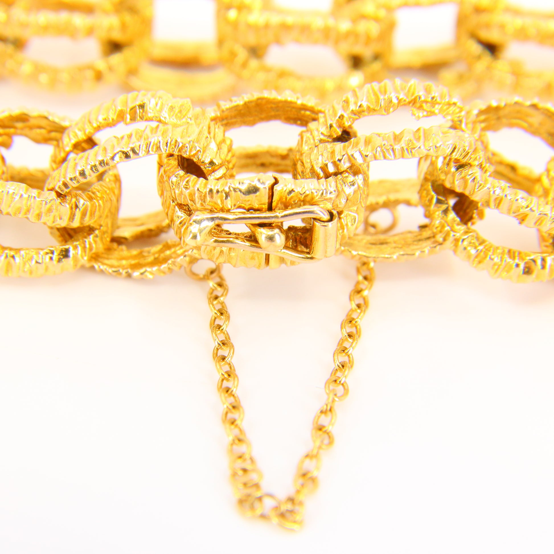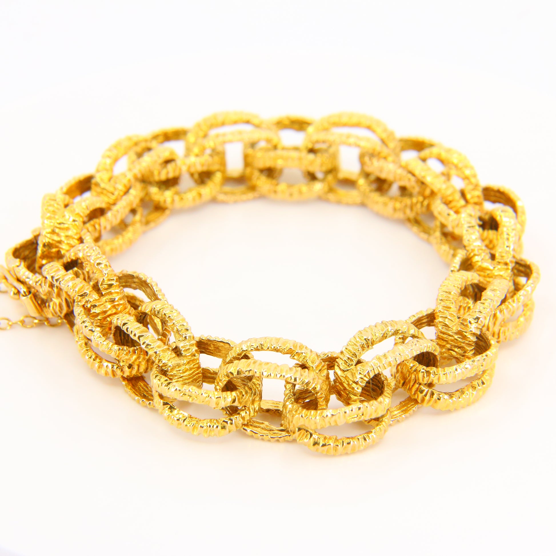 Vintage 1970s London 9ct Chain Link Bracelet Textured Yellow Gold Hallmarked Boxed
