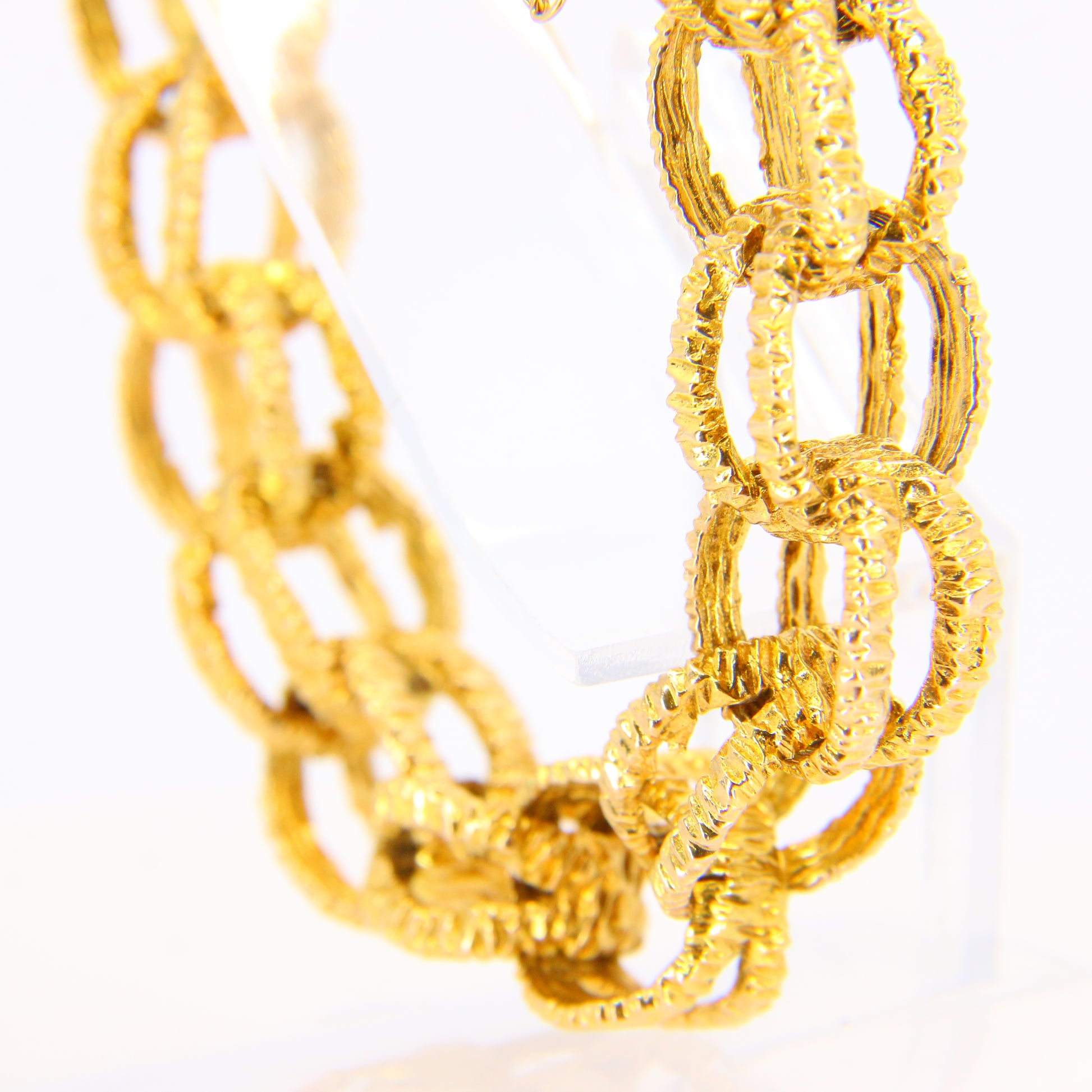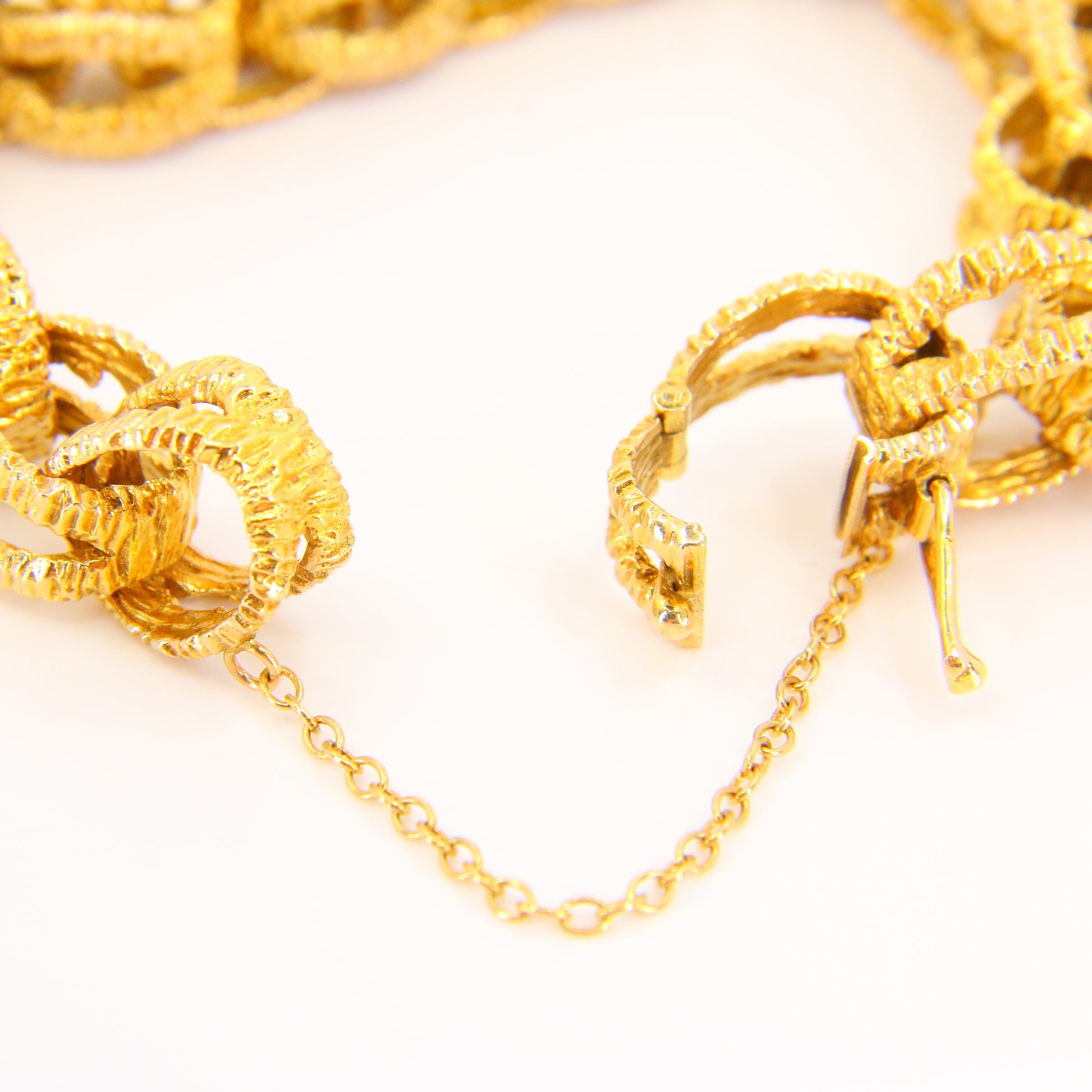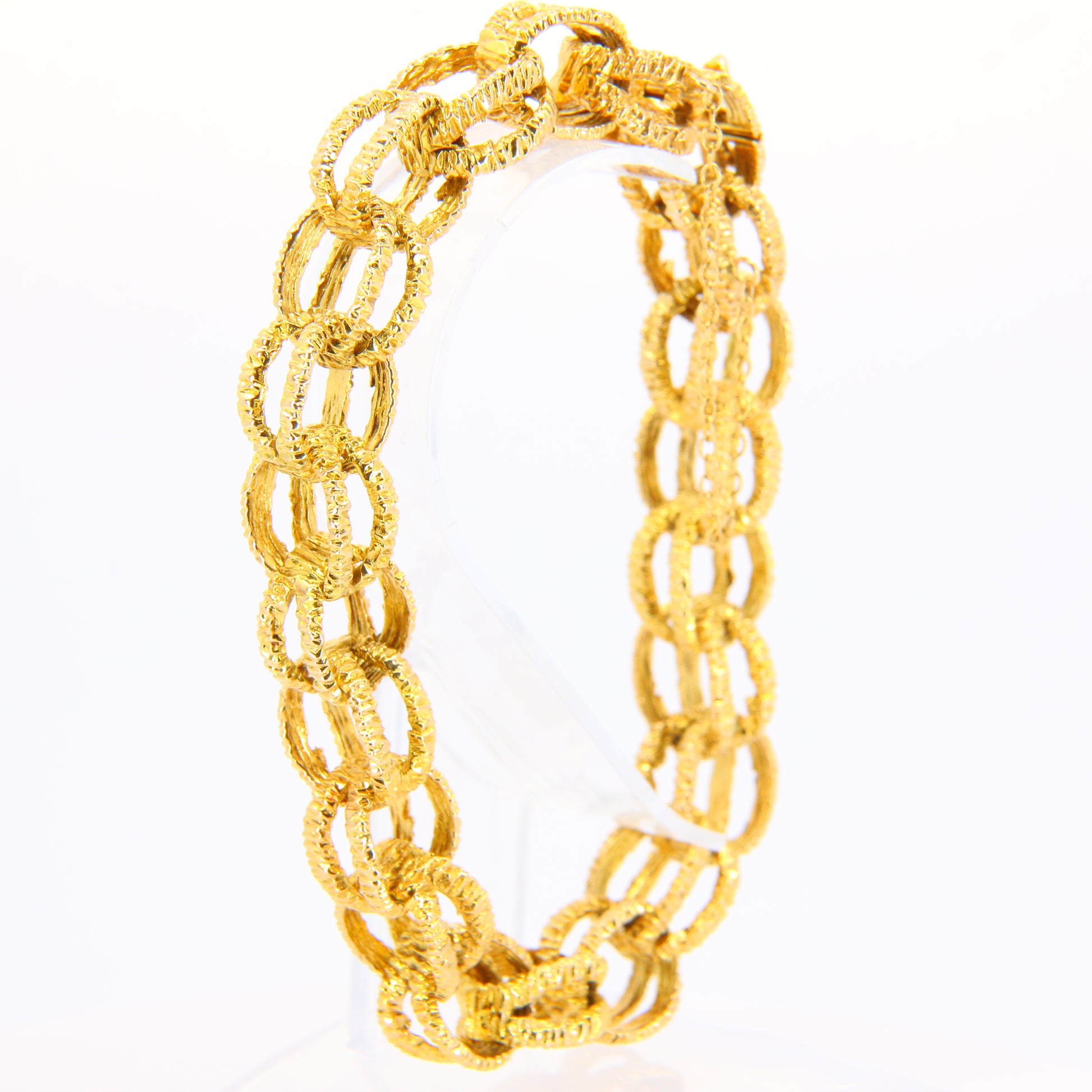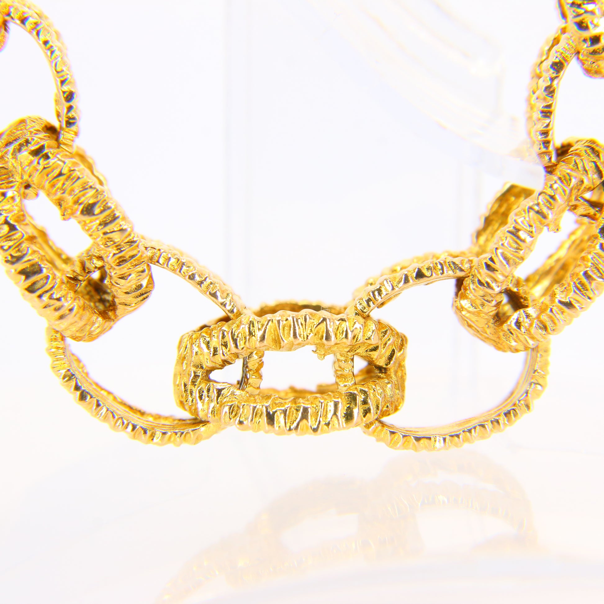 Vintage 1970s London 9ct Chain Link Bracelet Textured Yellow Gold Hallmarked Boxed