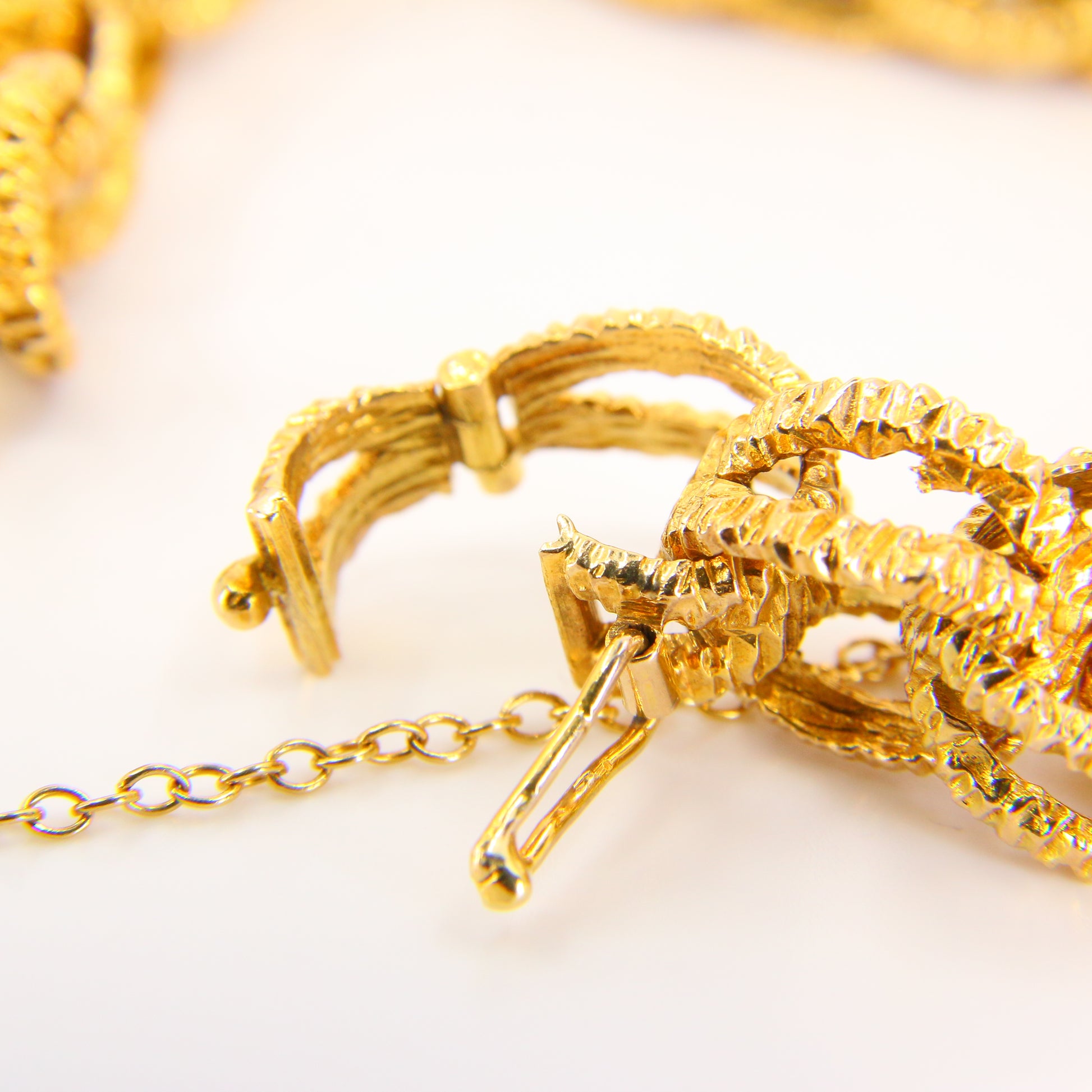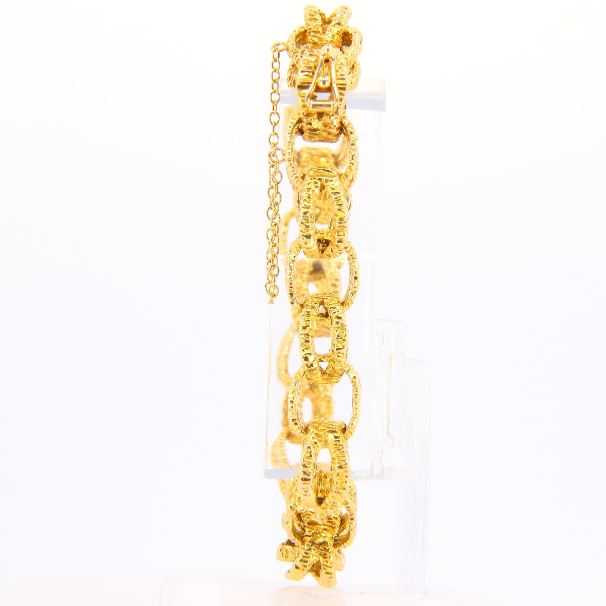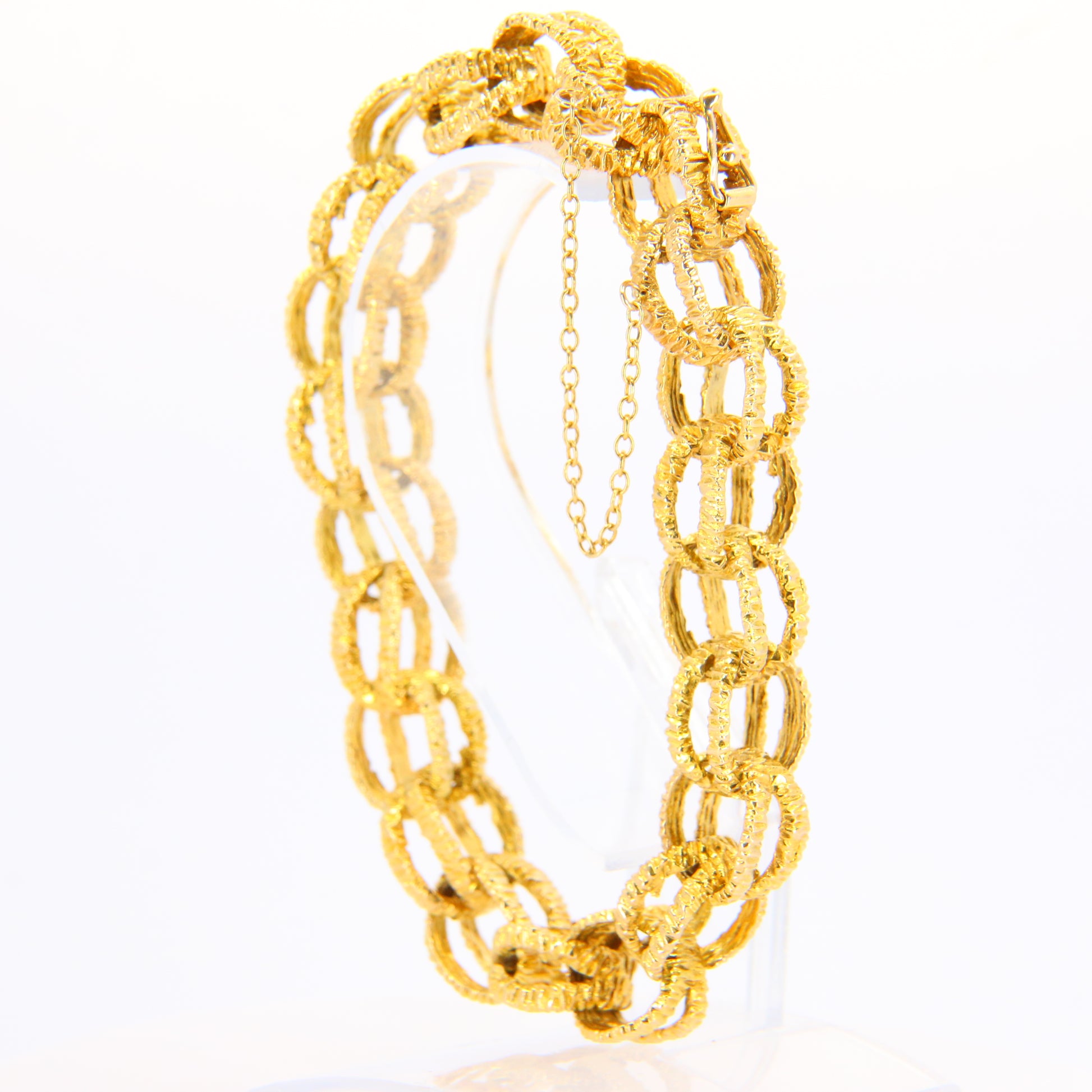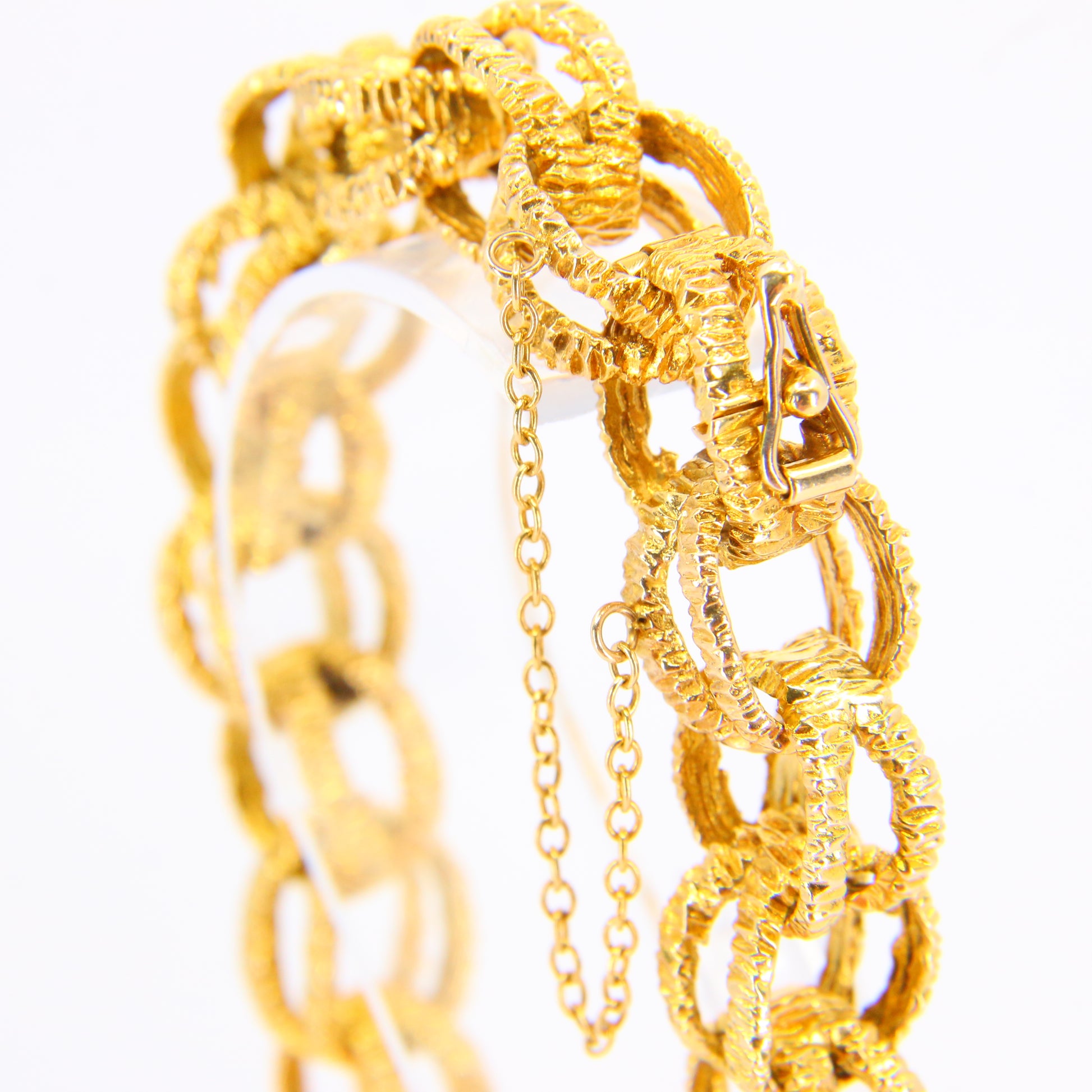 Vintage 1970s London 9ct Chain Link Bracelet Textured Yellow Gold Hallmarked Boxed