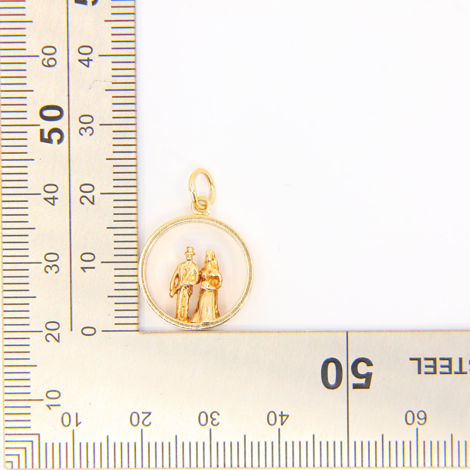Vintage 9ct Bridegroom and Bride Wedding Charm Pendant 9 Carat Gold Hallmarked