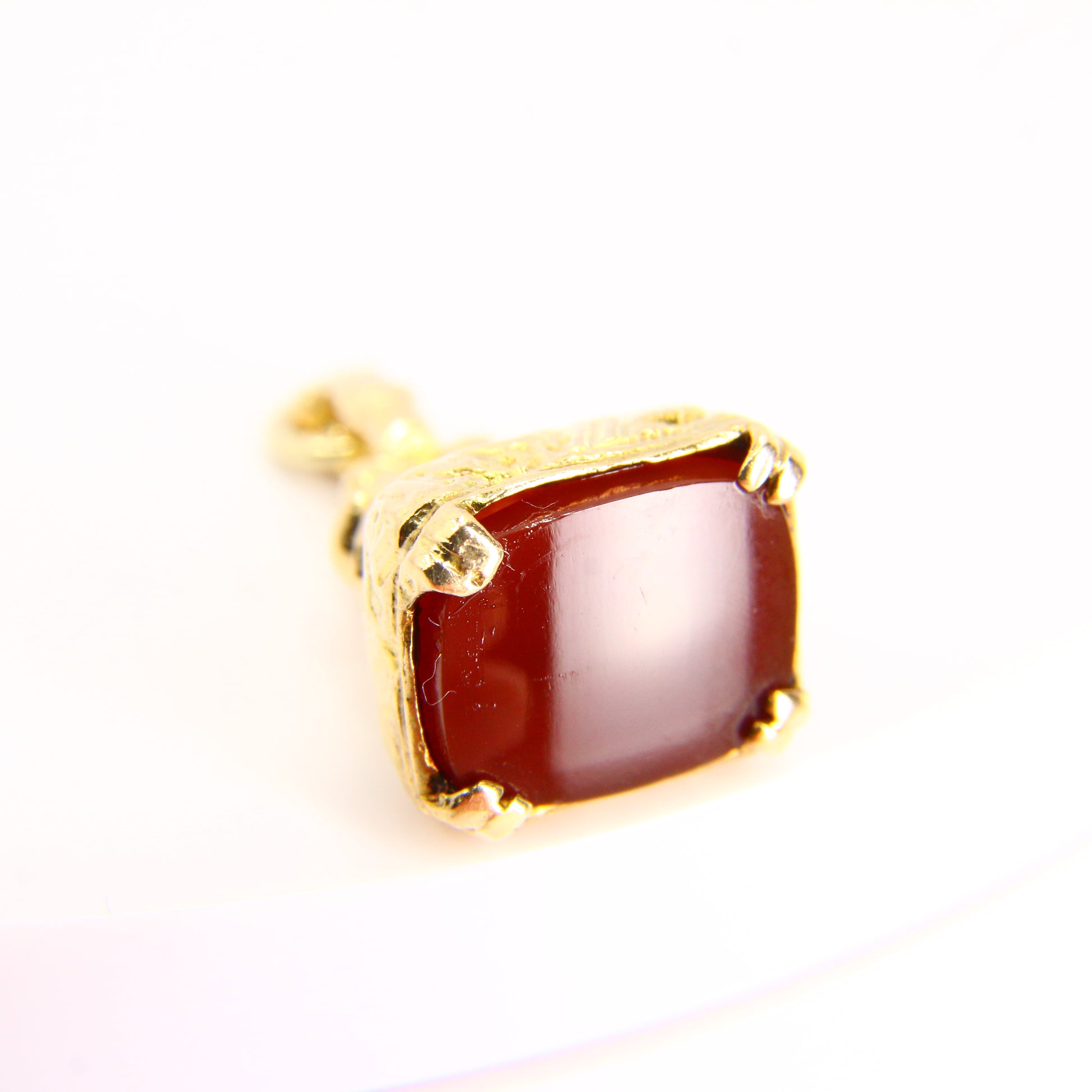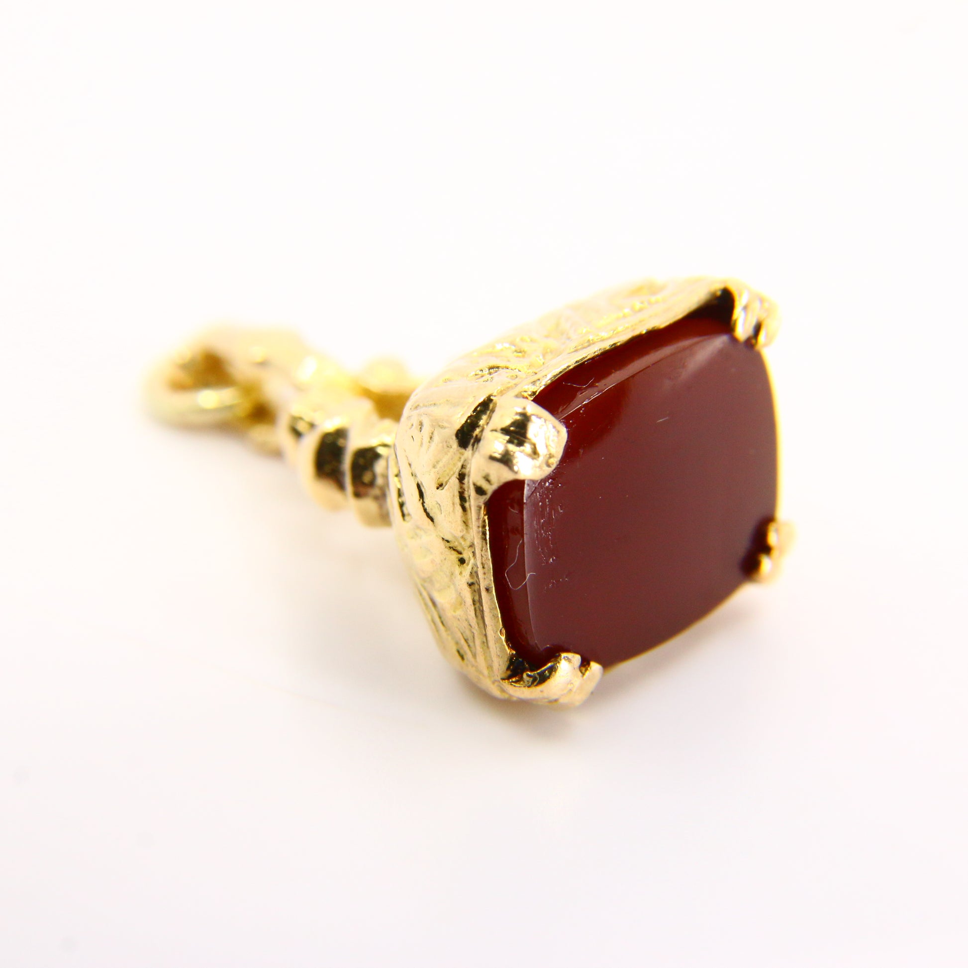 Vintage 9ct Carnelian Drop Fob Charm 9 Carat Yellow Gold Hallmarked Pendant