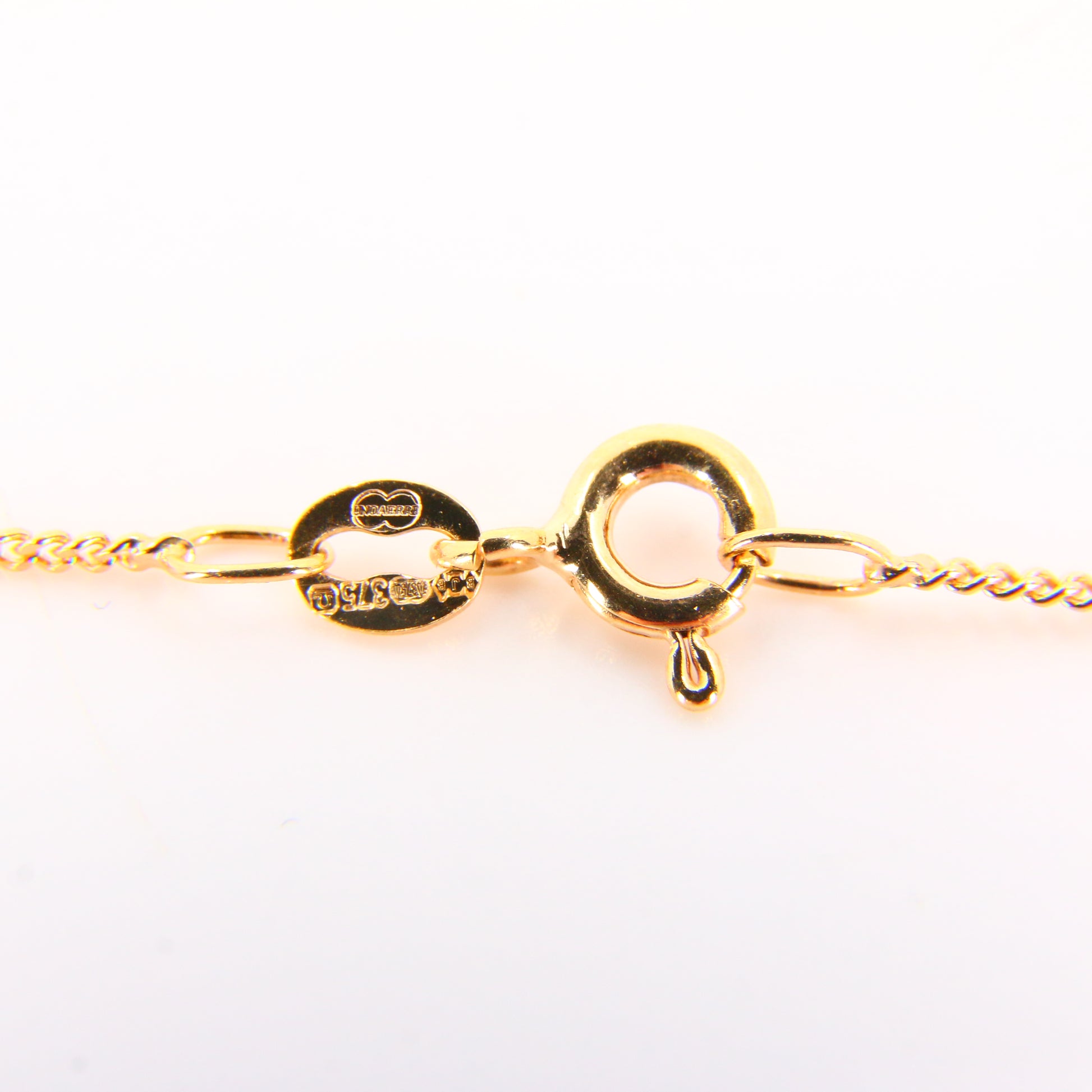 Hallmark: British Import Hallmarks for 9 Carat Gold "9 375" with makers marks on chain, charm is unmarked,