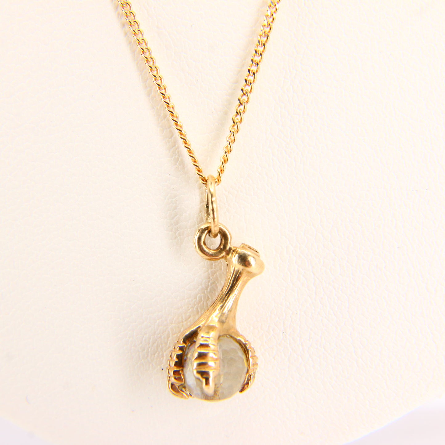 Vintage 9ct 20 inch Claw Charm Pendant Necklace 9 Carat Yellow Gold Hallmarked Chain Boxed