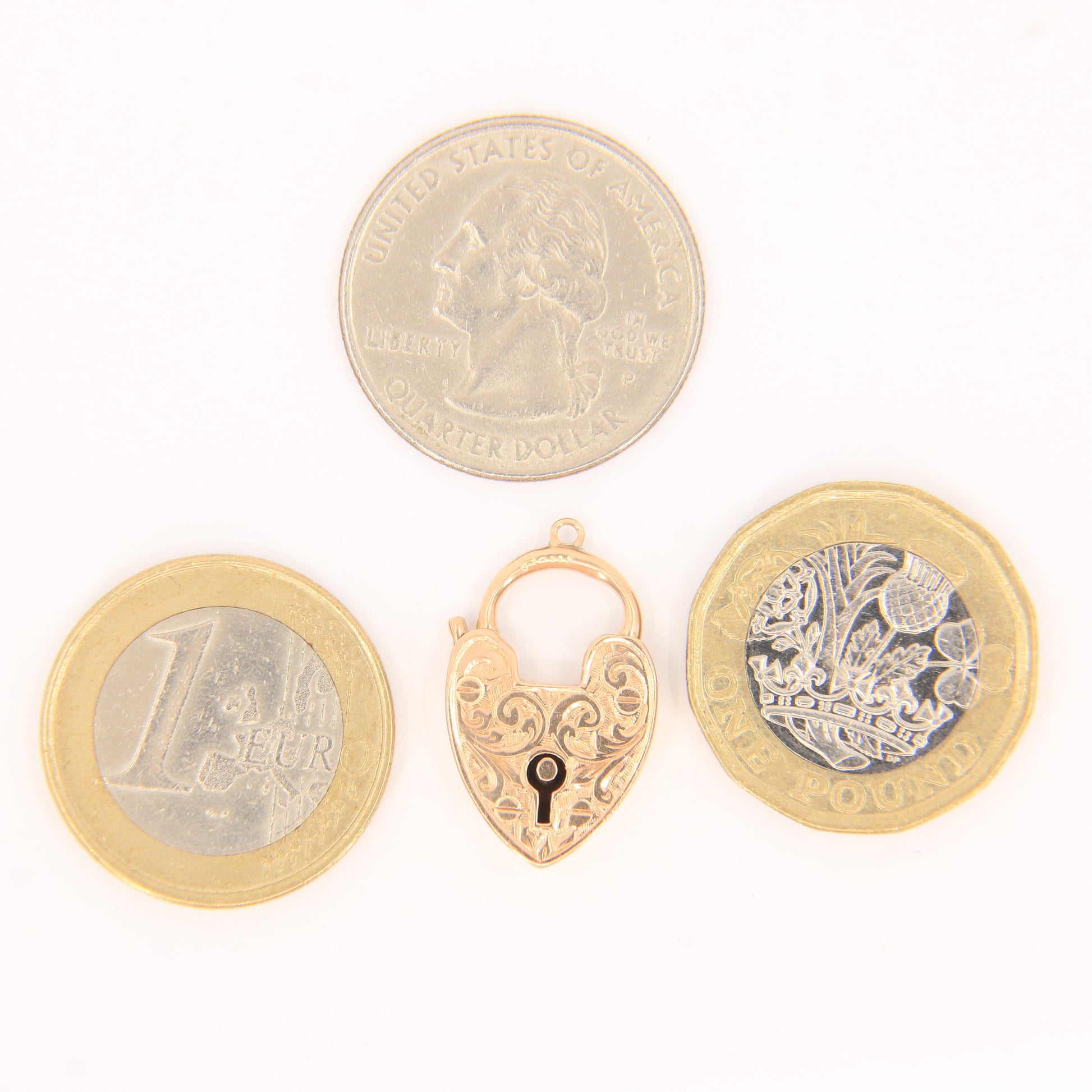 Vintage 9ct Engraved Heart Lock Gold Charm Padlock Closer Pendant Hallmarked Gift