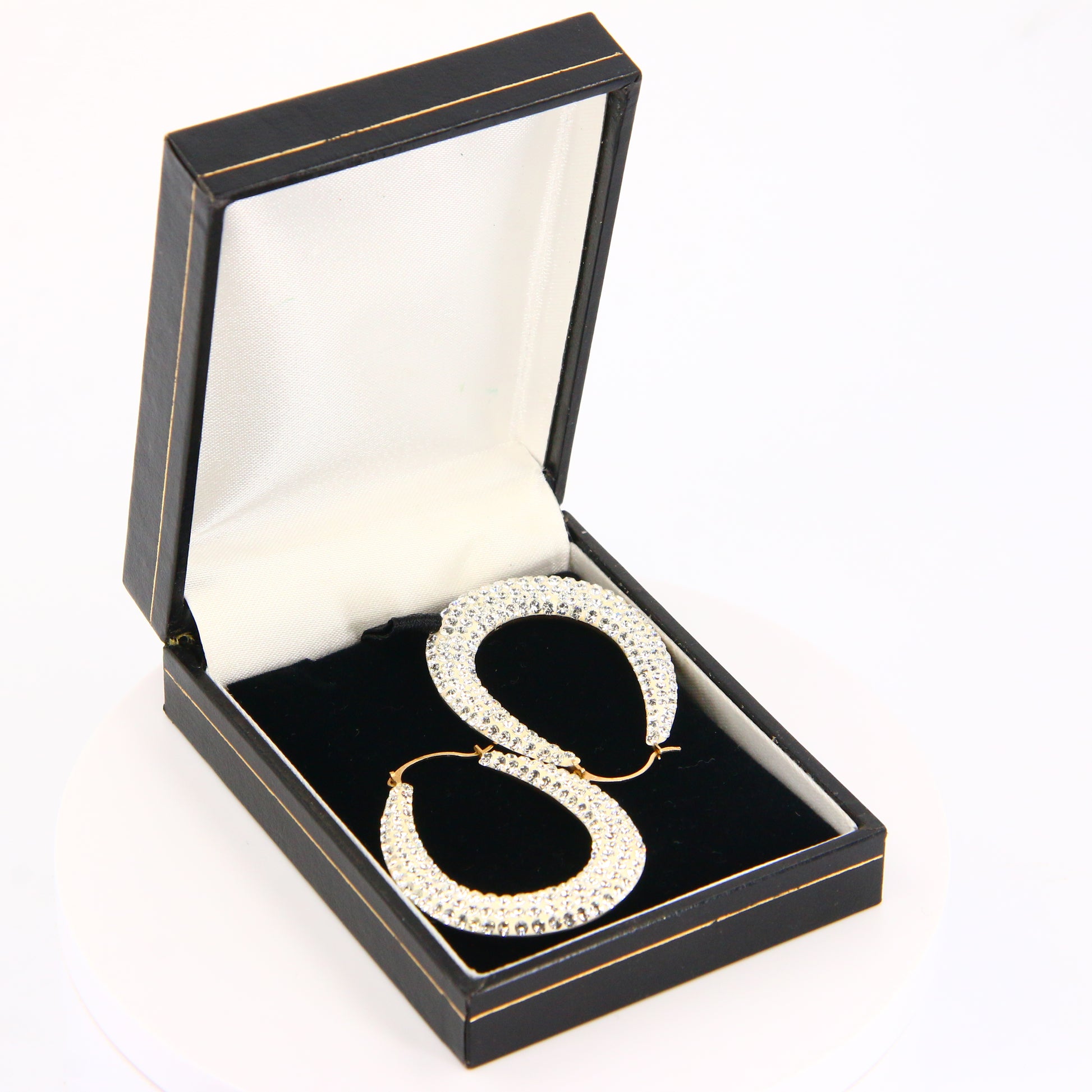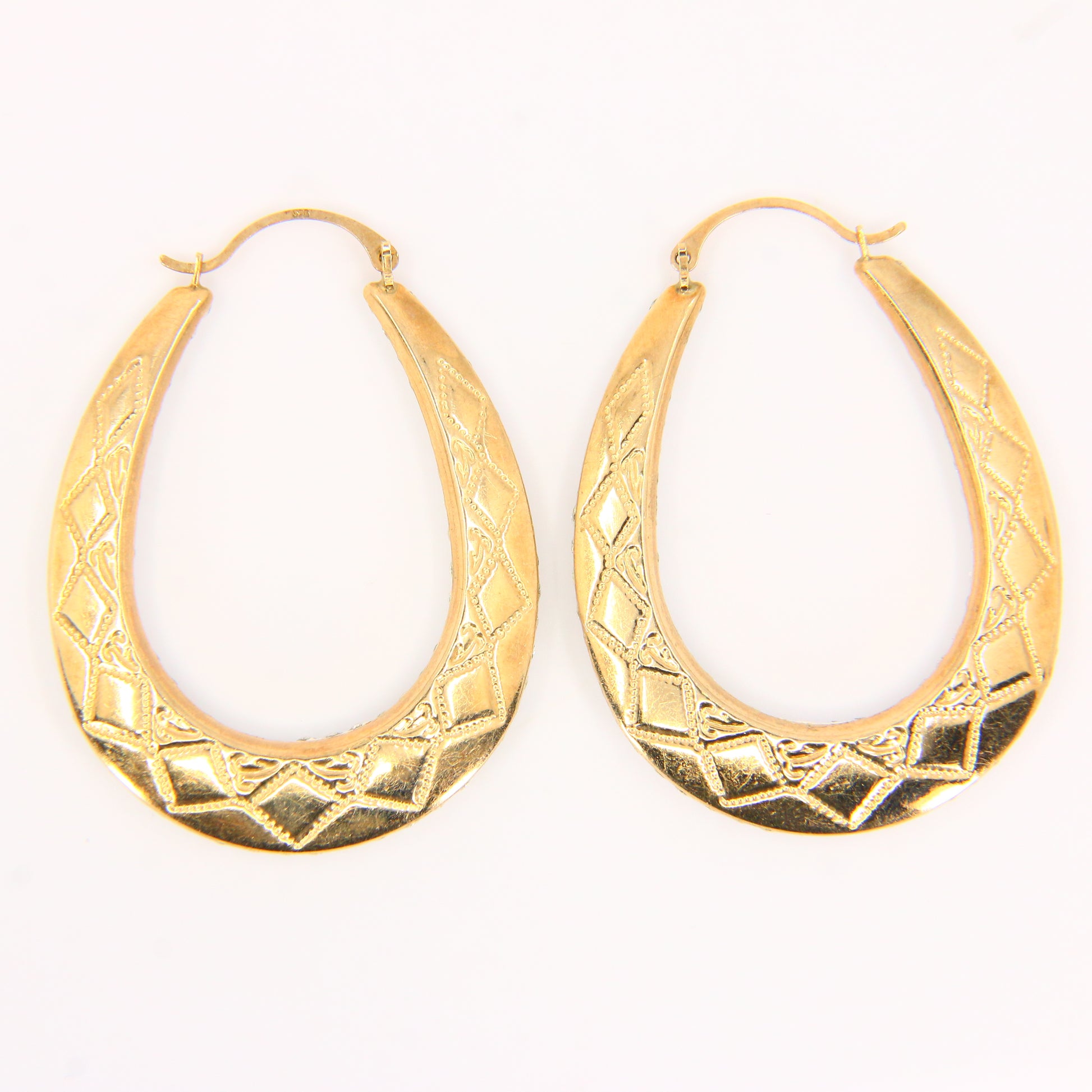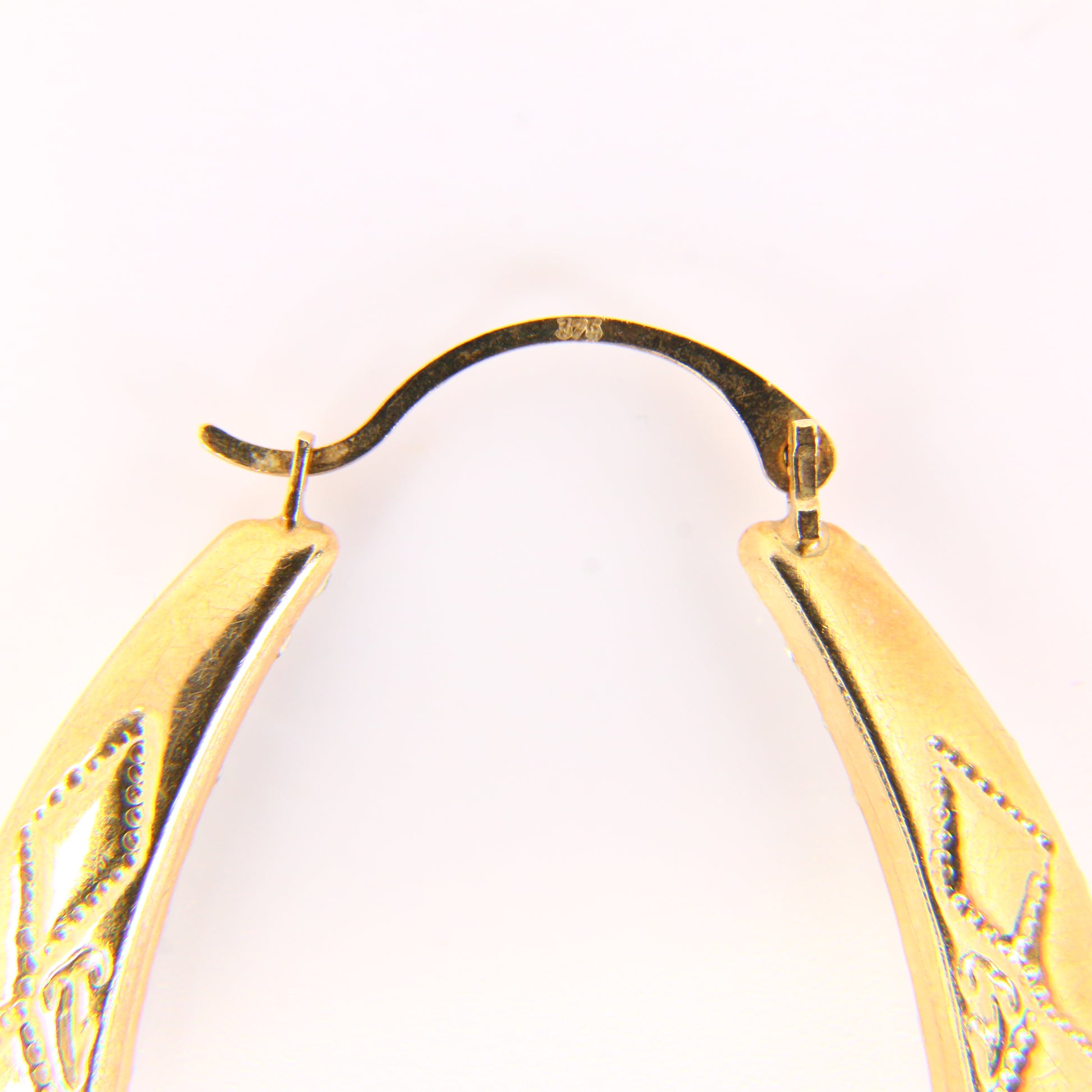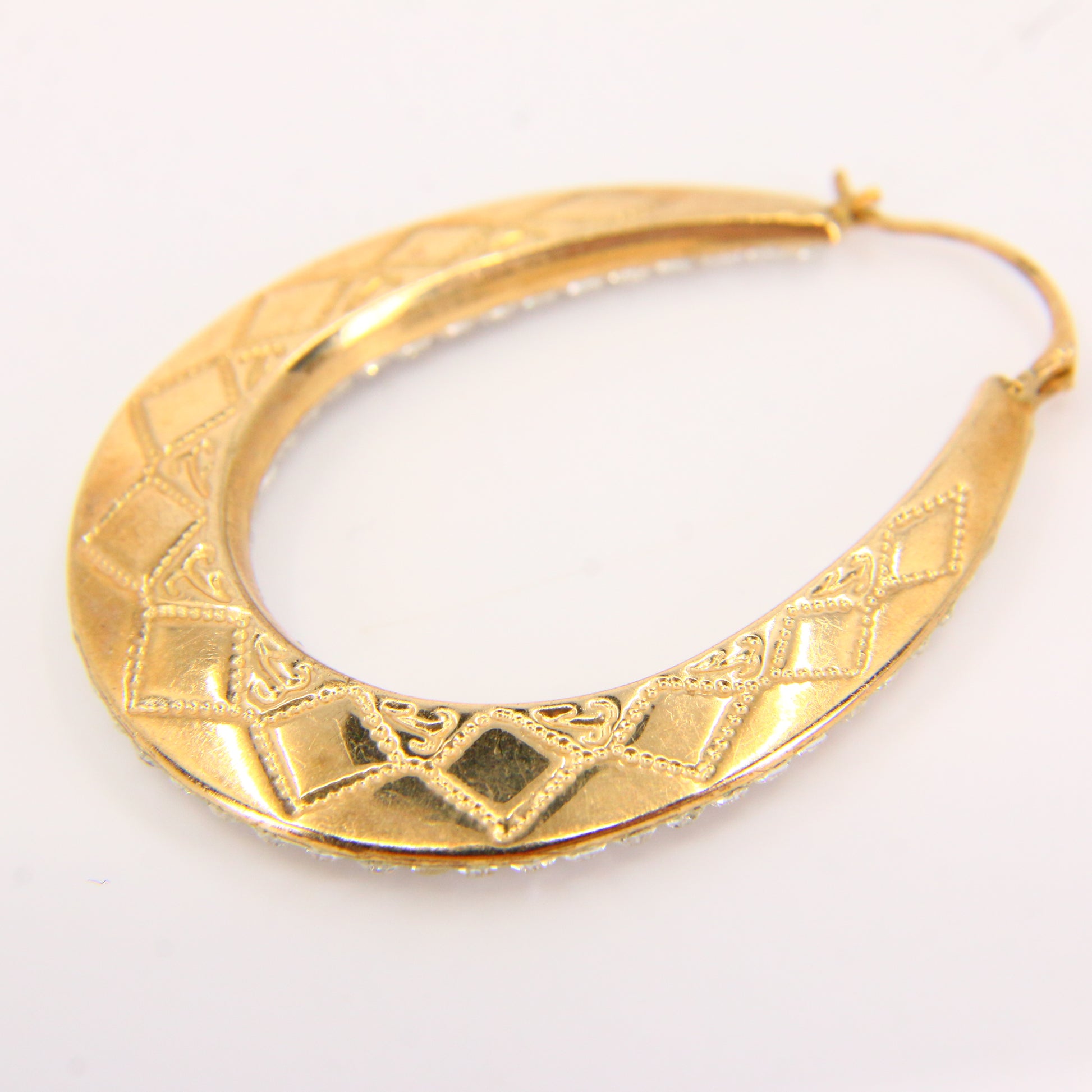 Vintage 9ct Gem Studded Creole Hoop Earrings 9 Carat Yellow Gold Boxed
