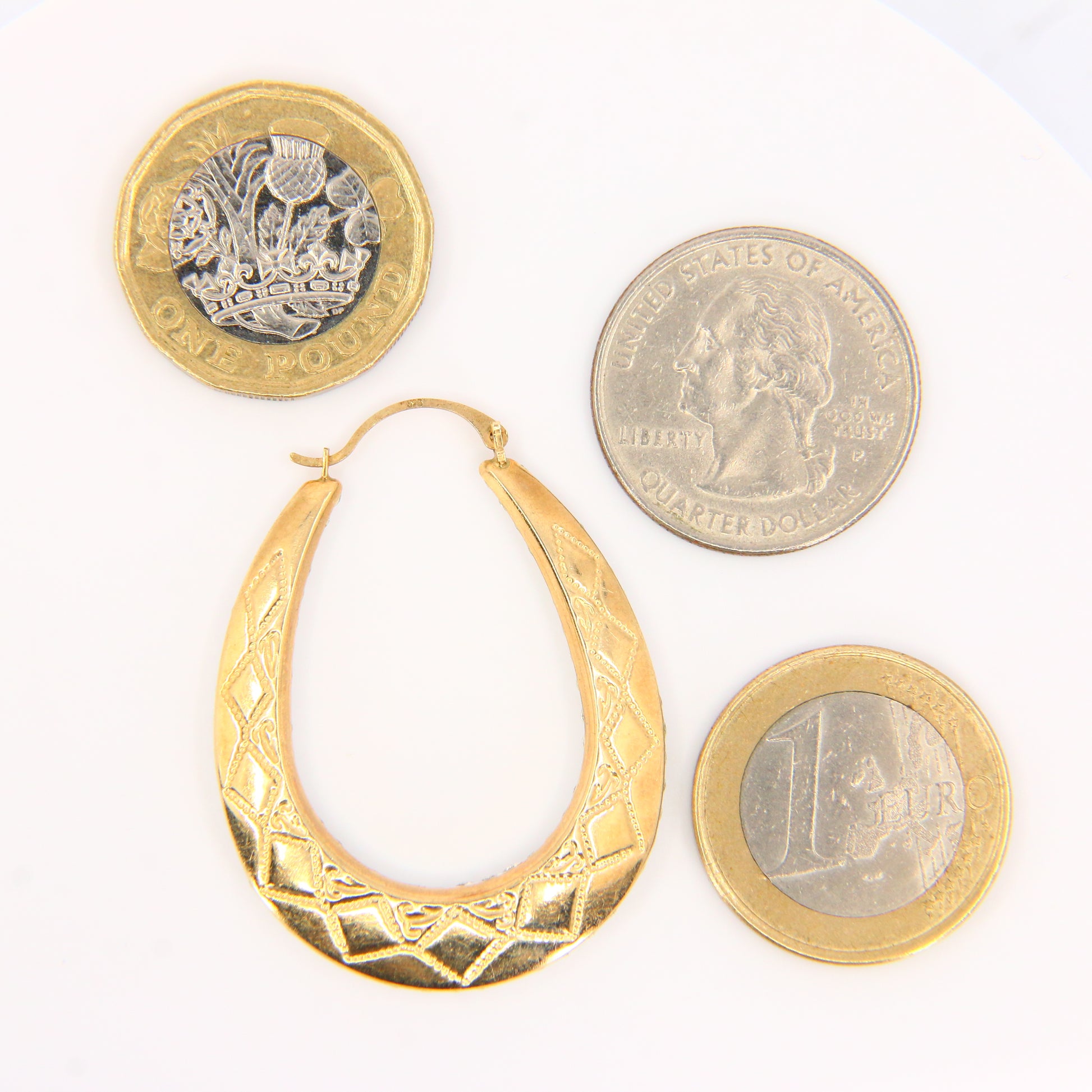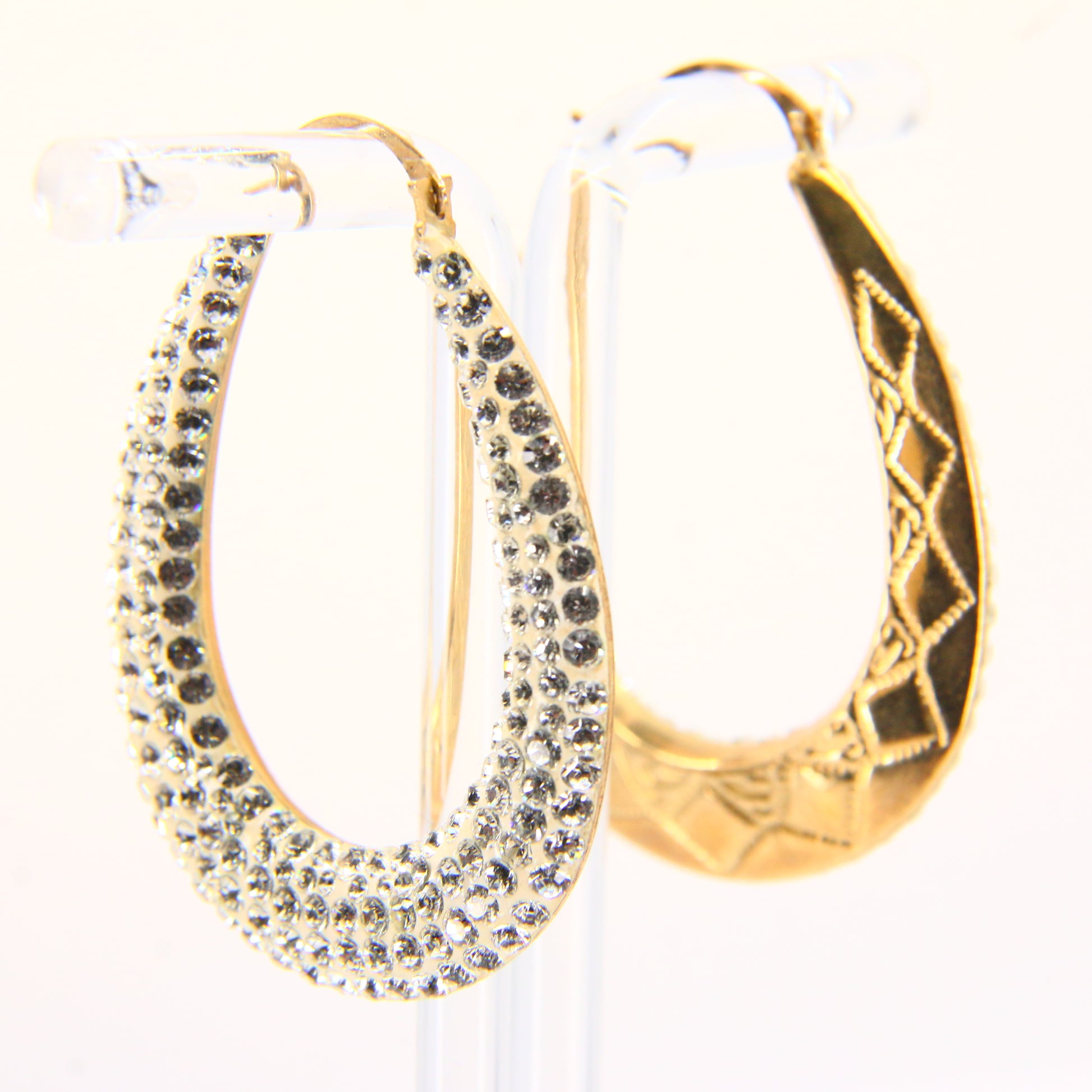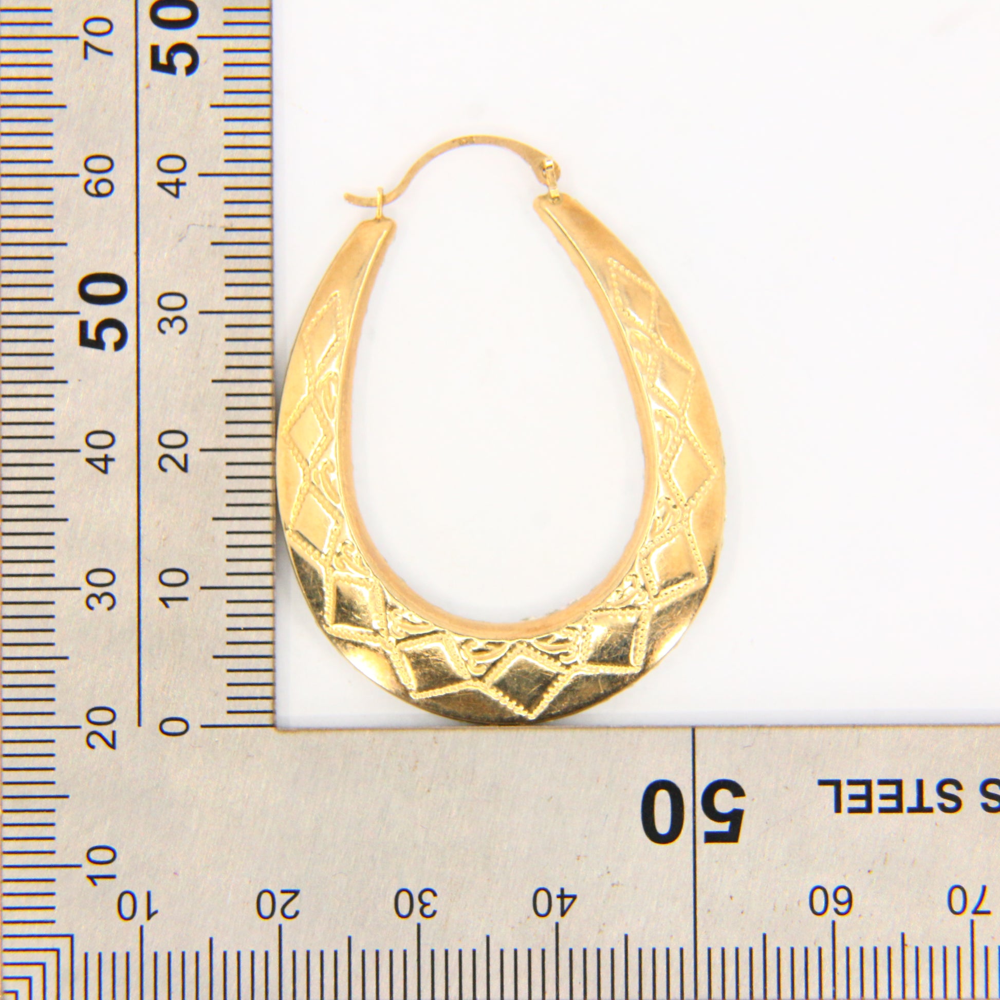 Vintage 9ct Gem Studded Creole Hoop Earrings 9 Carat Yellow Gold Boxed
