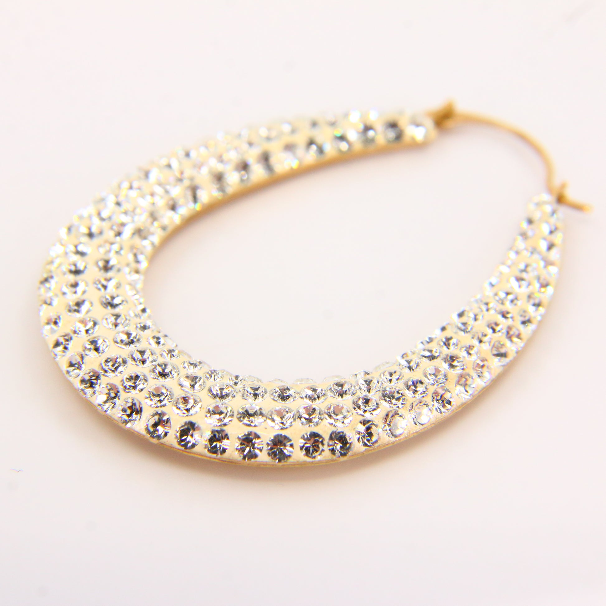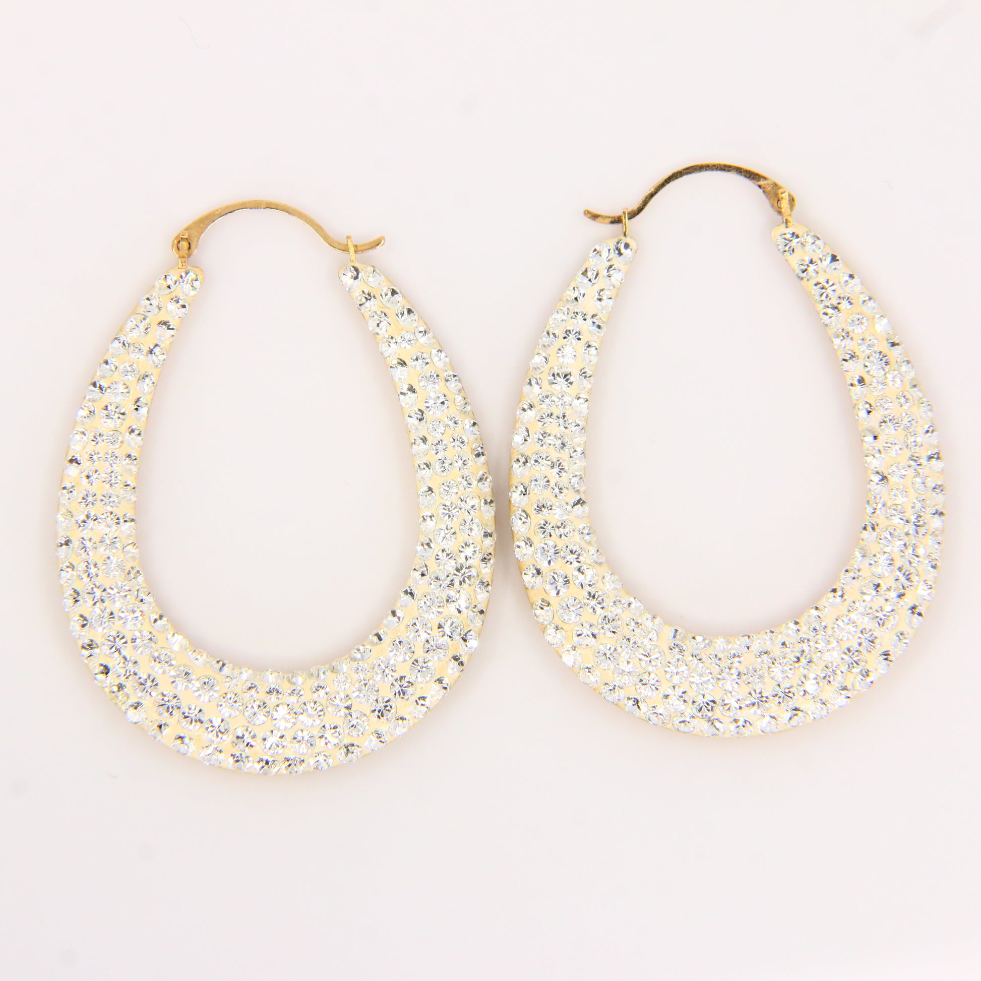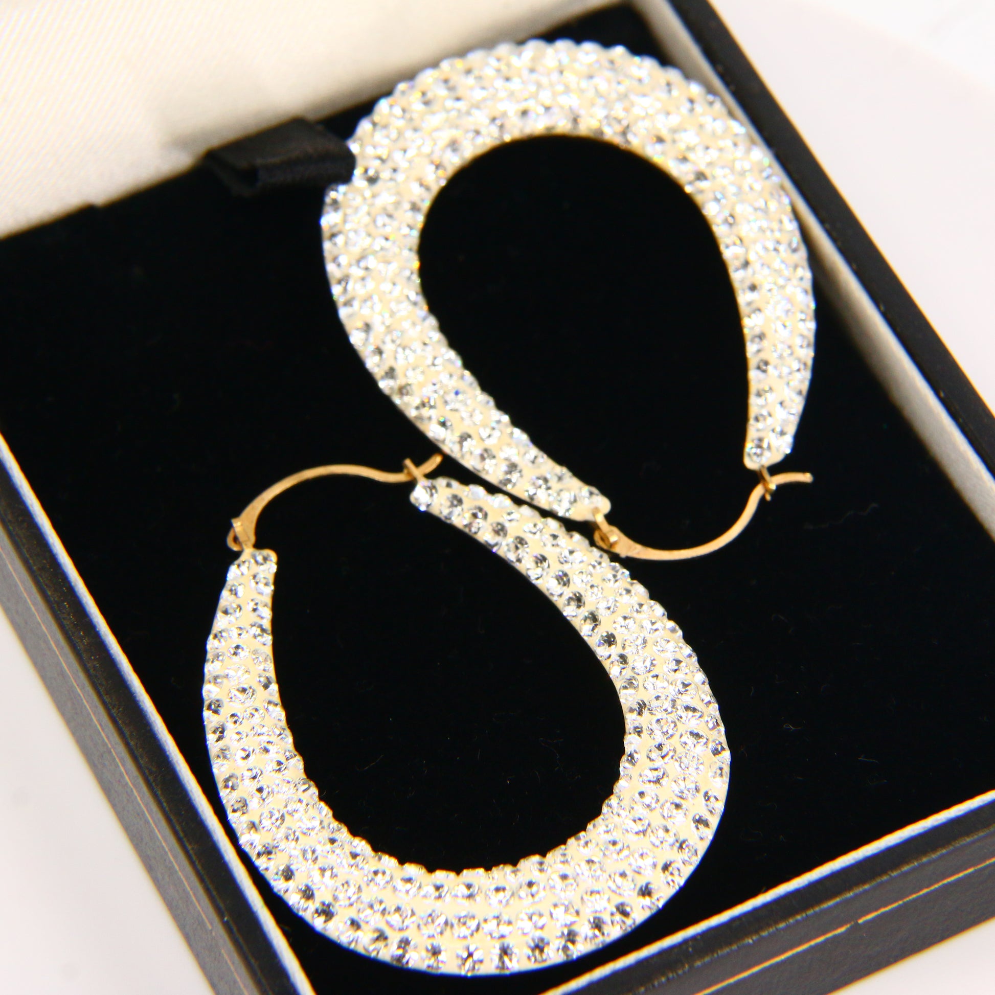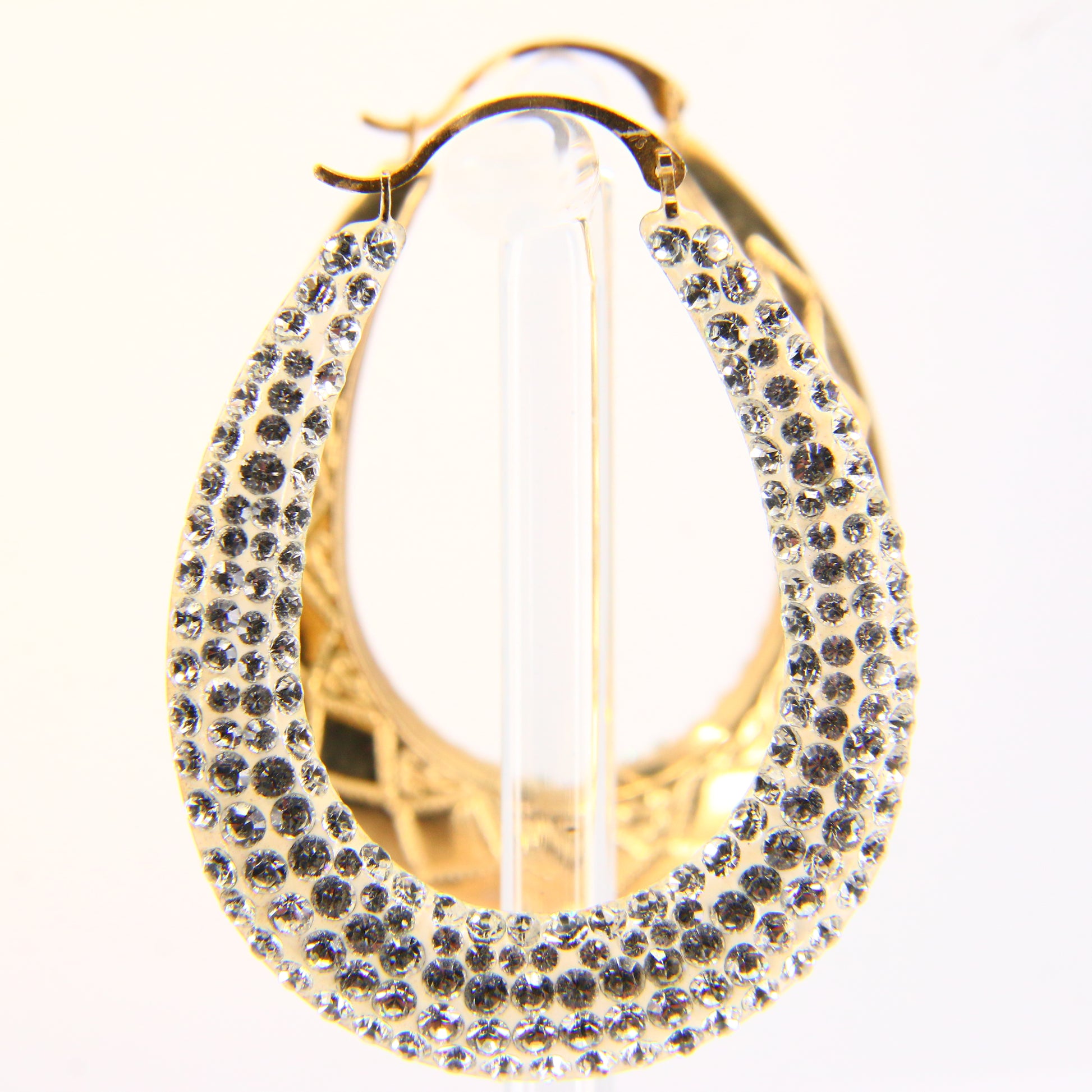 Vintage 9ct Gem Studded Creole Hoop Earrings 9 Carat Yellow Gold Boxed