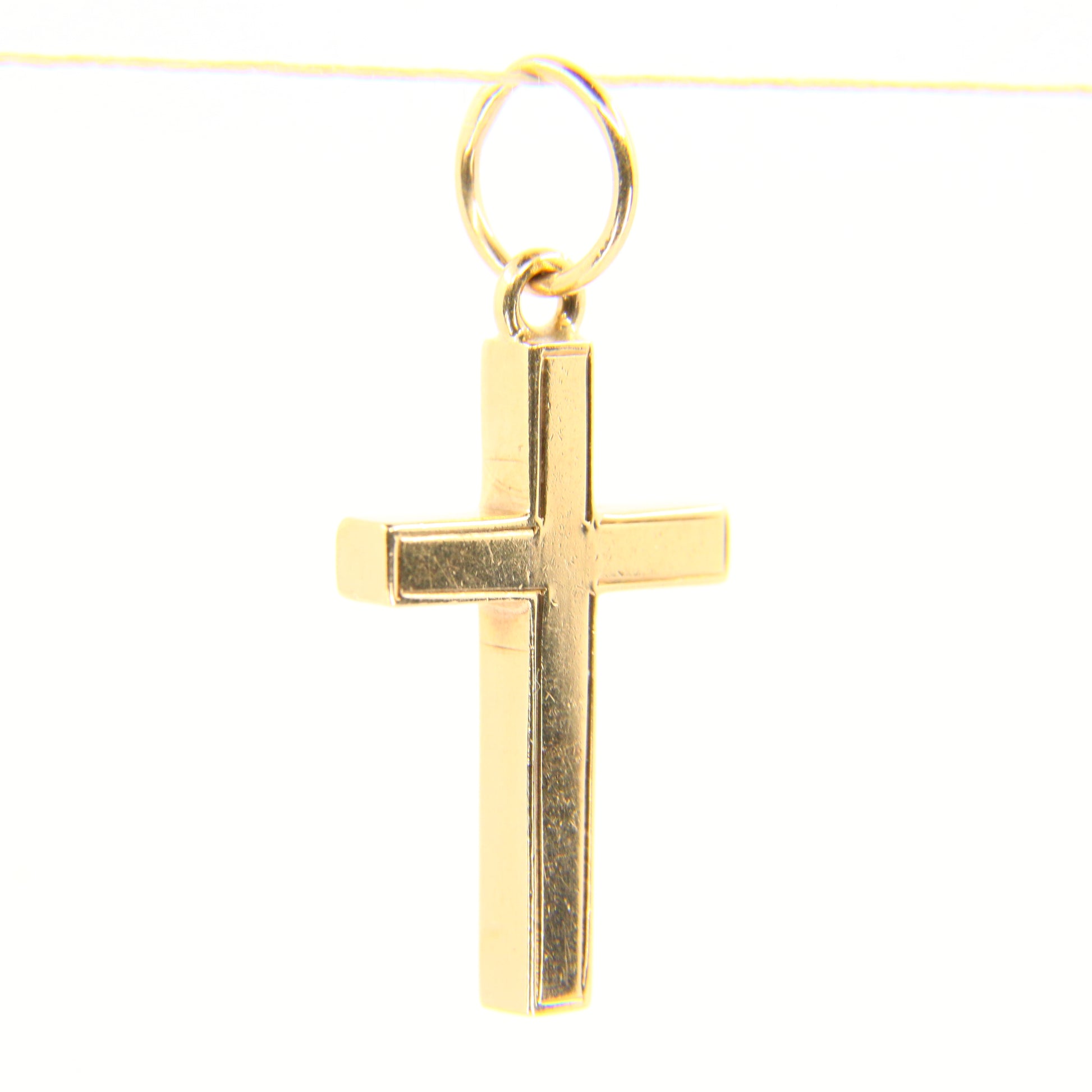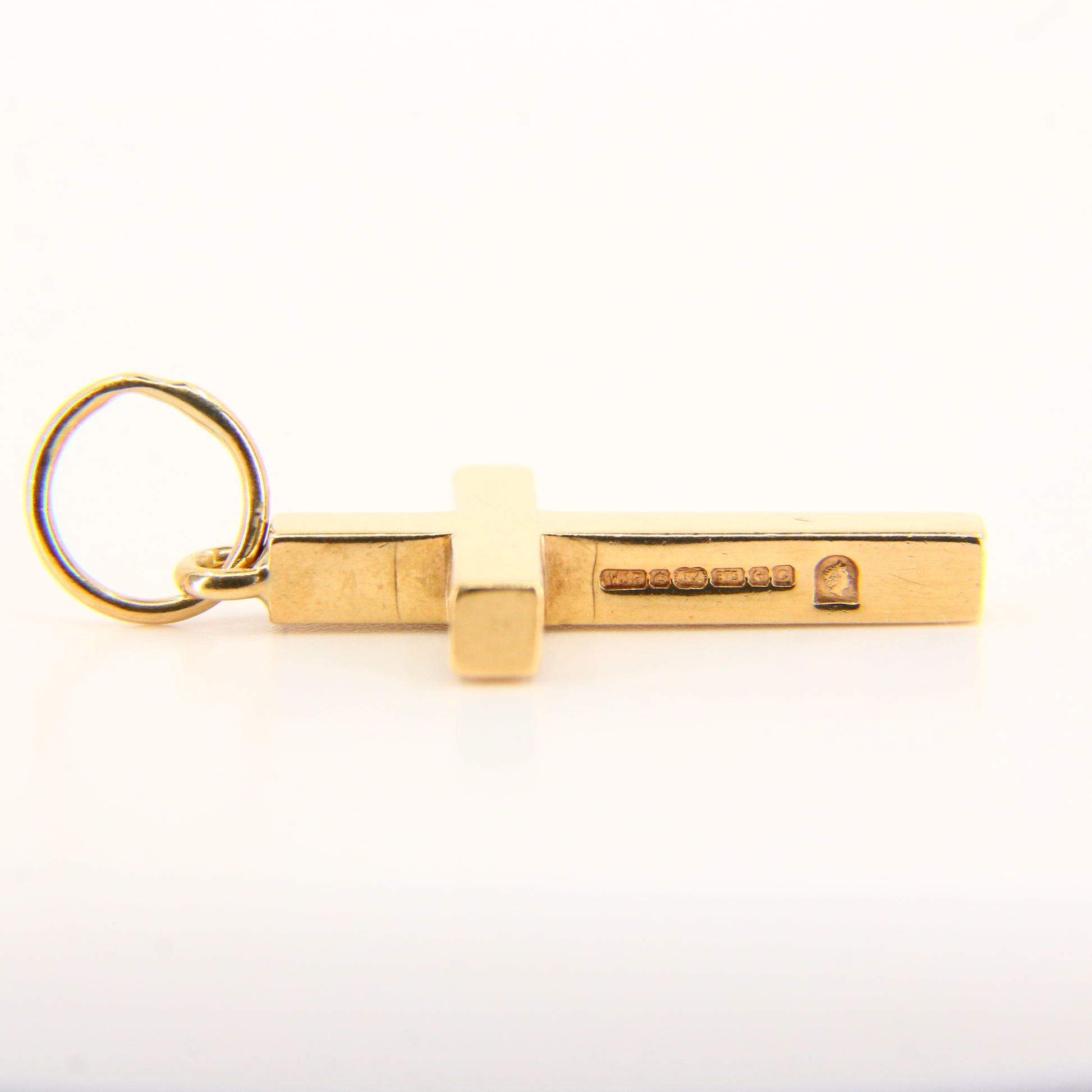 Vintage 9ct hallmarked gold cross pendant featuring a 2002 Queen’s Head stamp, blending religious symbolism with British heritage. A meaningful and solid gold charm ideal for collectors or as a thoughtful gift.