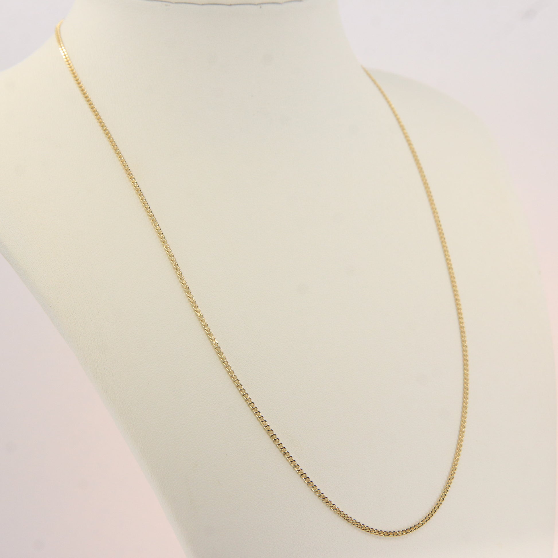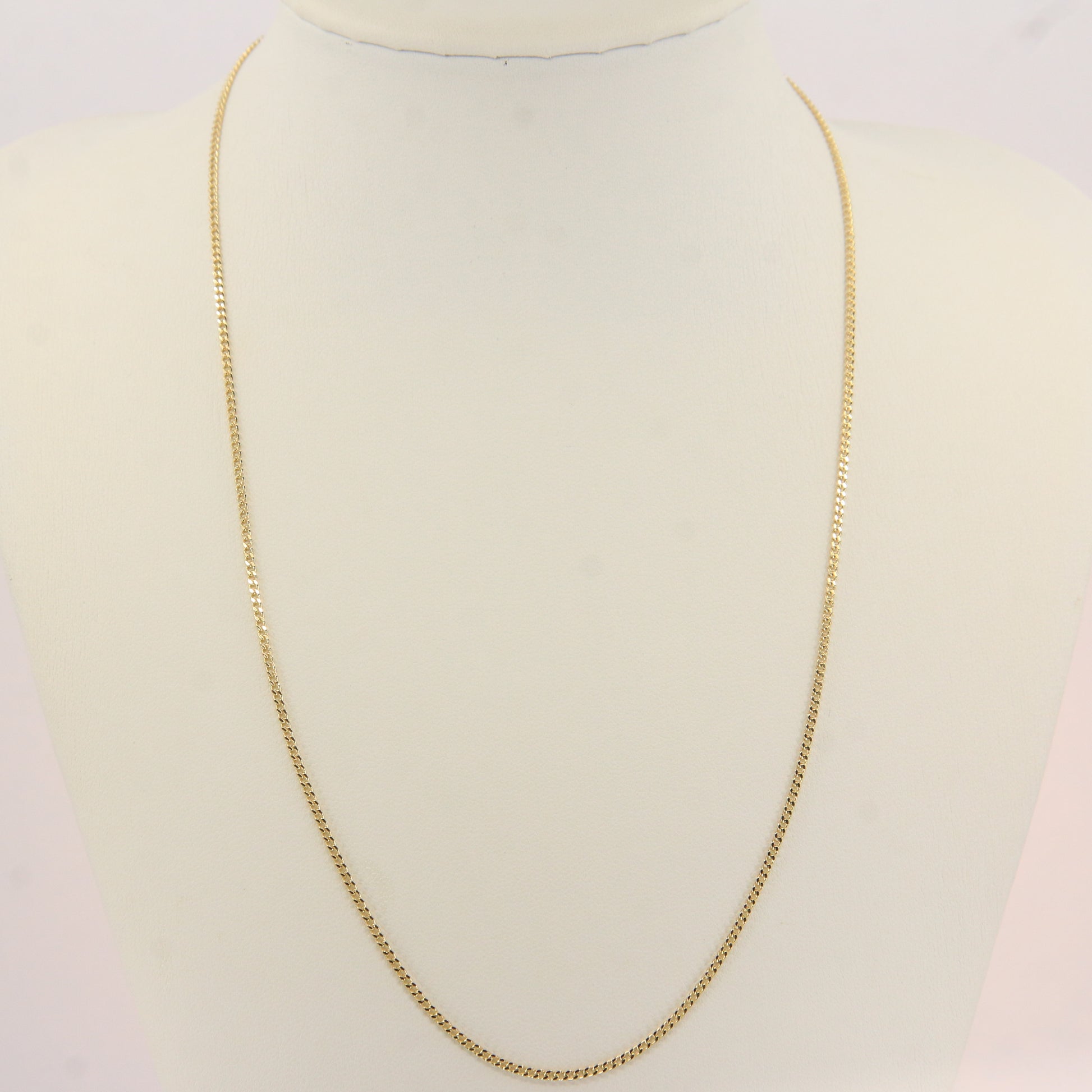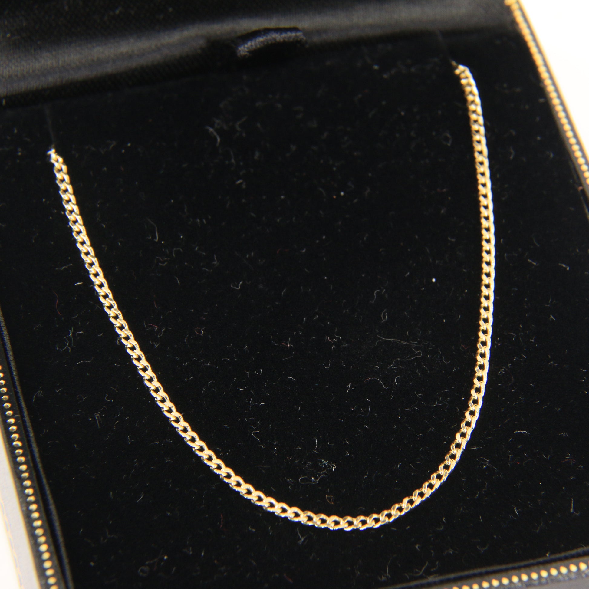 Classic vintage 9ct yellow gold curb chain necklace, fully hallmarked and measuring 18 inches in length. A timeless solid gold chain presented boxed and ready to gift.