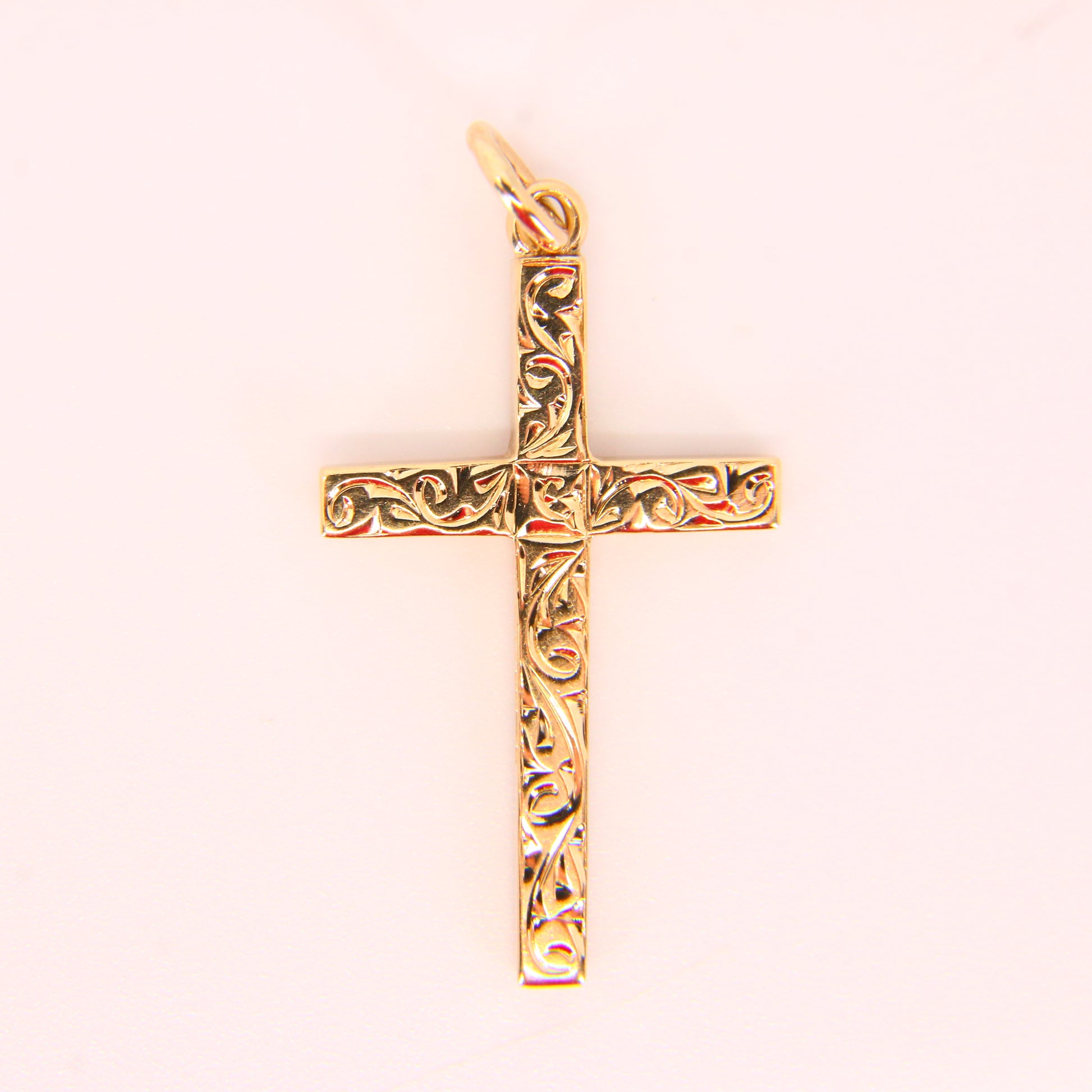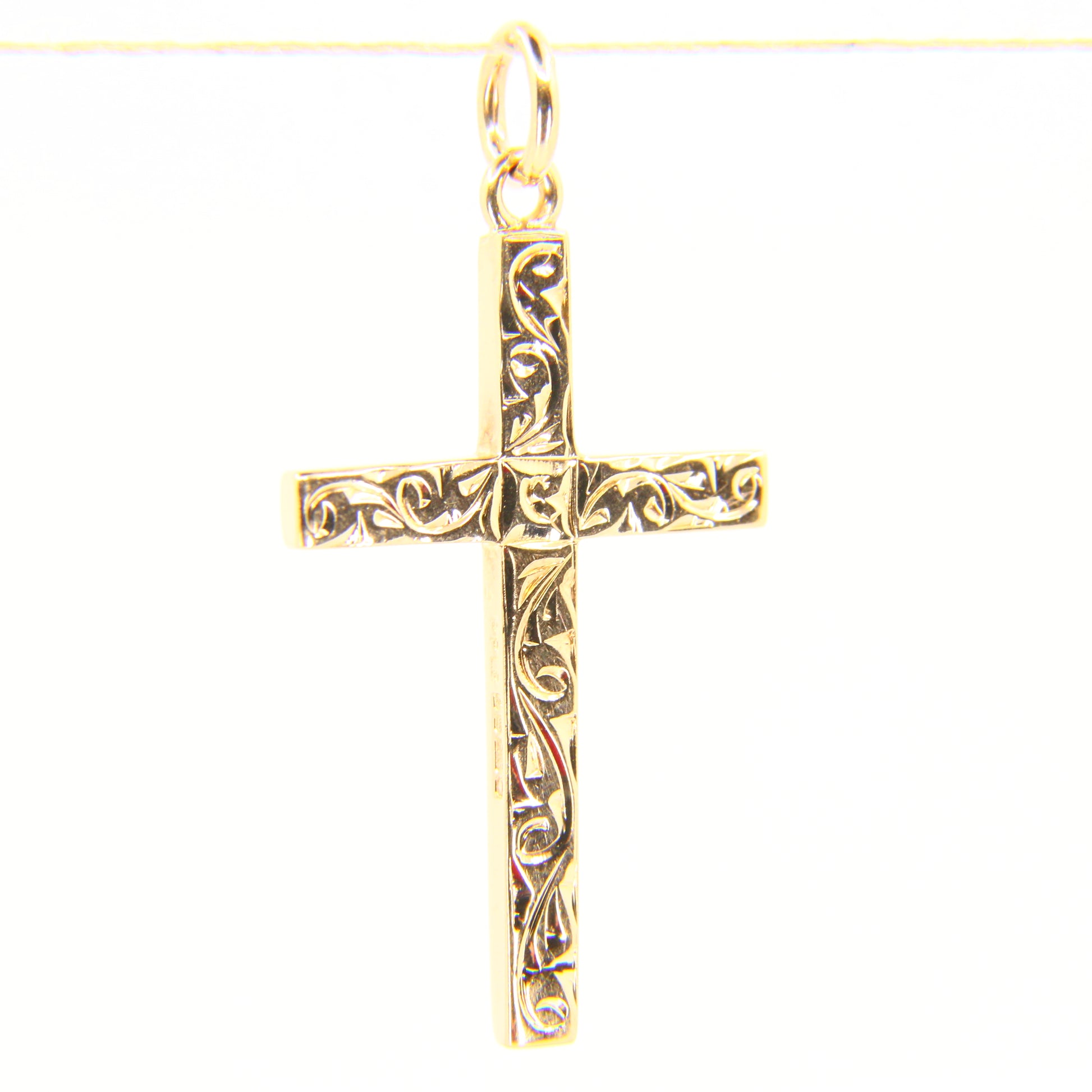 Vintage 9ct Gold Detailed Front Cross Pendant Fully Hallmarked Yellow Gold Charm