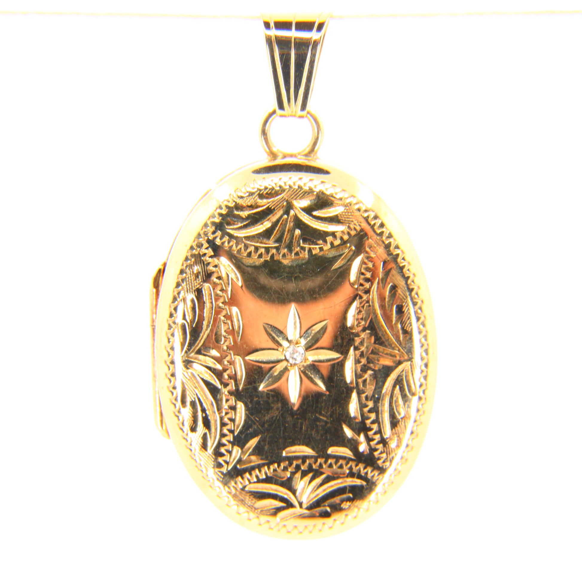 Vintage 9ct Gold & Diamond Photo Detailed Locket Pendant Hallmarked Yellow Gold