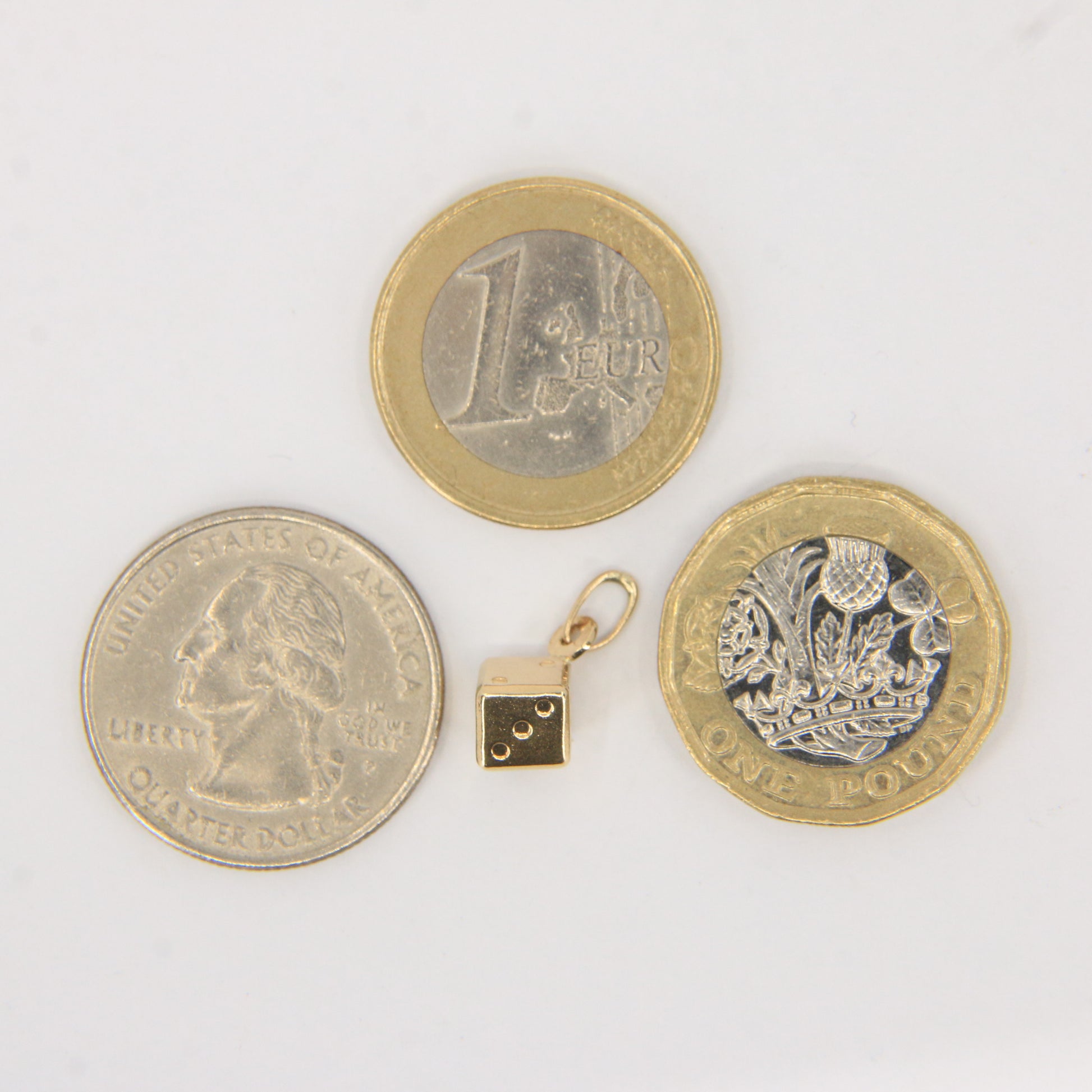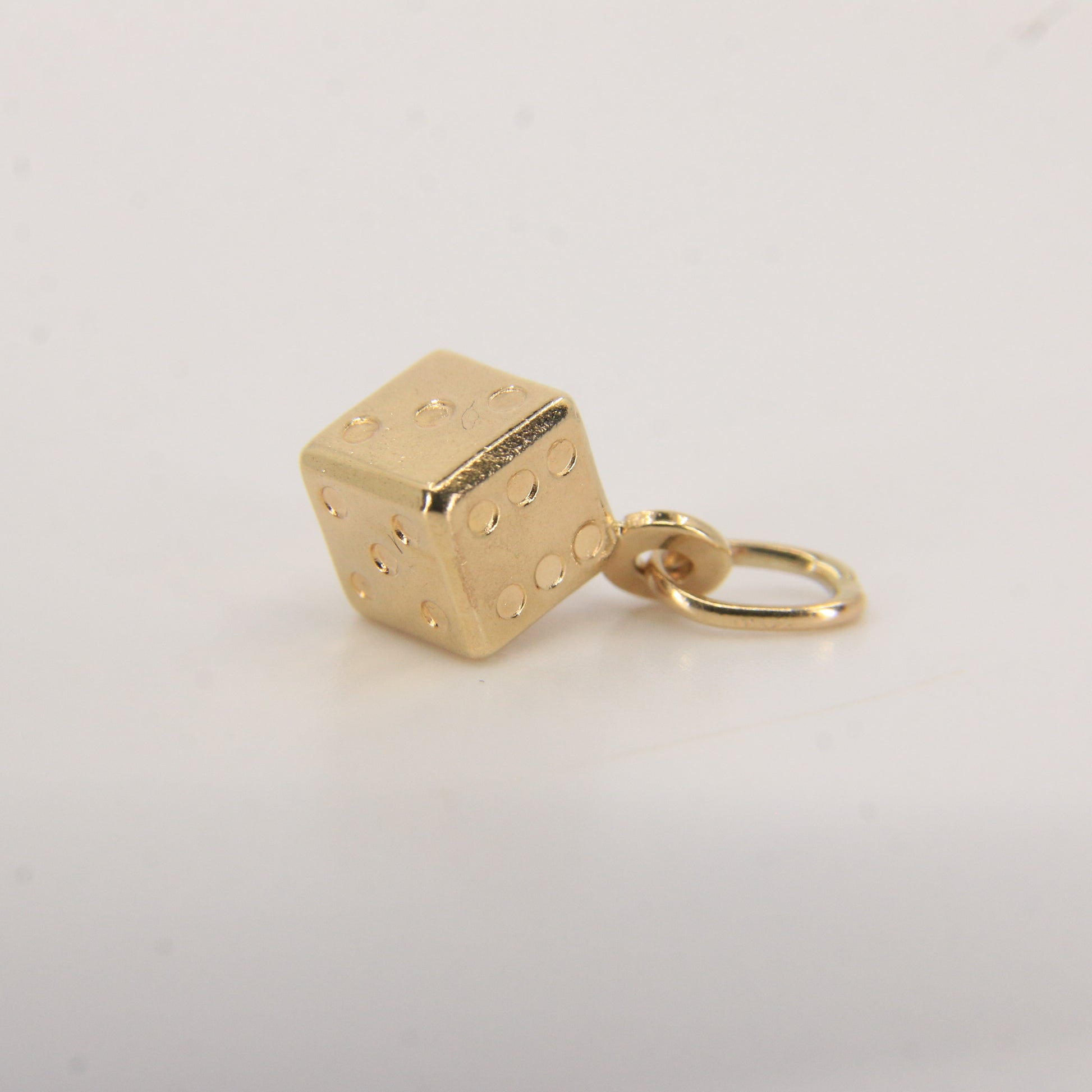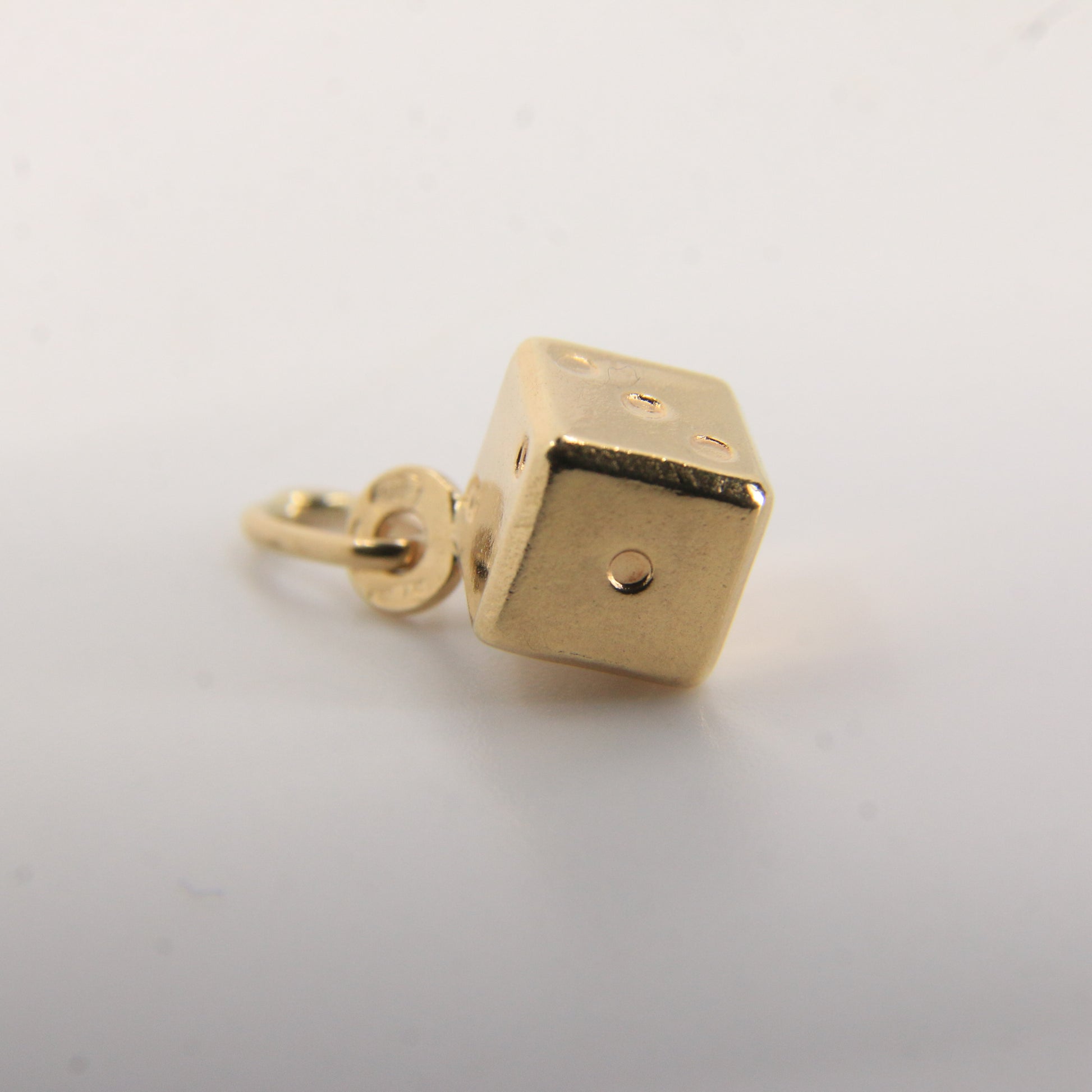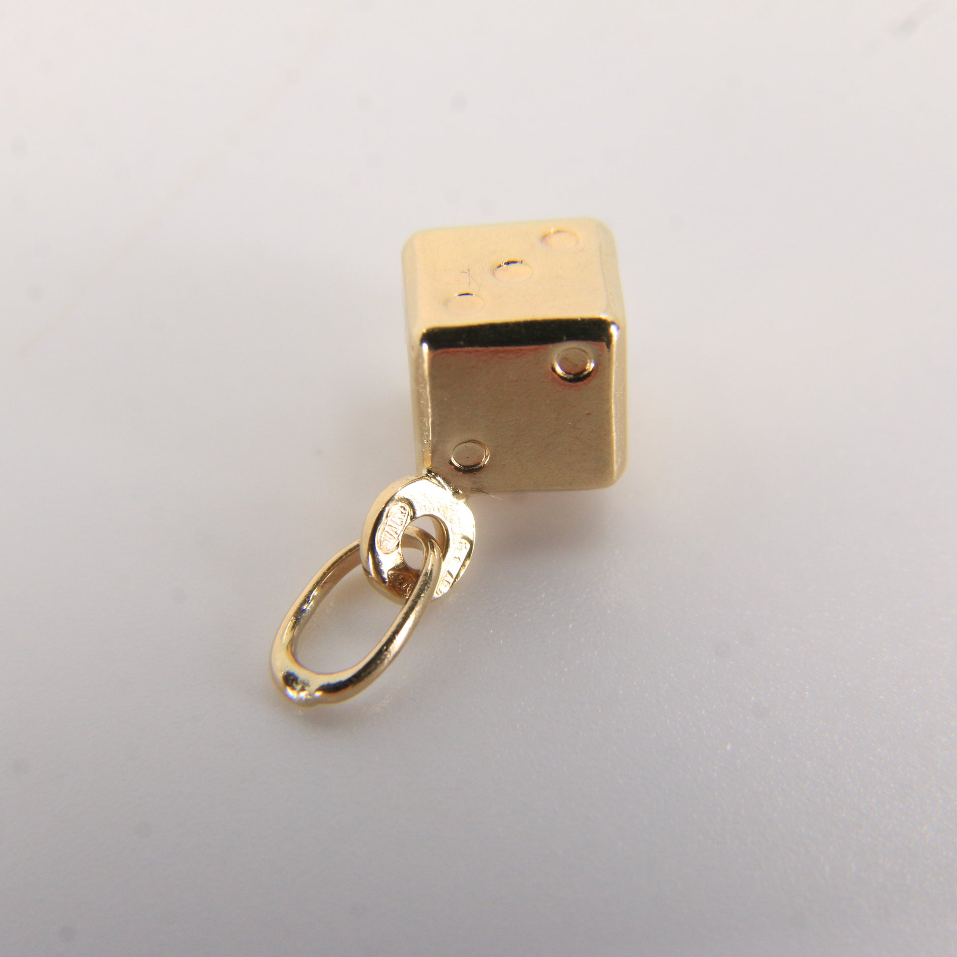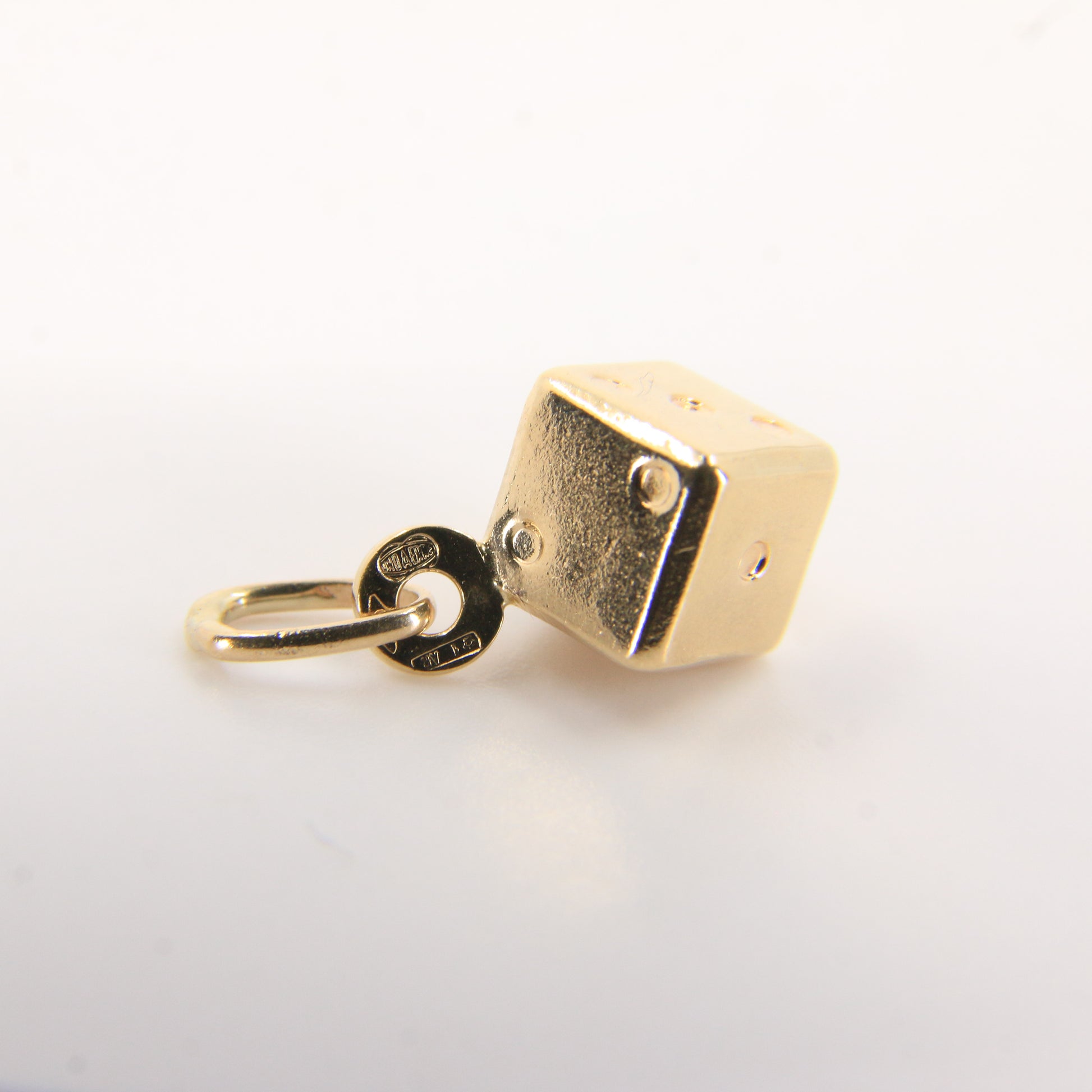 A stylish vintage 9ct gold dice charm by renowned Italian maker UNOAERRE. A perfect lucky charm or thoughtful gift for collectors and lovers of vintage gold.