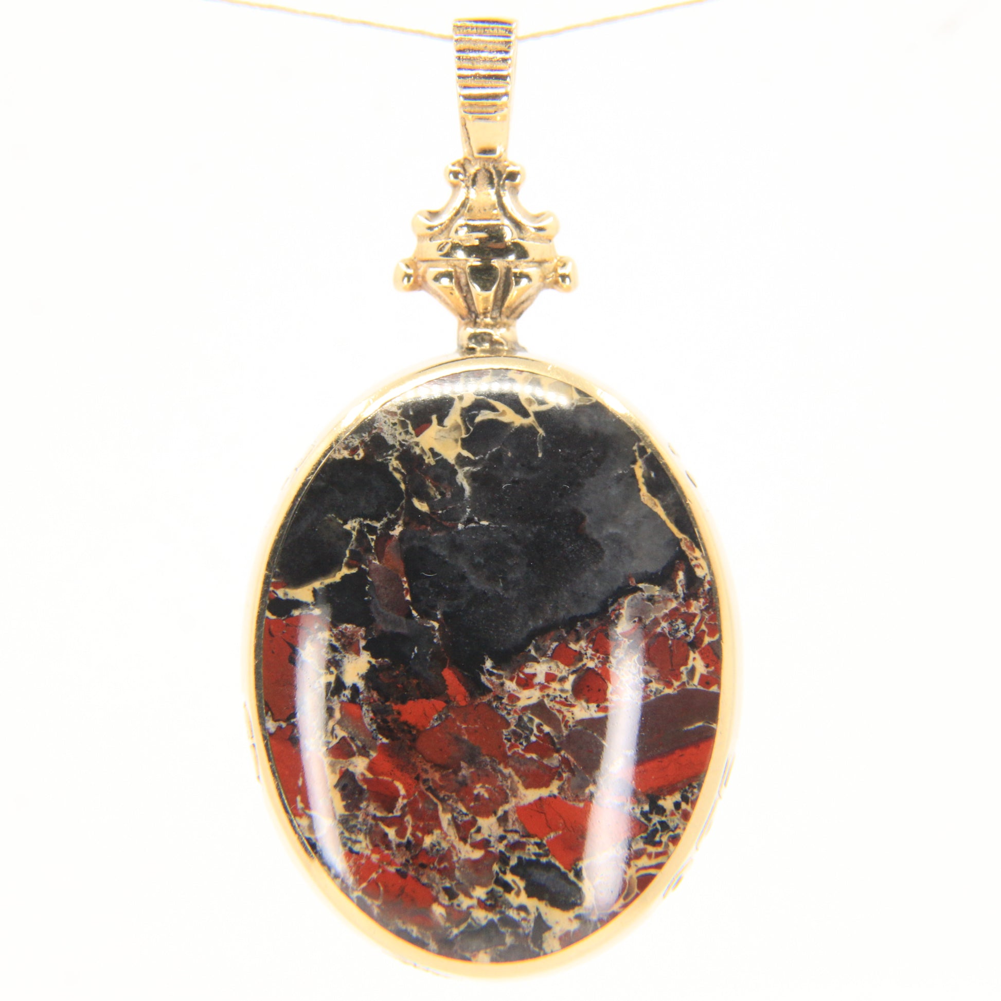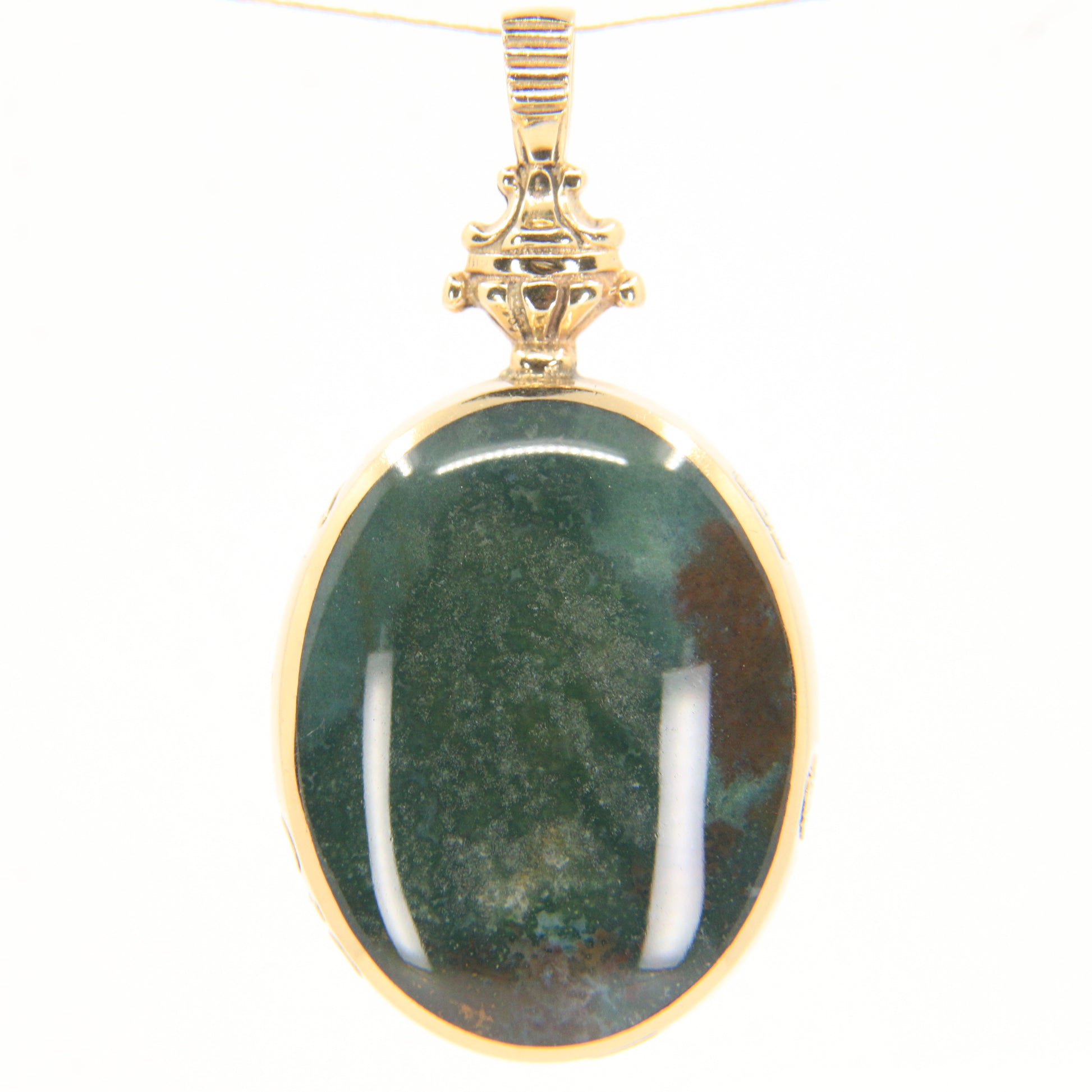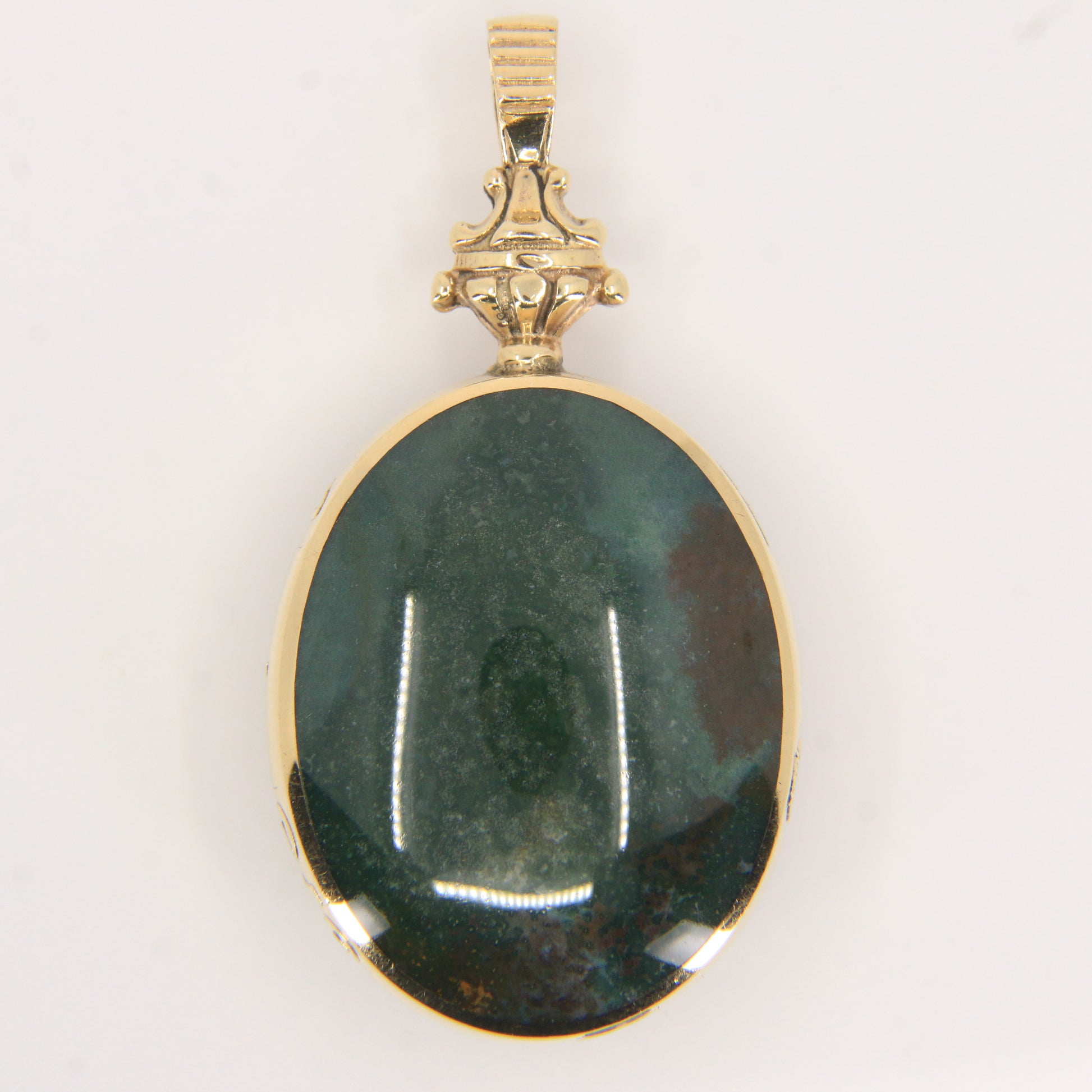 Vintage 9ct Gold Hallmarked 1995 Malachite & Blue John Agate Large Pendant Gift