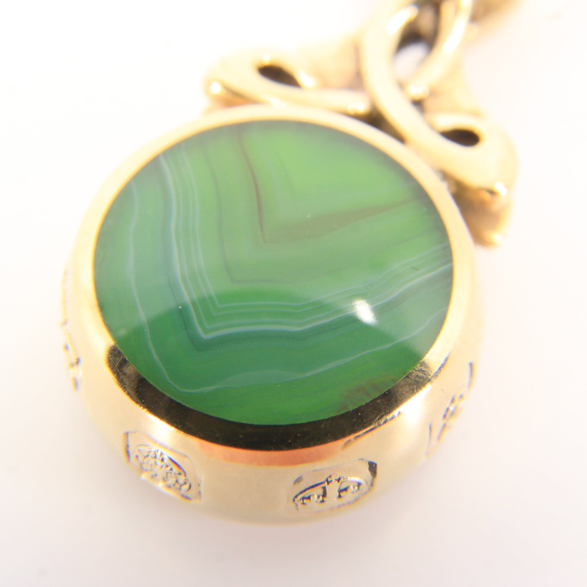 A substantial vintage 9ct gold pendant hallmarked for 2000, featuring a Celtic knot bail and a bold double-sided agate setting. A striking and symbolic piece with strong presence—add this to your collection today.