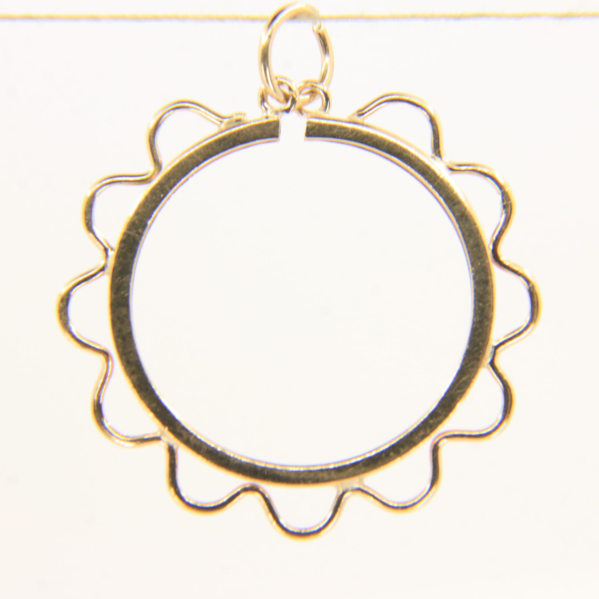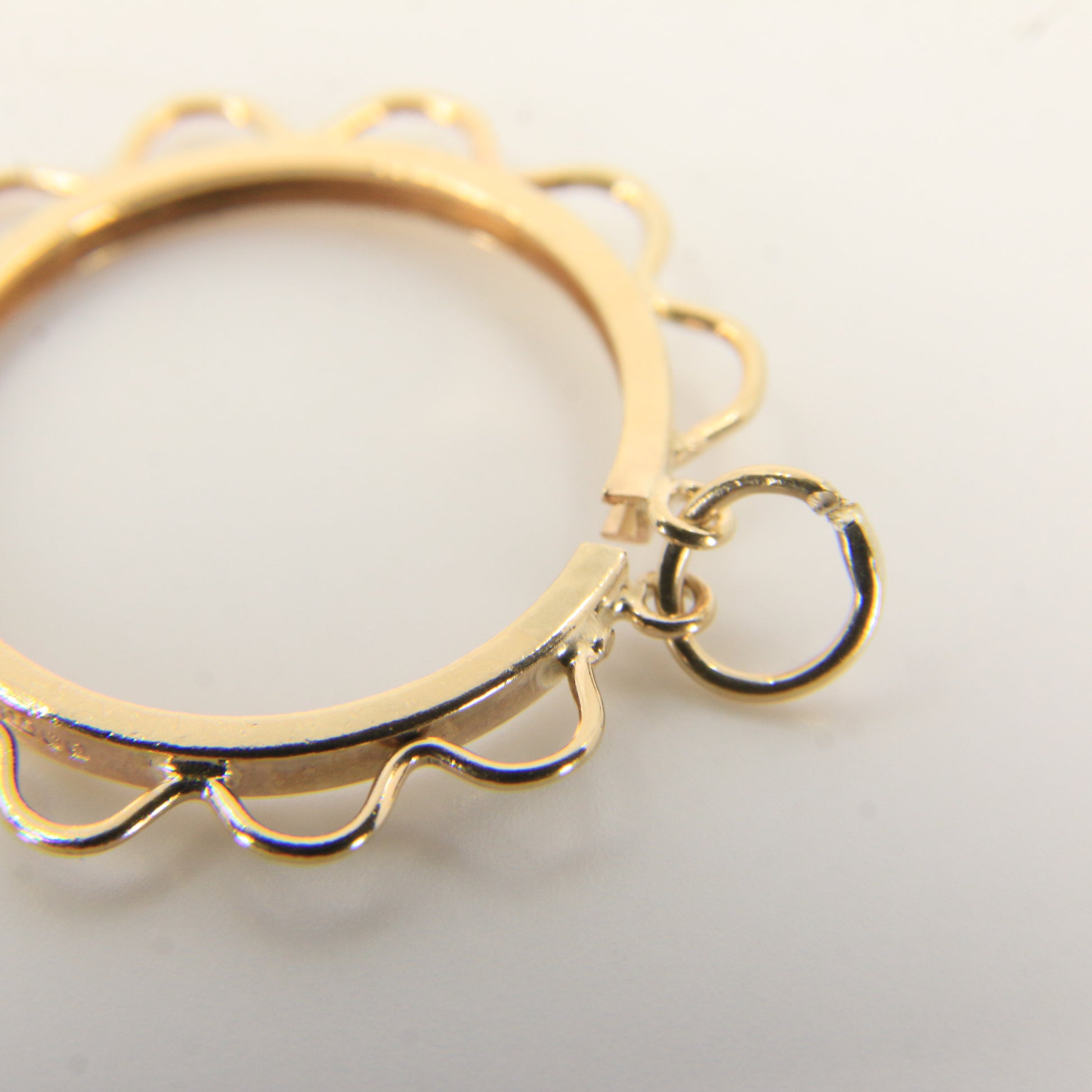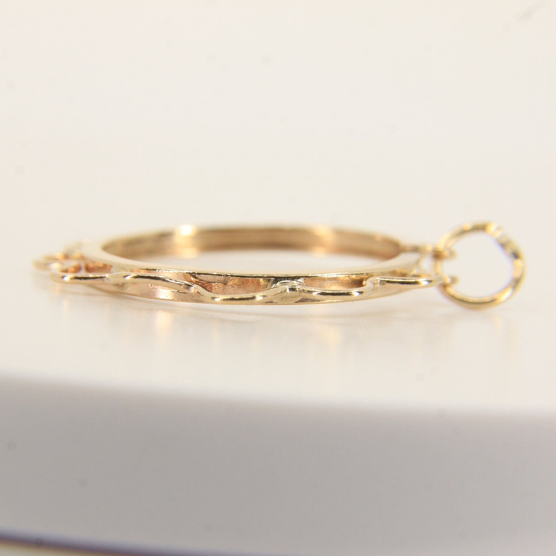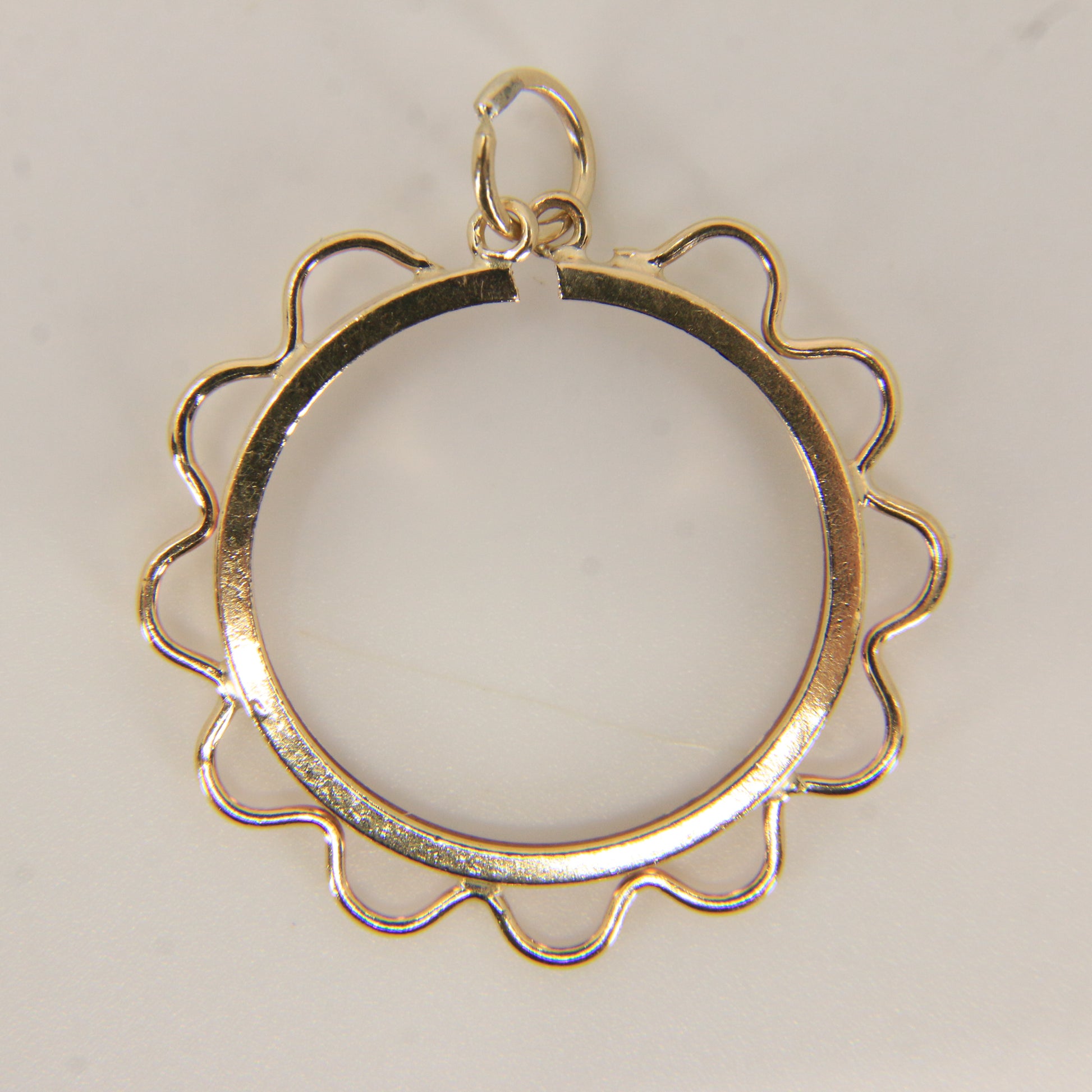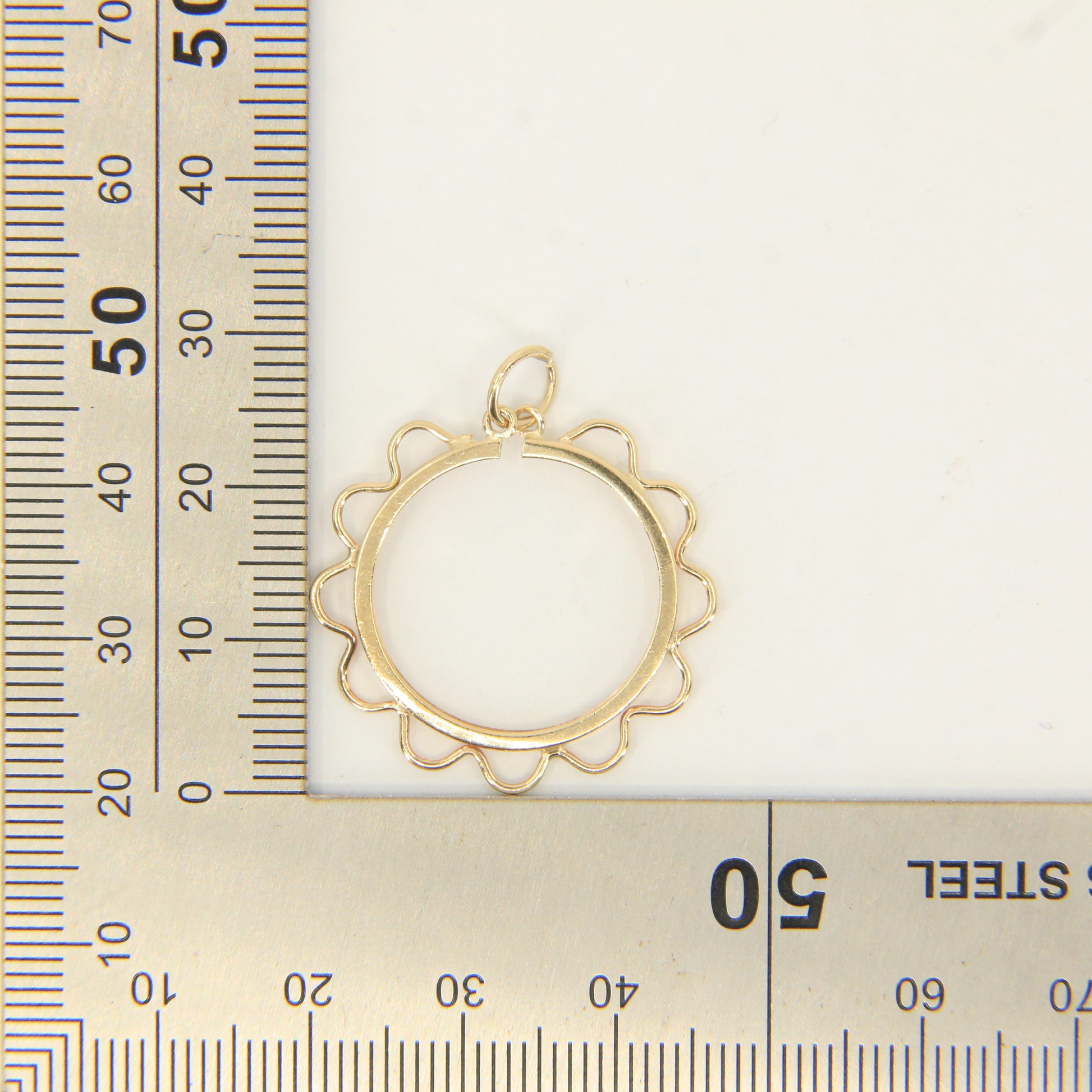 A vintage 9ct hallmarked gold half sovereign coin holder pendant designed to securely display and wear a coin as jewellery. A classic and collectable mount charm — add this versatile piece to your collection today.