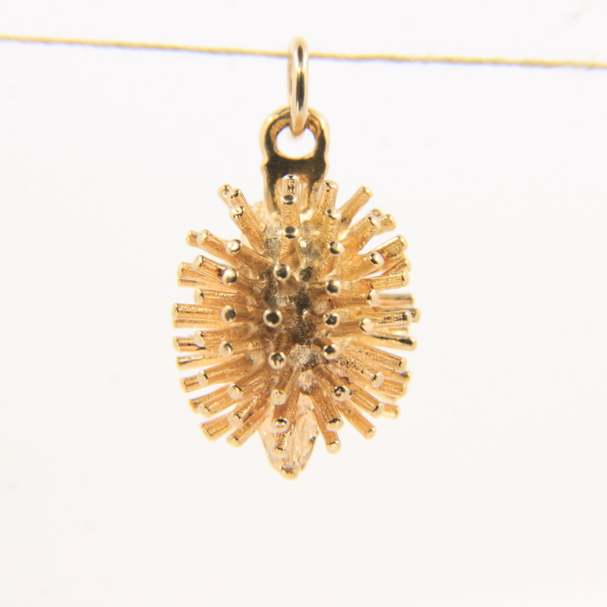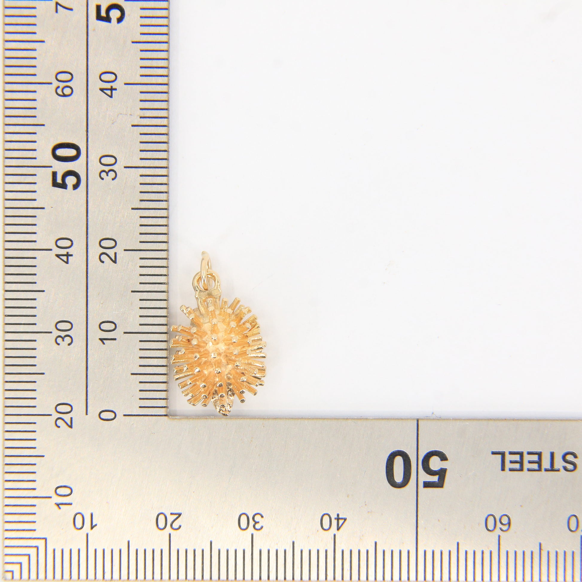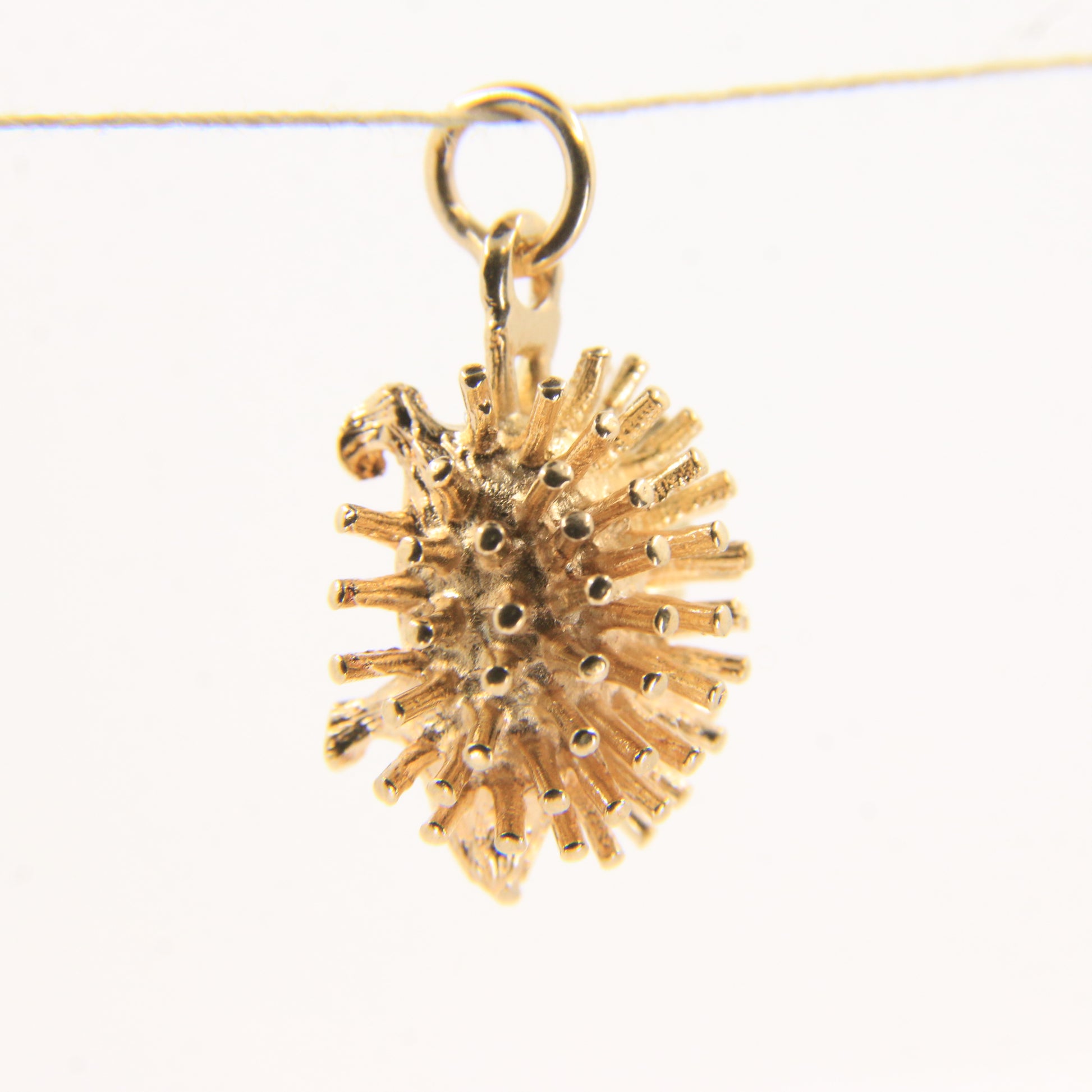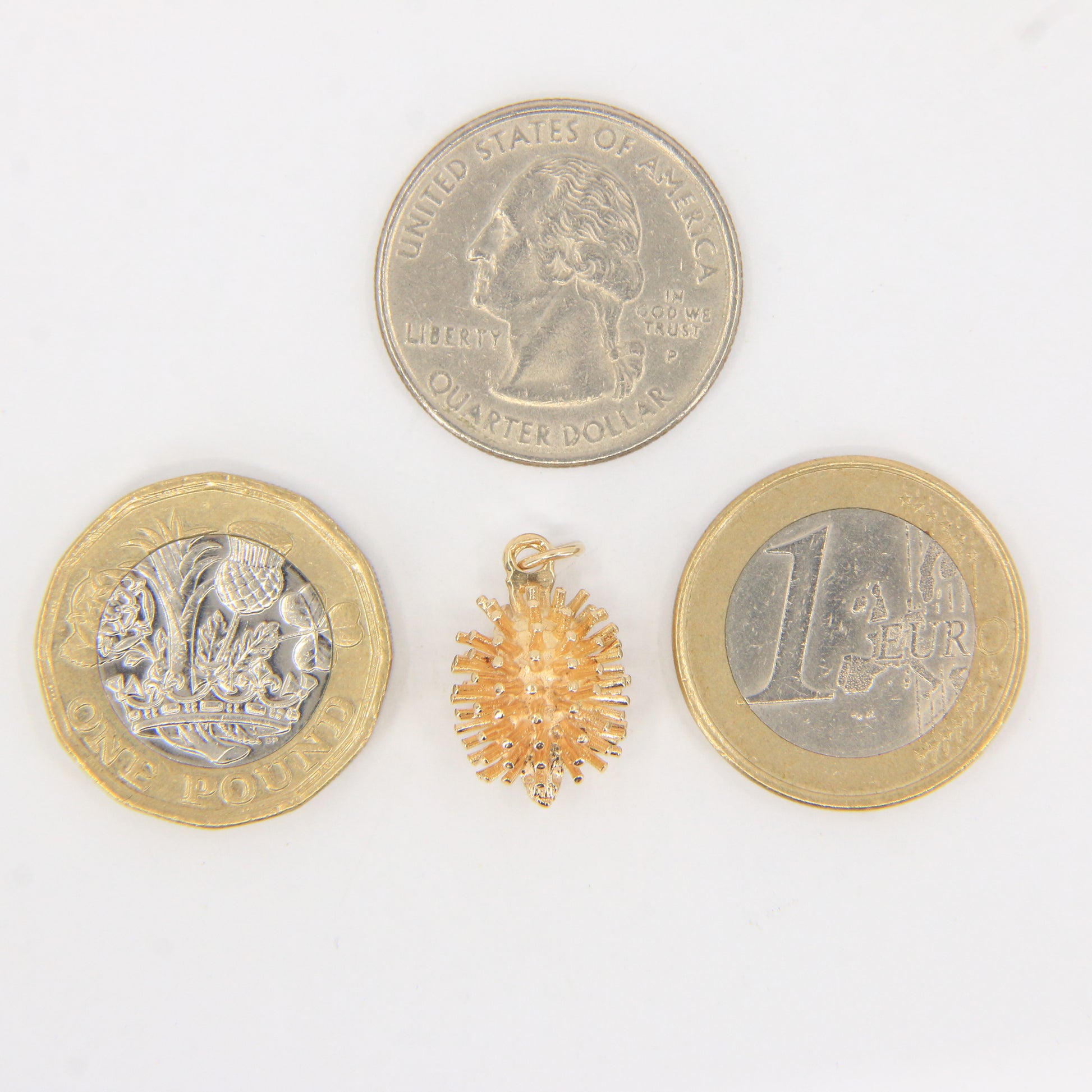 A vintage 9ct hallmarked gold hedgehog charm with detailed textured spines, crafted in solid yellow gold. A whimsical and collectable animal pendant — add this unique piece of jewellery to your charm collection today.