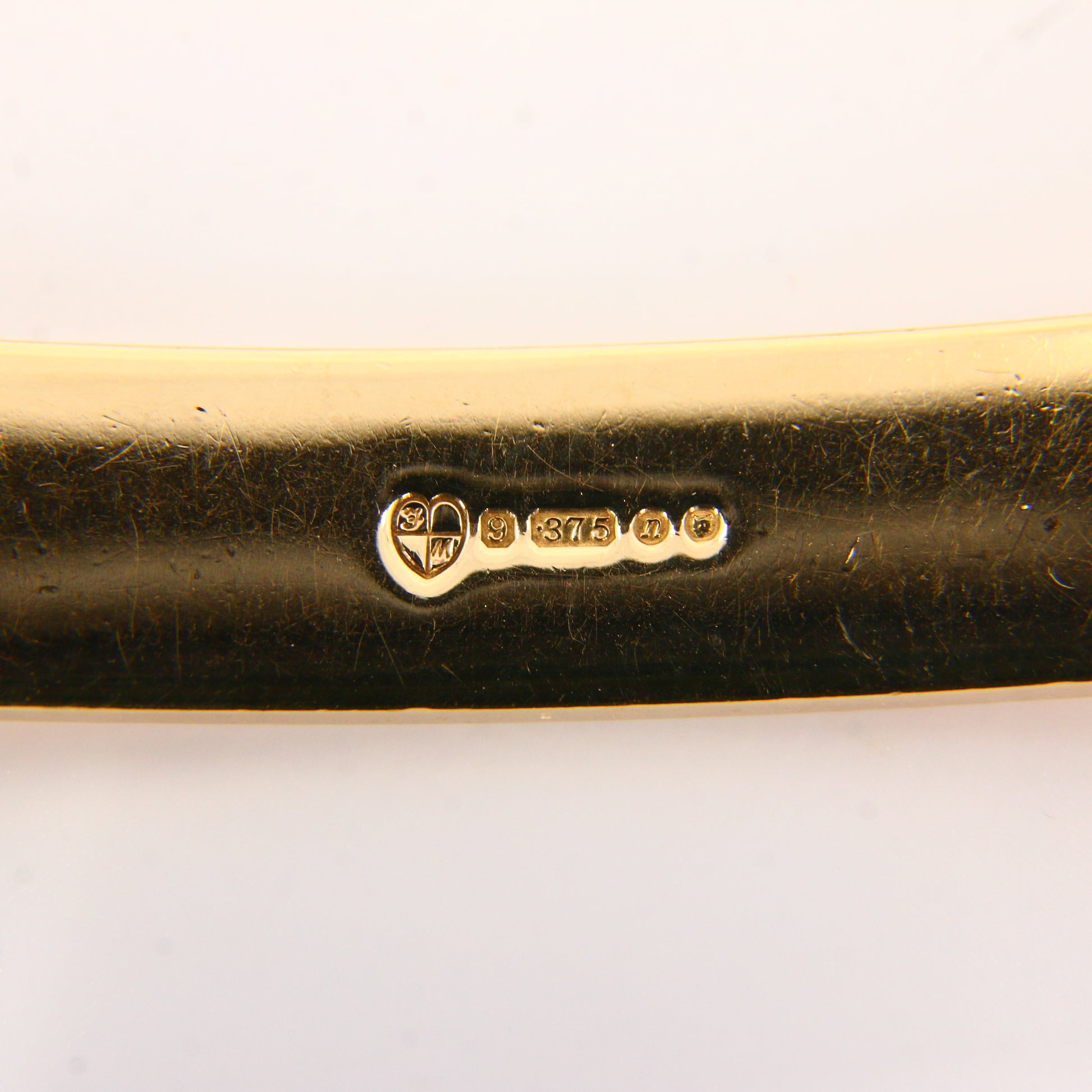 Hallmark: British Hallmarks for 9 Carat Gold "9 375" London 1967 with makers marks,
