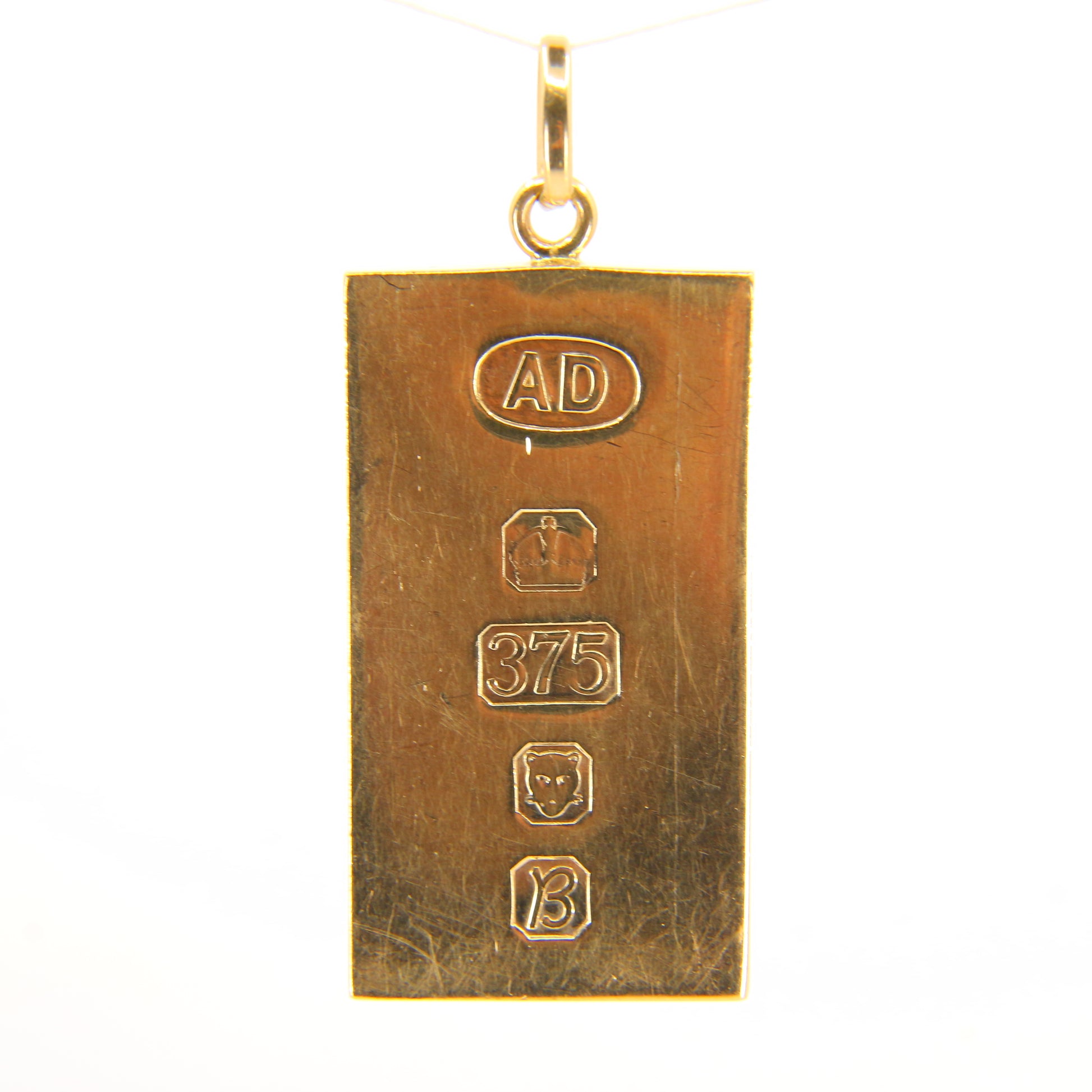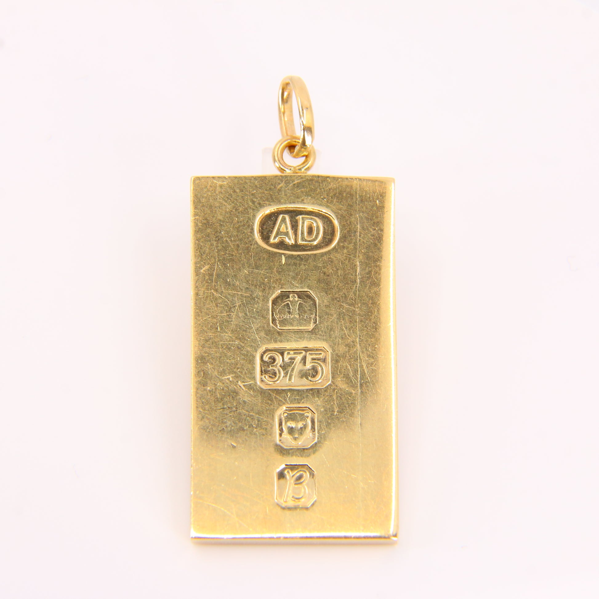 Vintage 9ct Gold Ingot Pendant Charm Hallmarked London 1976 Yellow Gold