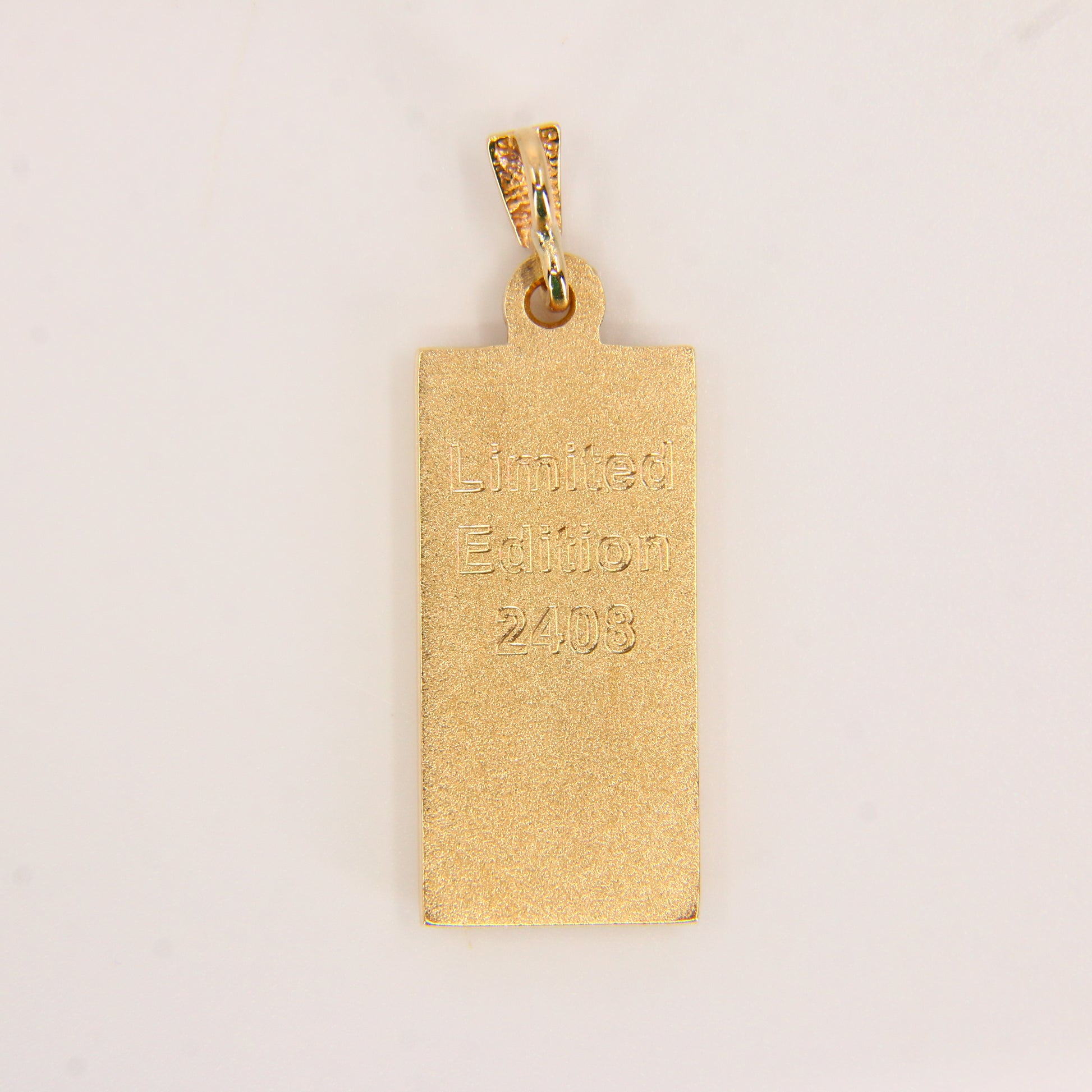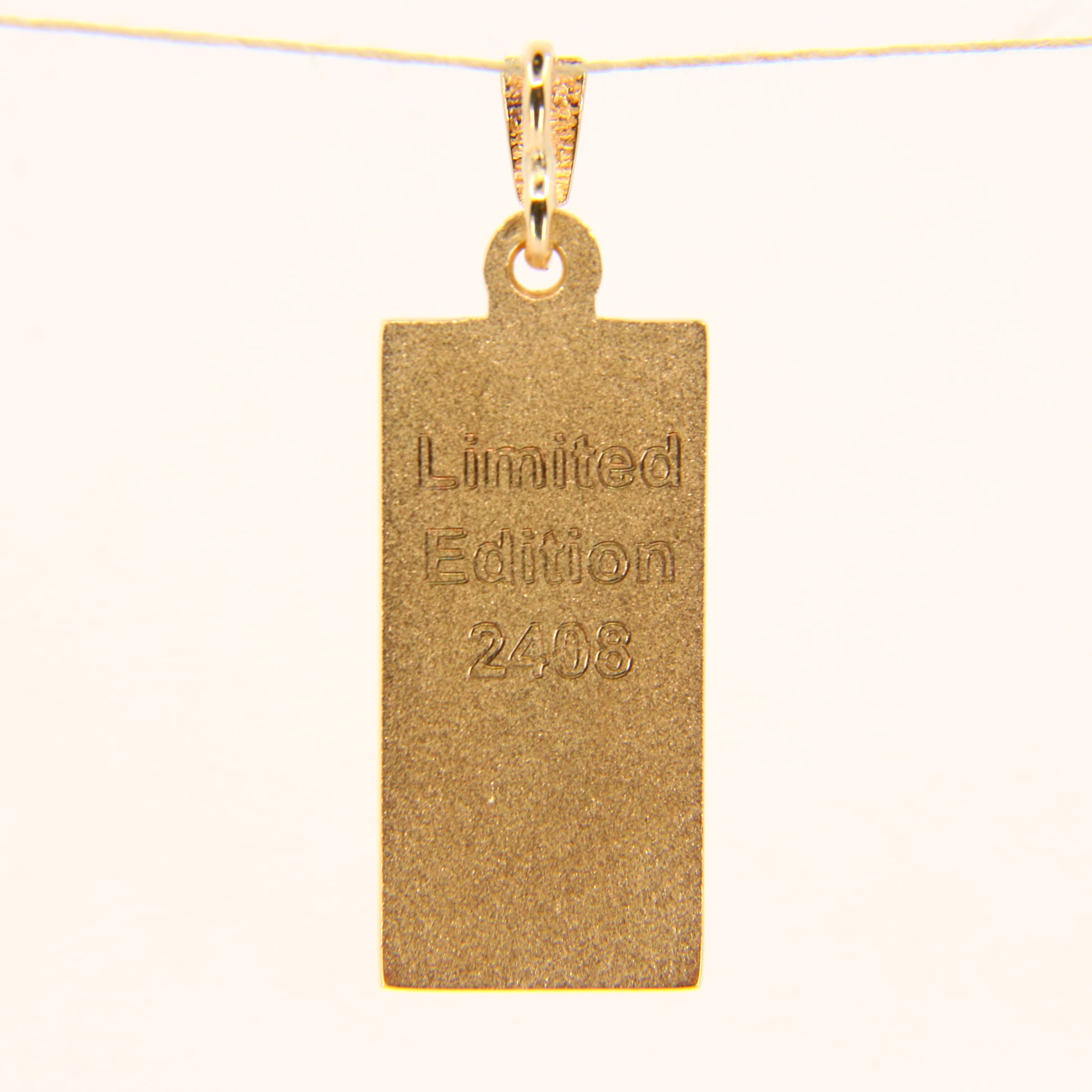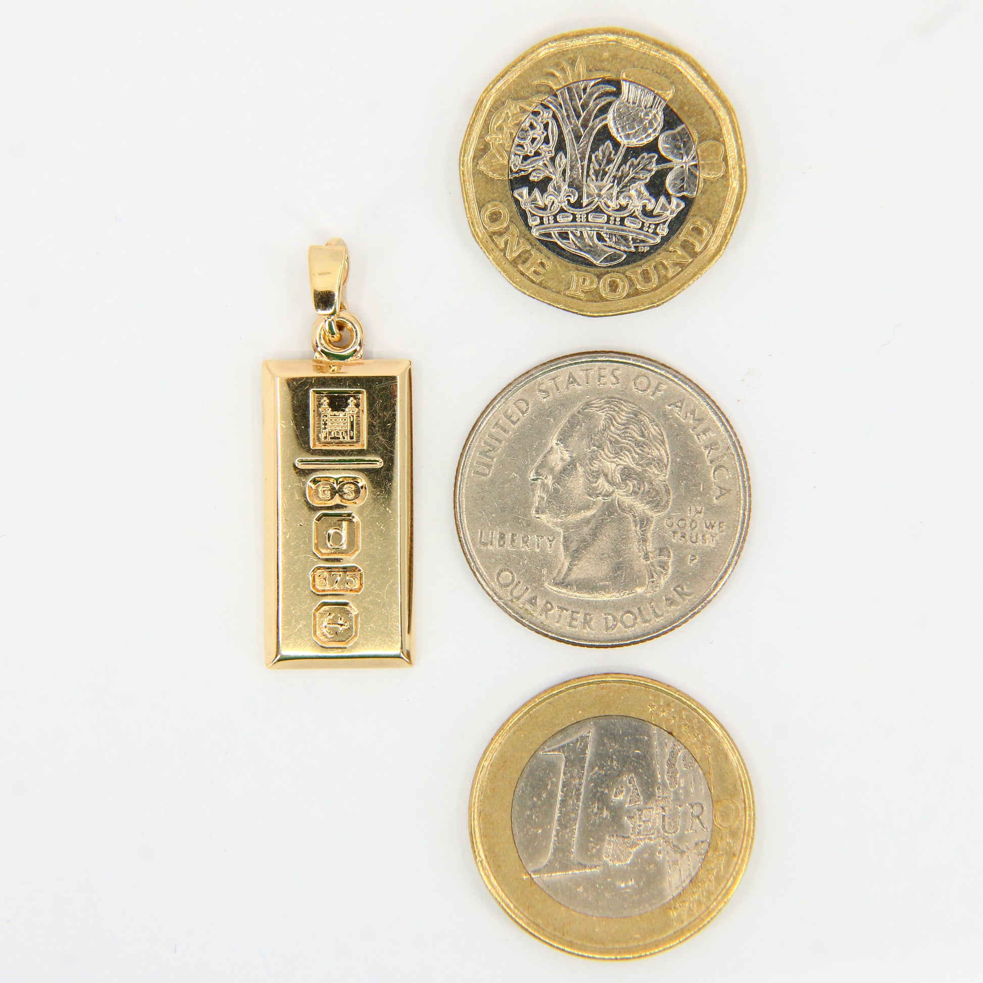 This classic 9ct yellow gold ingot pendant is fully hallmarked for Birmingham, dated 2003, and produced as part of a limited edition range. A weighty and timeless piece, ideal as both a wearable charm and a collector’s keepsake.