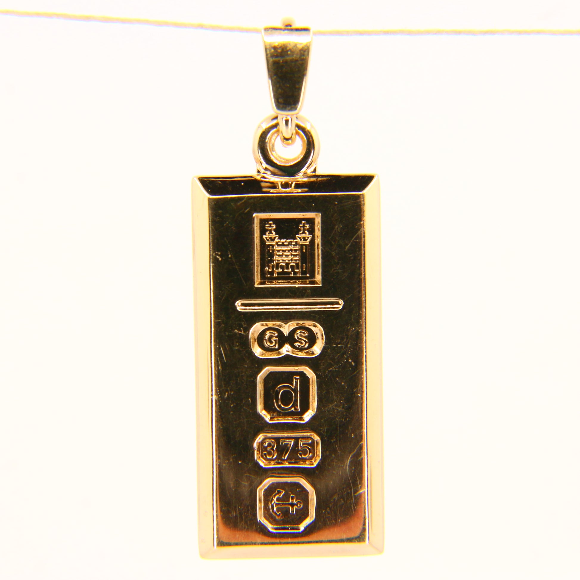 Vintage 9ct Gold Ingot Pendant Hallmarked Birmingham 2003 Limited Gift