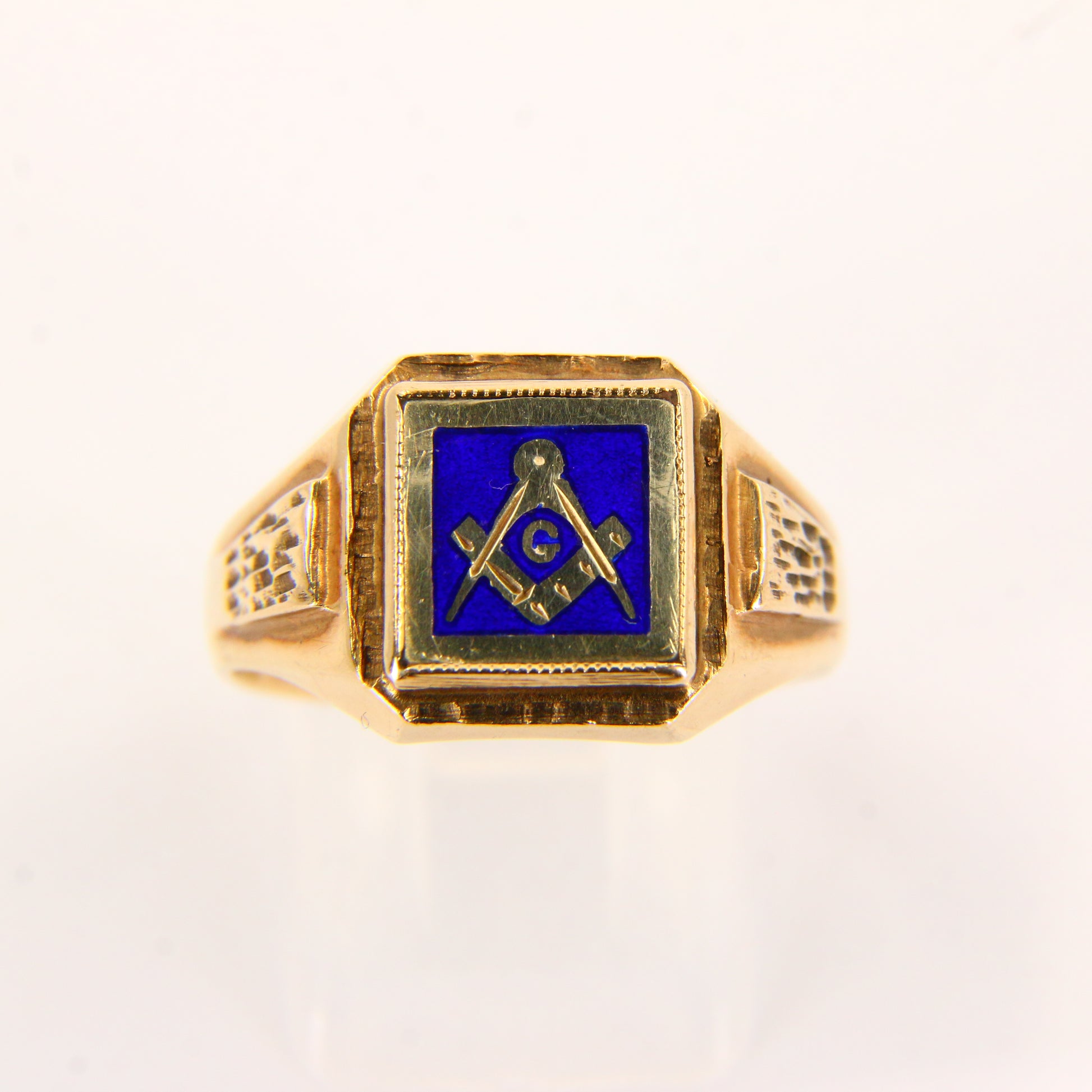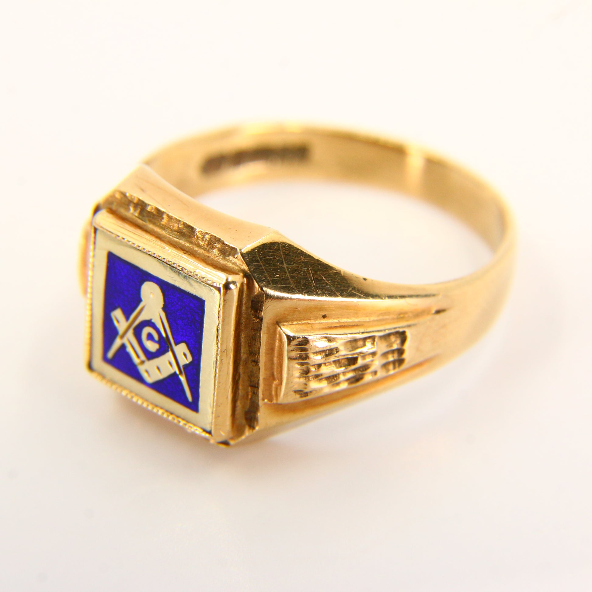 Vintage 9ct Gold Masonic Ring – Blue Enamel – UK T½ – Hallmarked Solid Gold