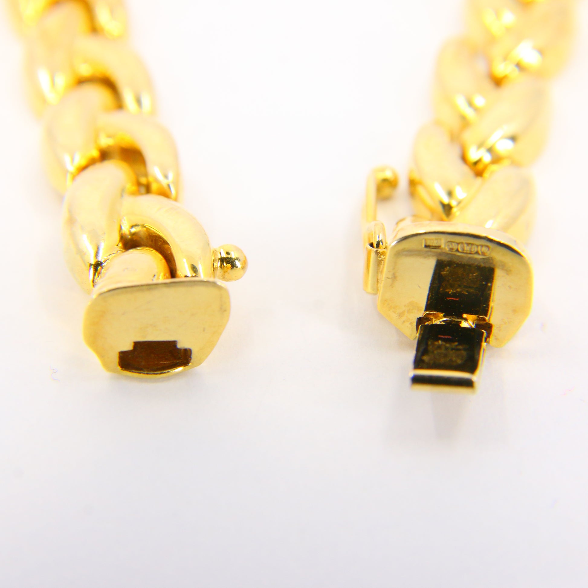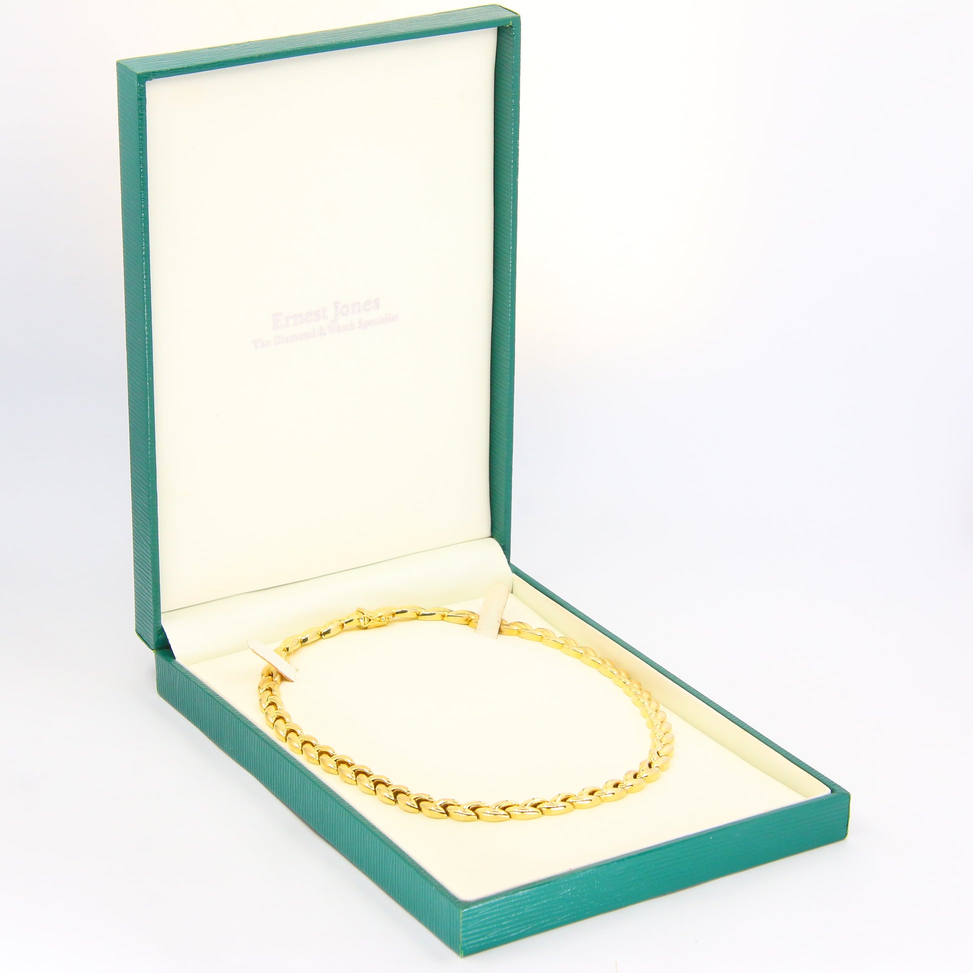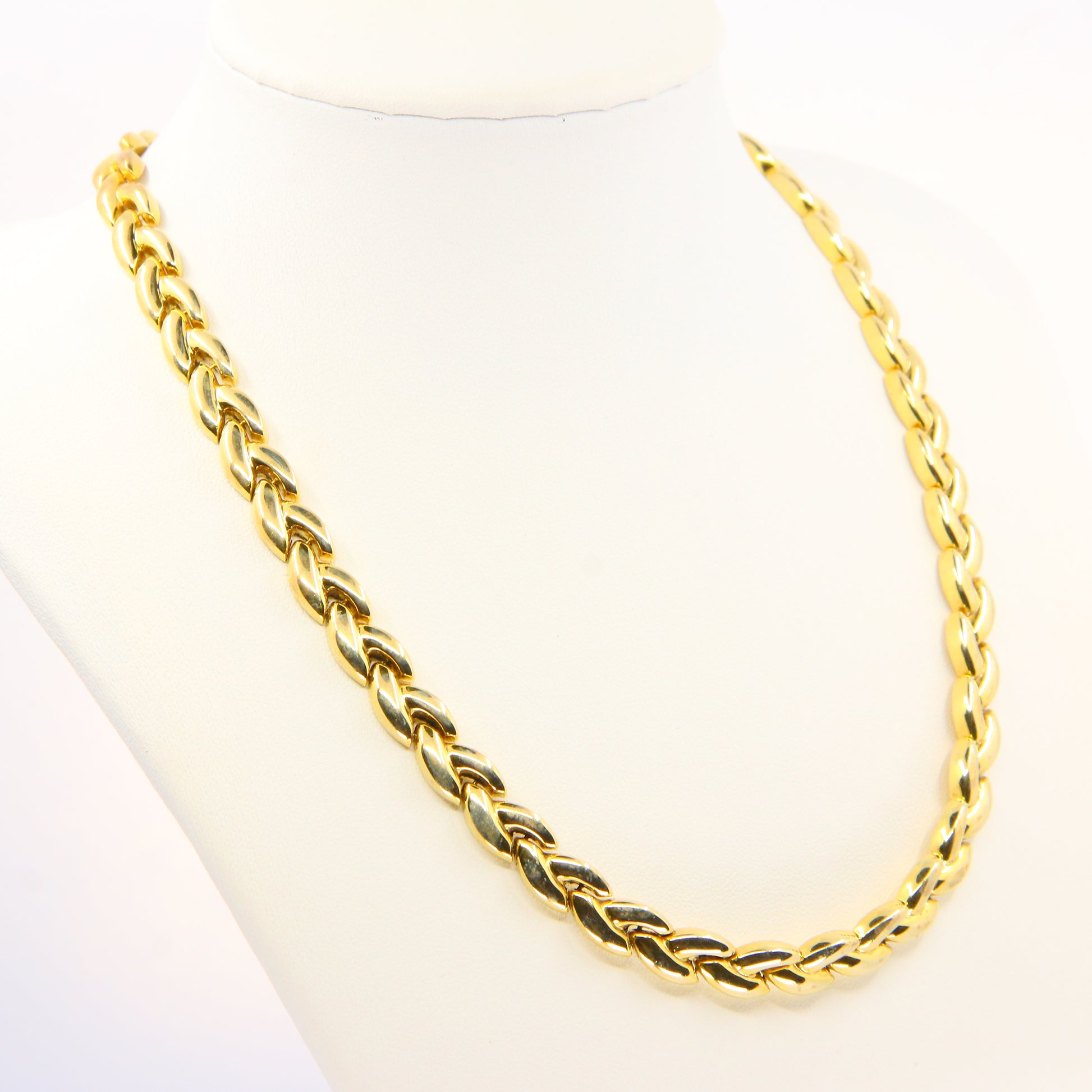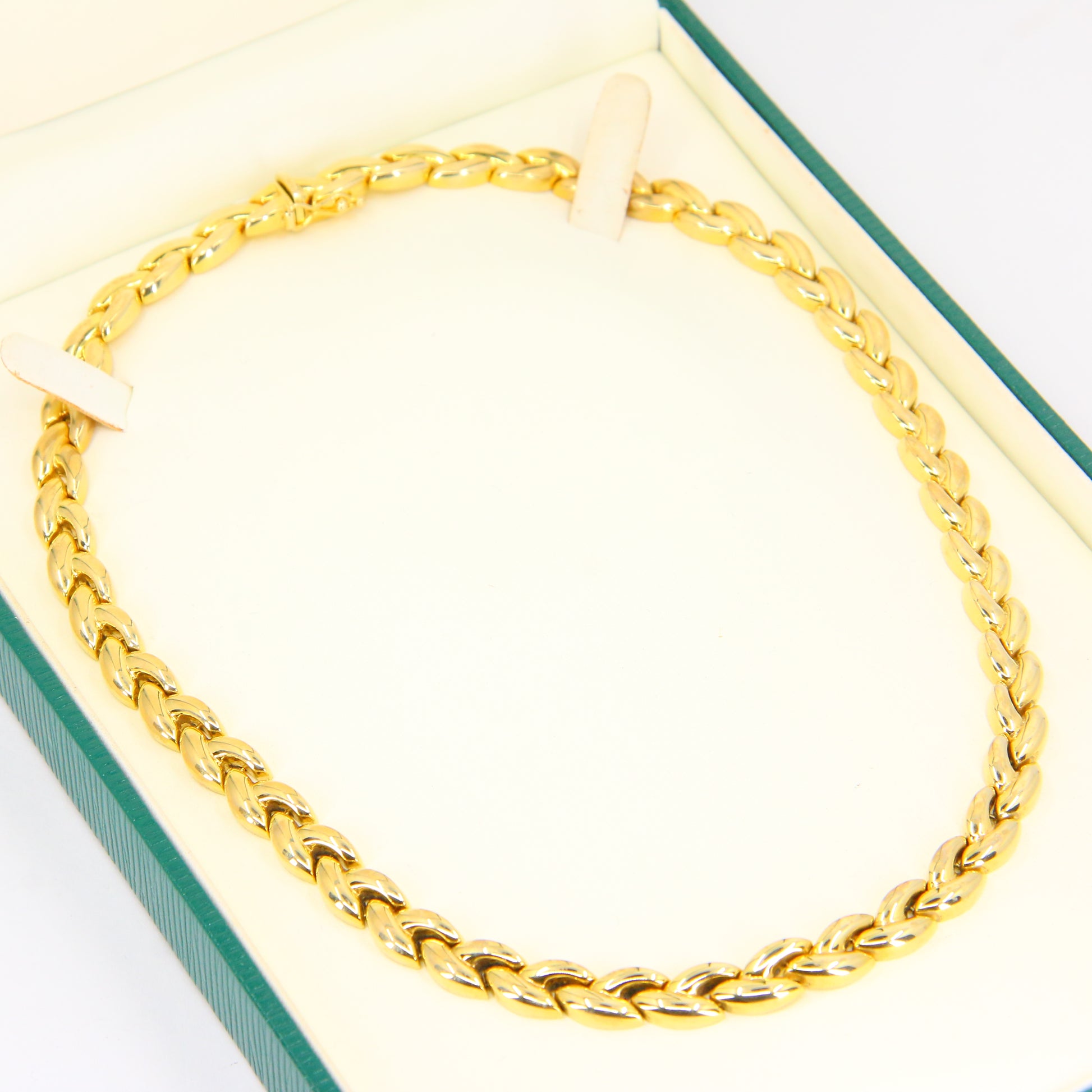 A nice quality solid gold necklace 17.25 inch long (closed). Italian made necklace with a British import hallmark. The hallmark on the inside of the clasp. The clasp fitted with a safety catch. A perfect gift or addition to any collection.