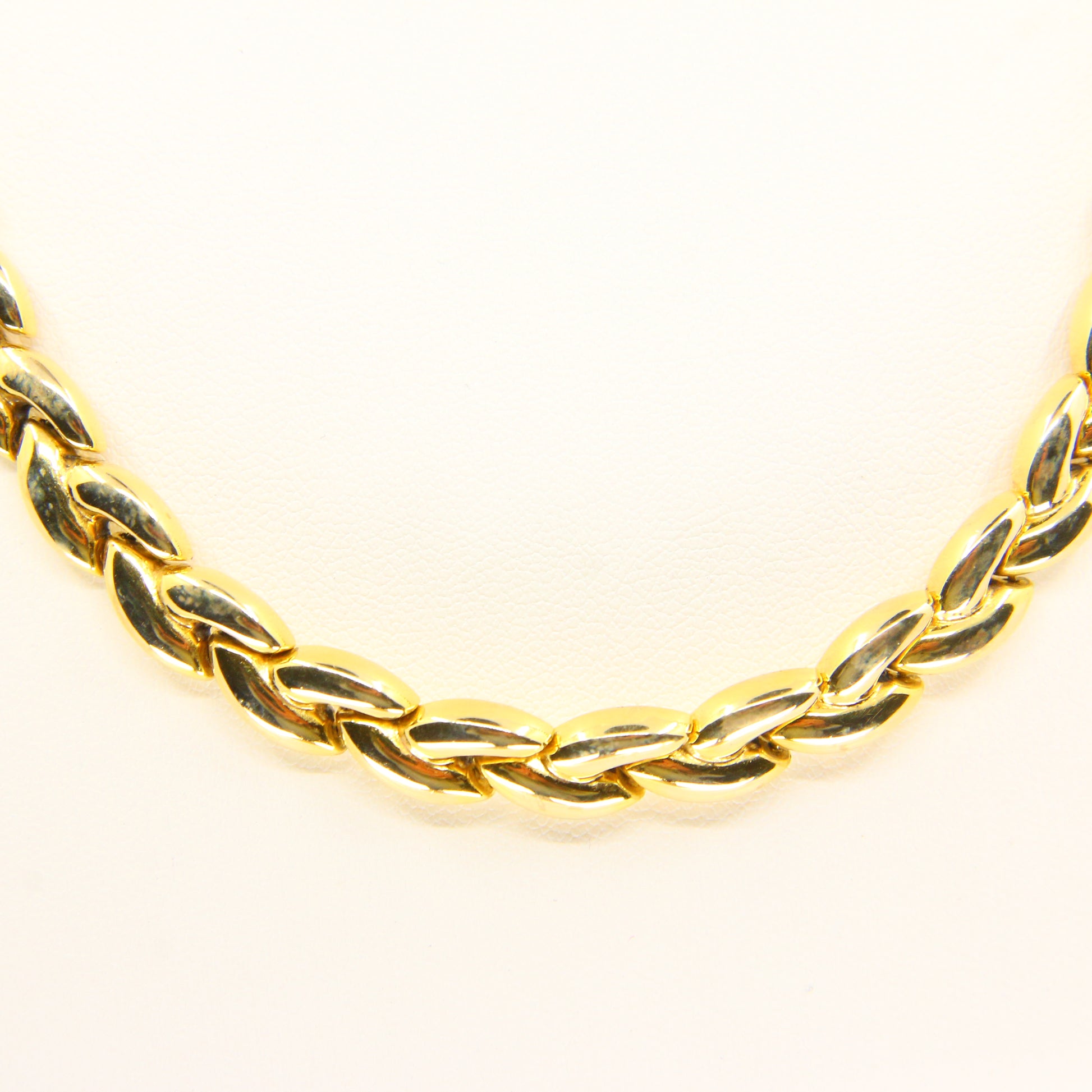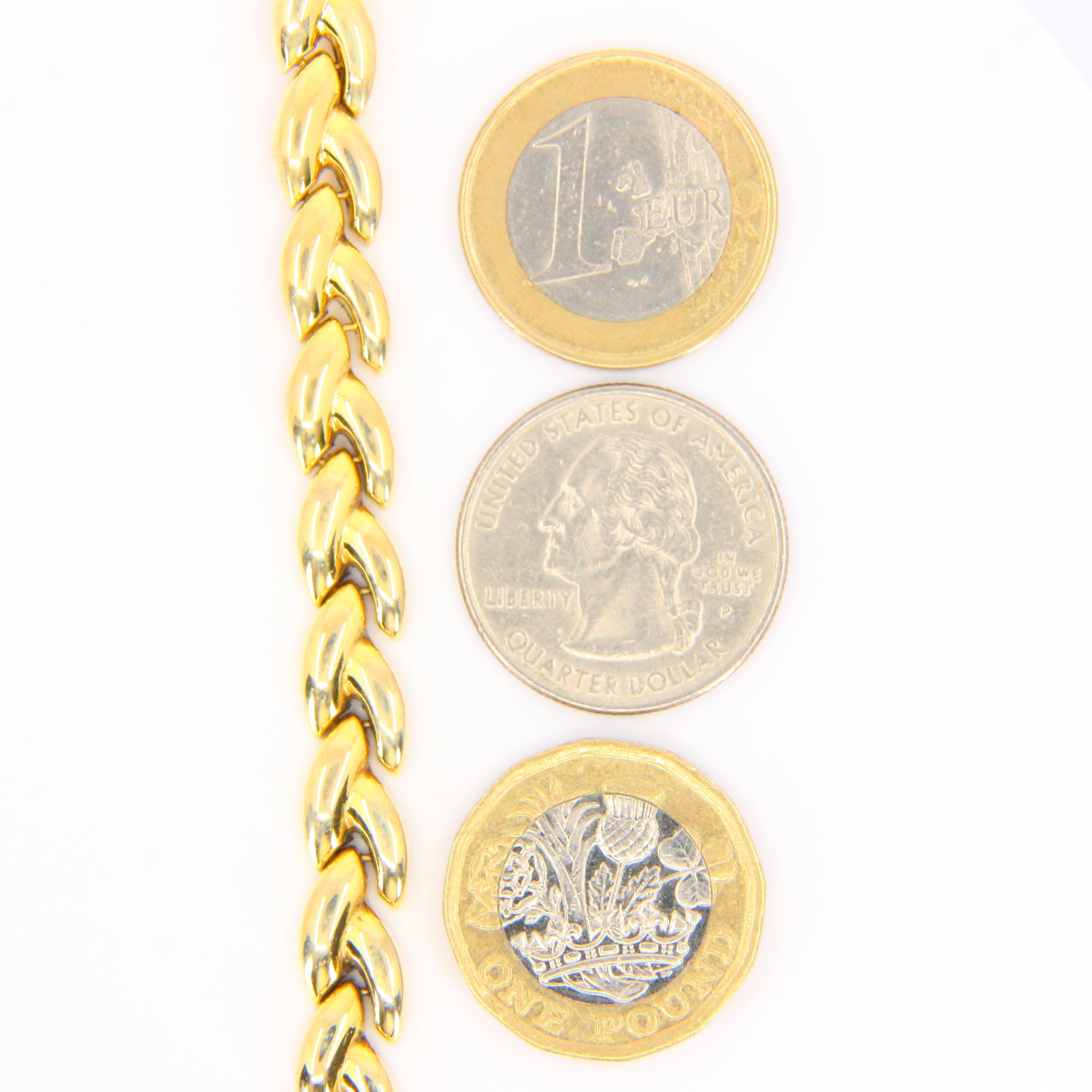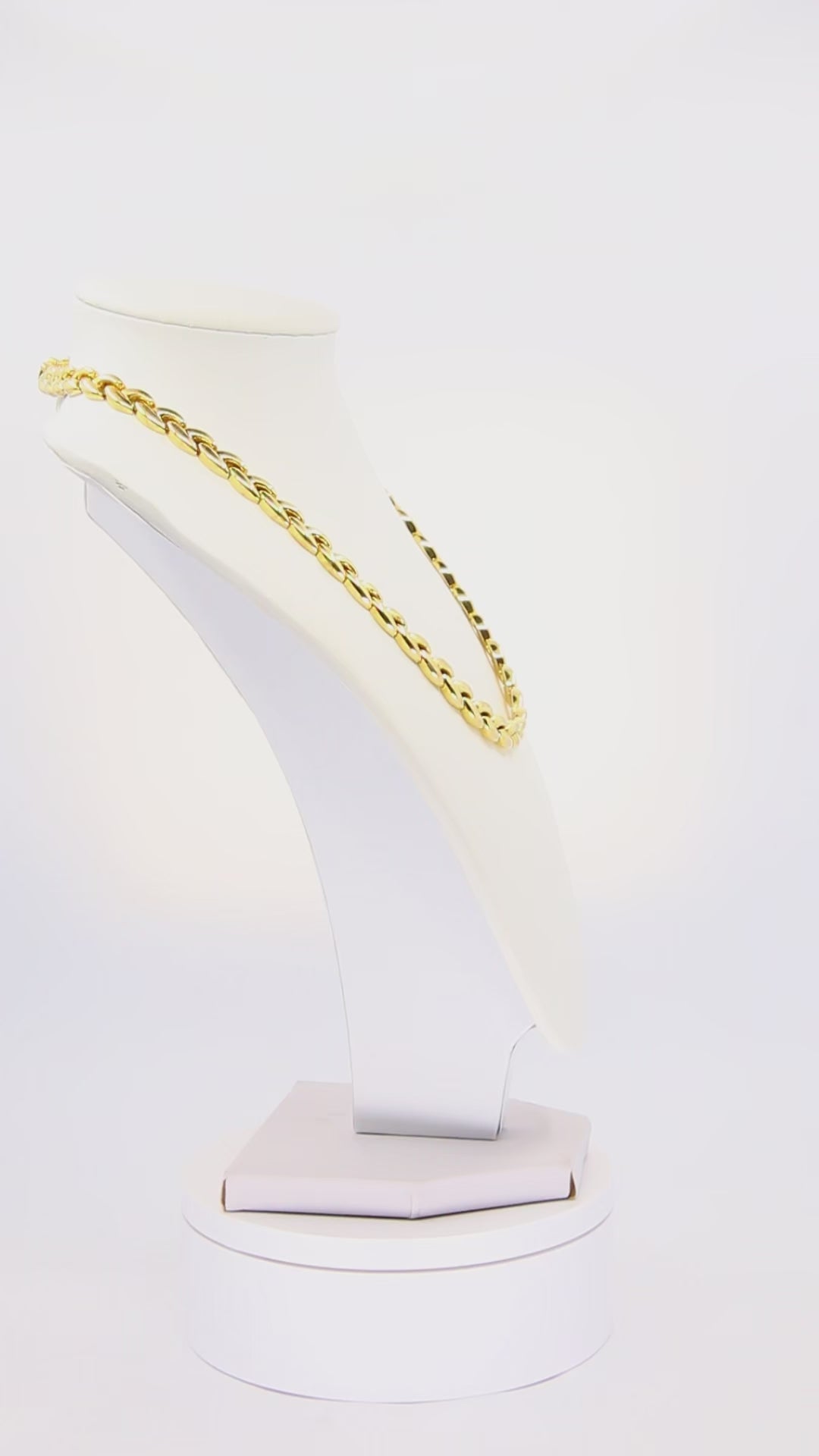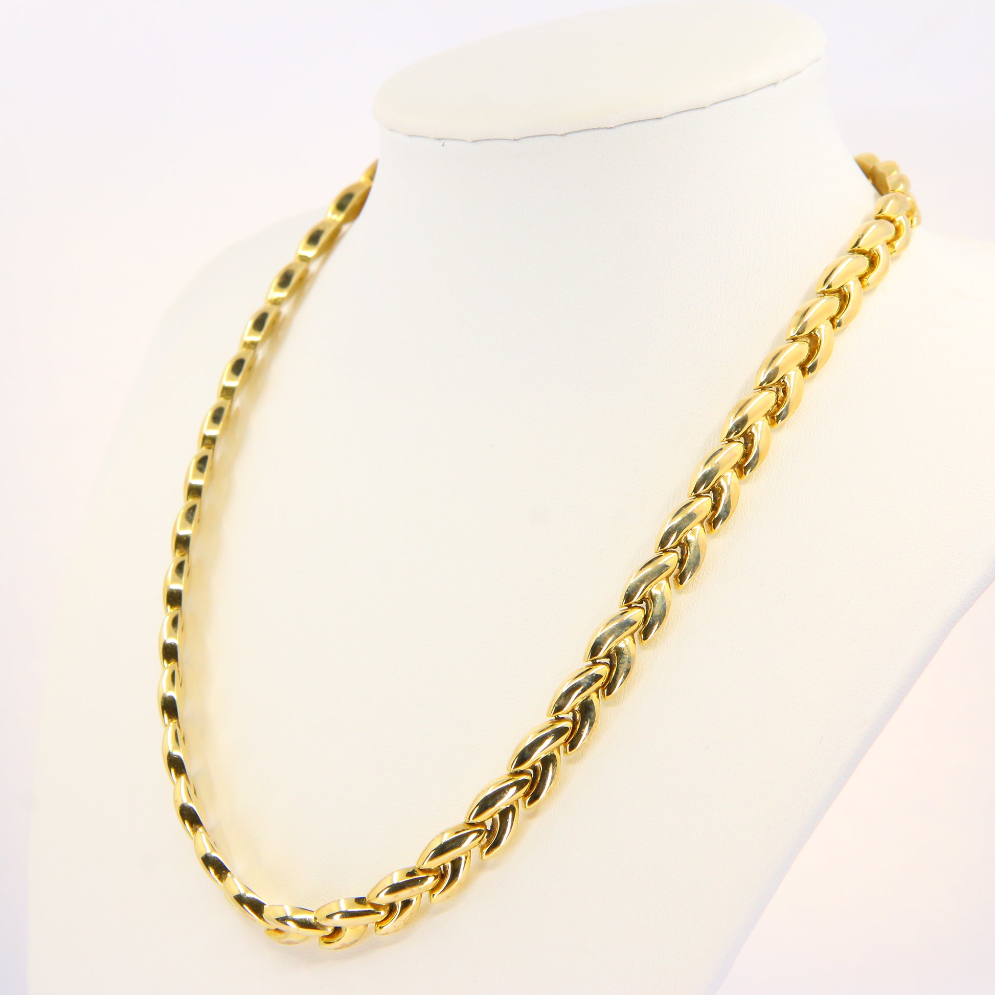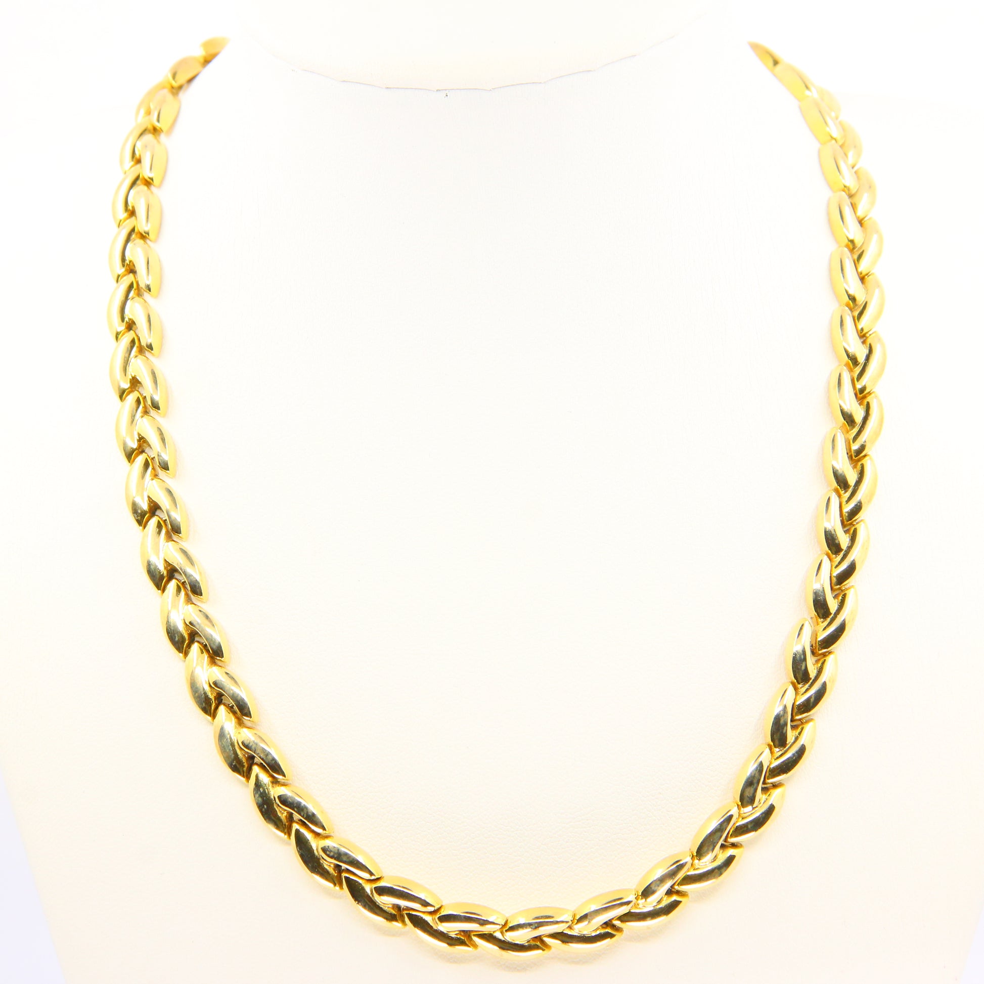 A nice quality solid gold necklace 17.25 inch long (closed). Italian made necklace with a British import hallmark. The hallmark on the inside of the clasp. The clasp fitted with a safety catch. A perfect gift or addition to any collection.