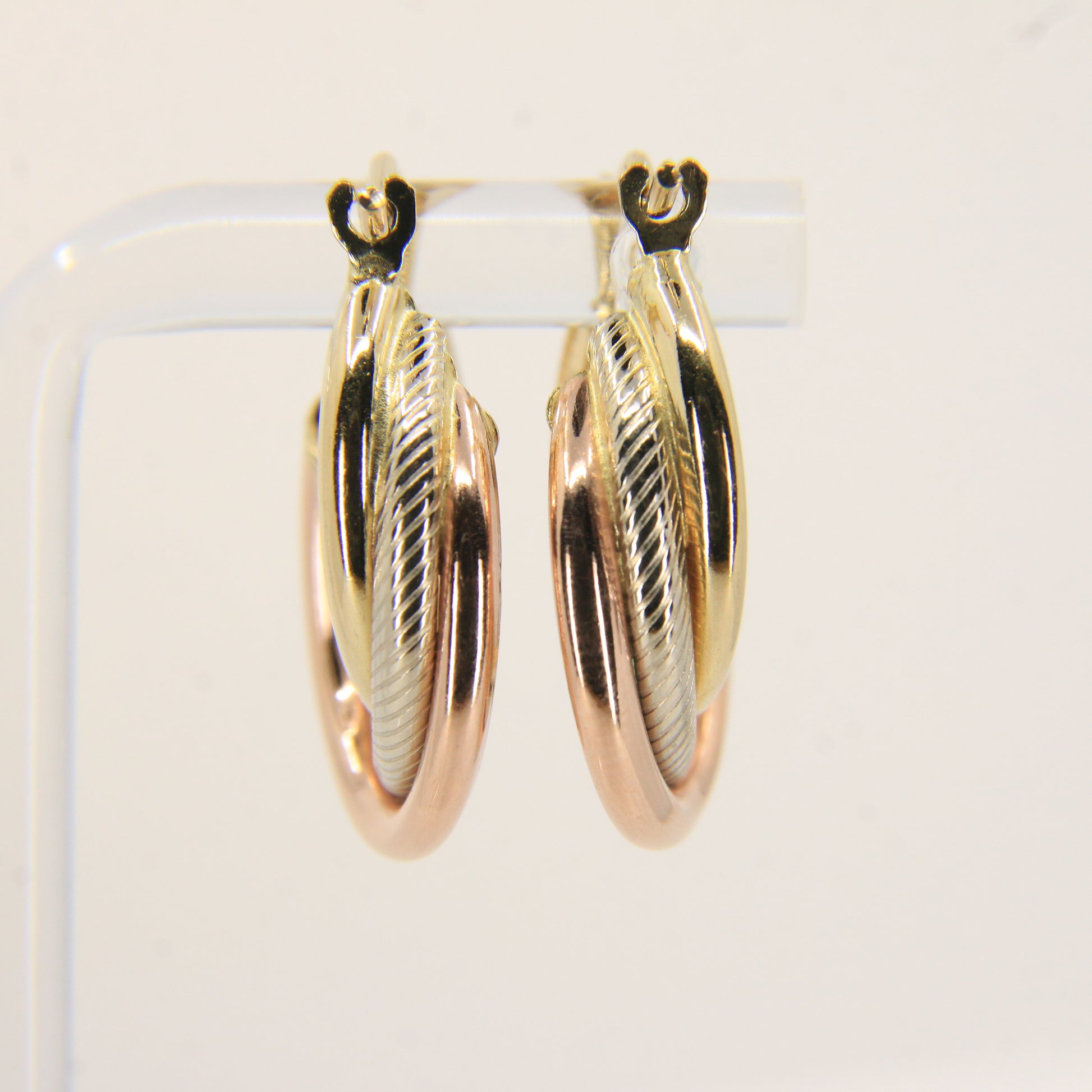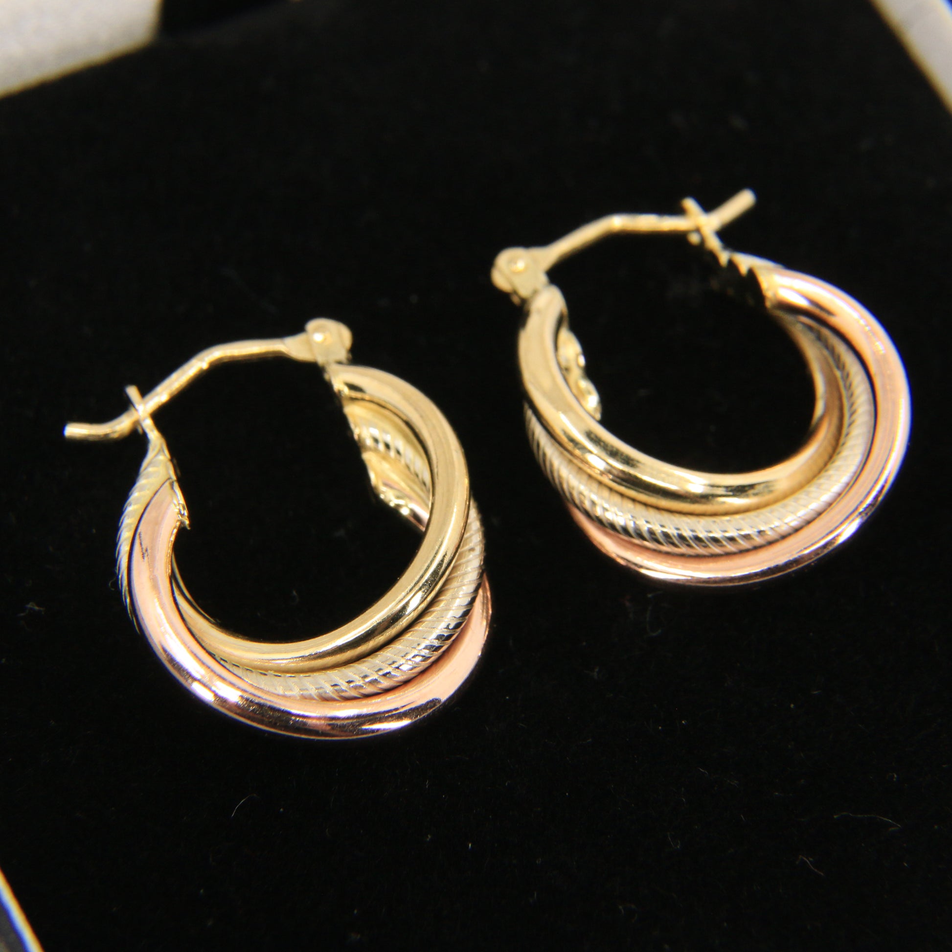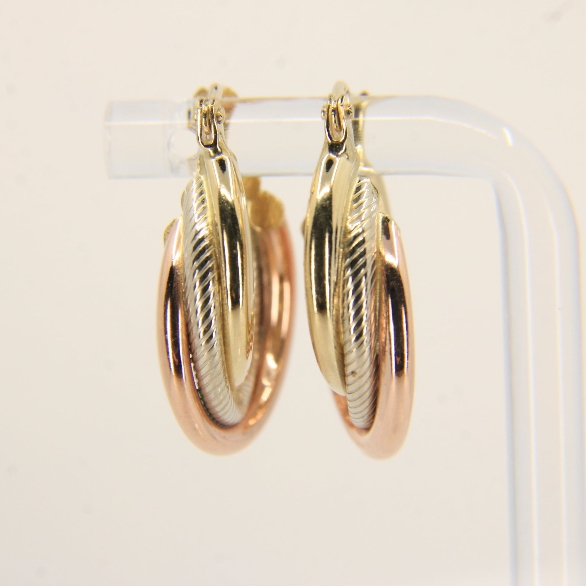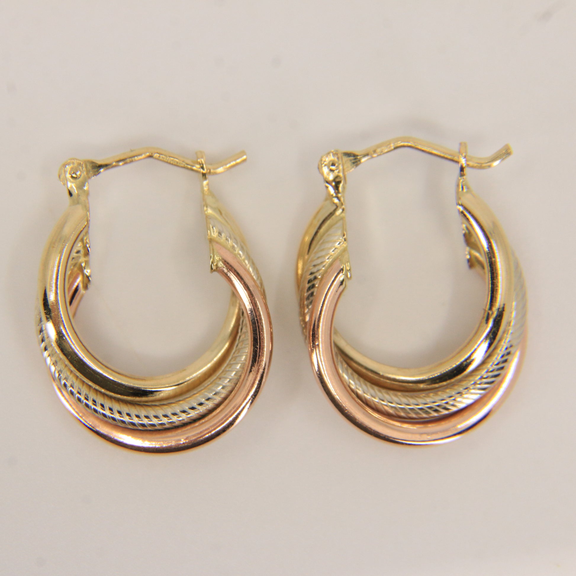 Vintage 9ct Gold Russian Style 3 Tone Hoop Earrings Hallmarked