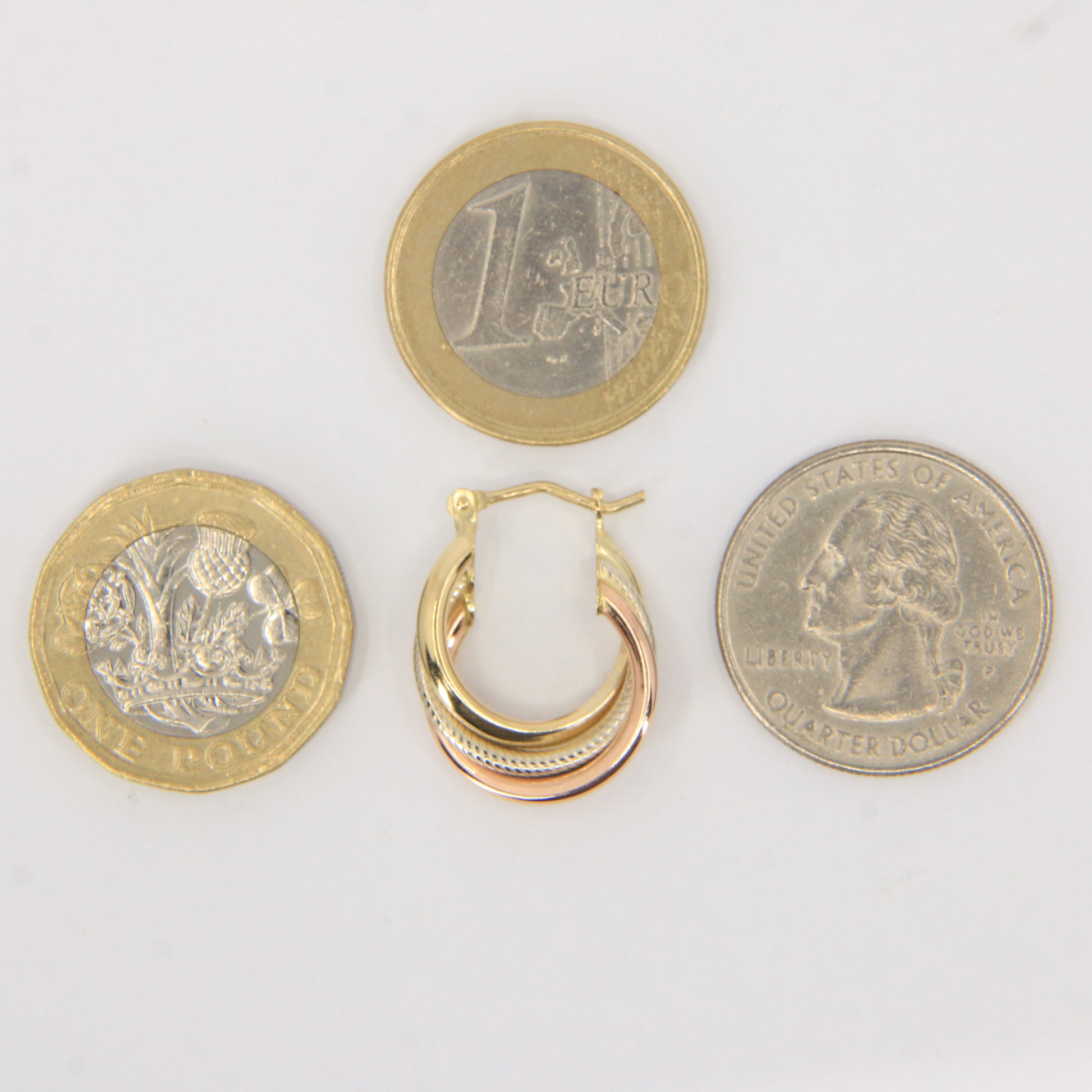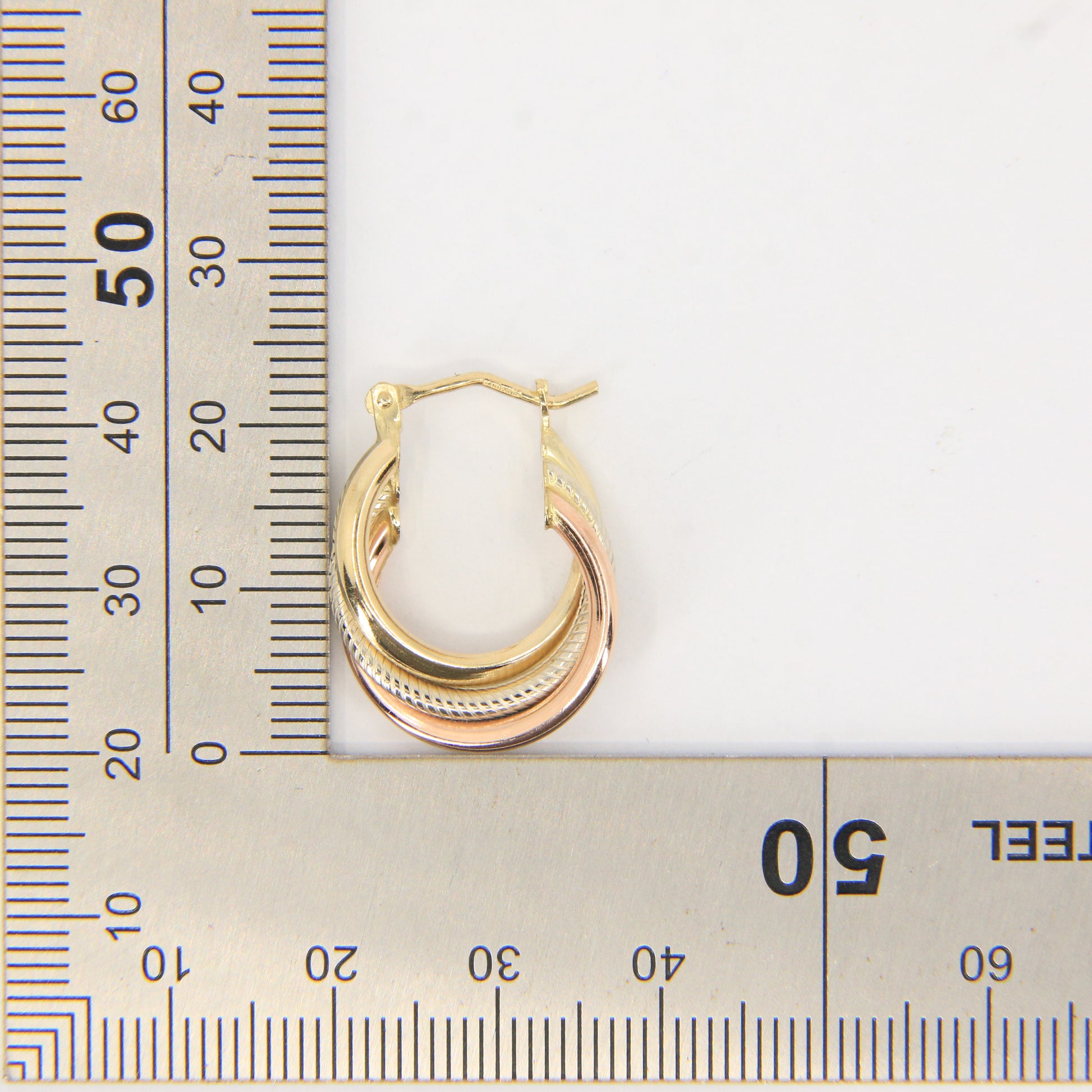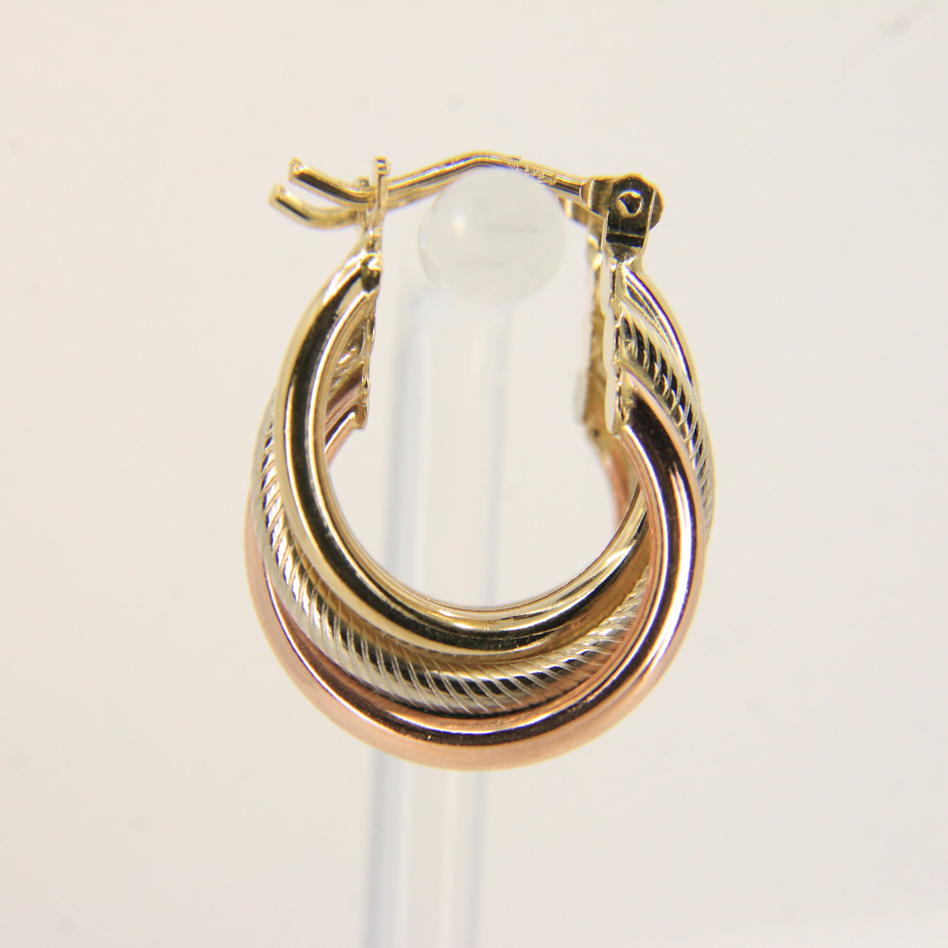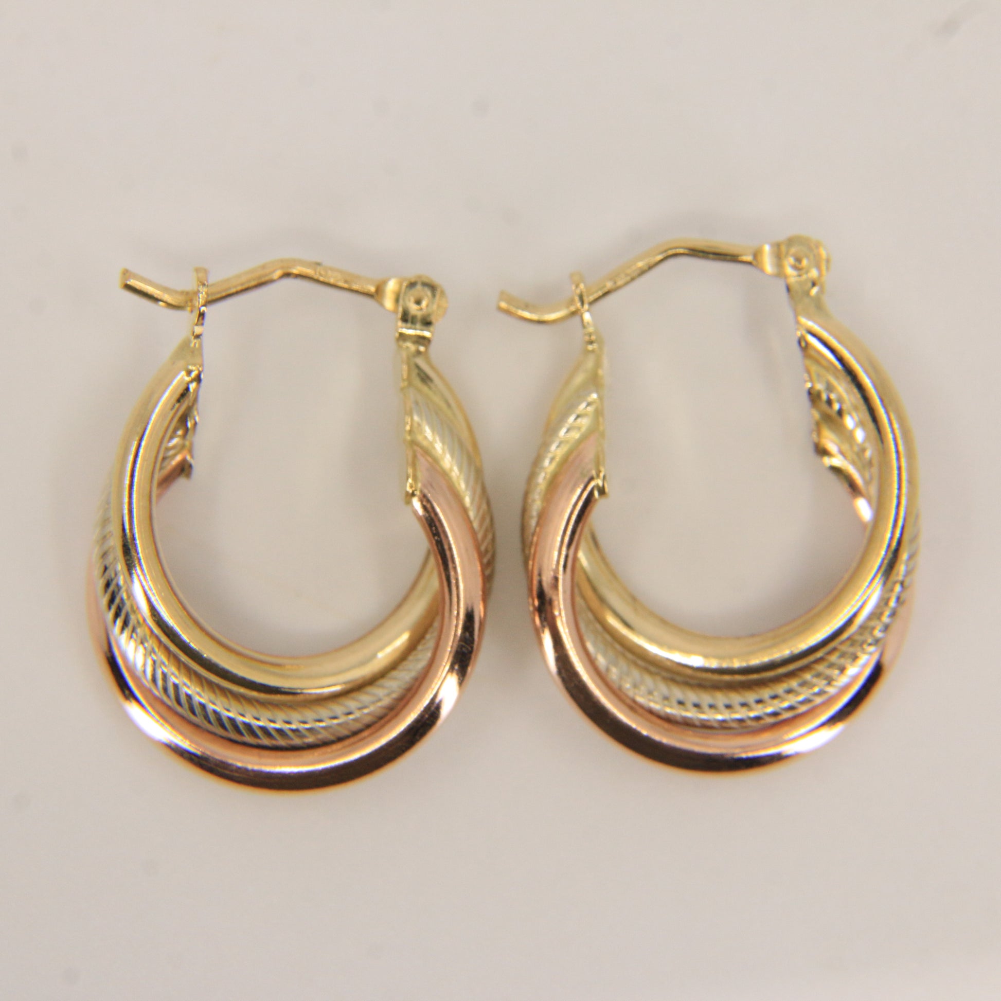 Vintage 9ct Gold Russian Style 3 Tone Hoop Earrings Hallmarked