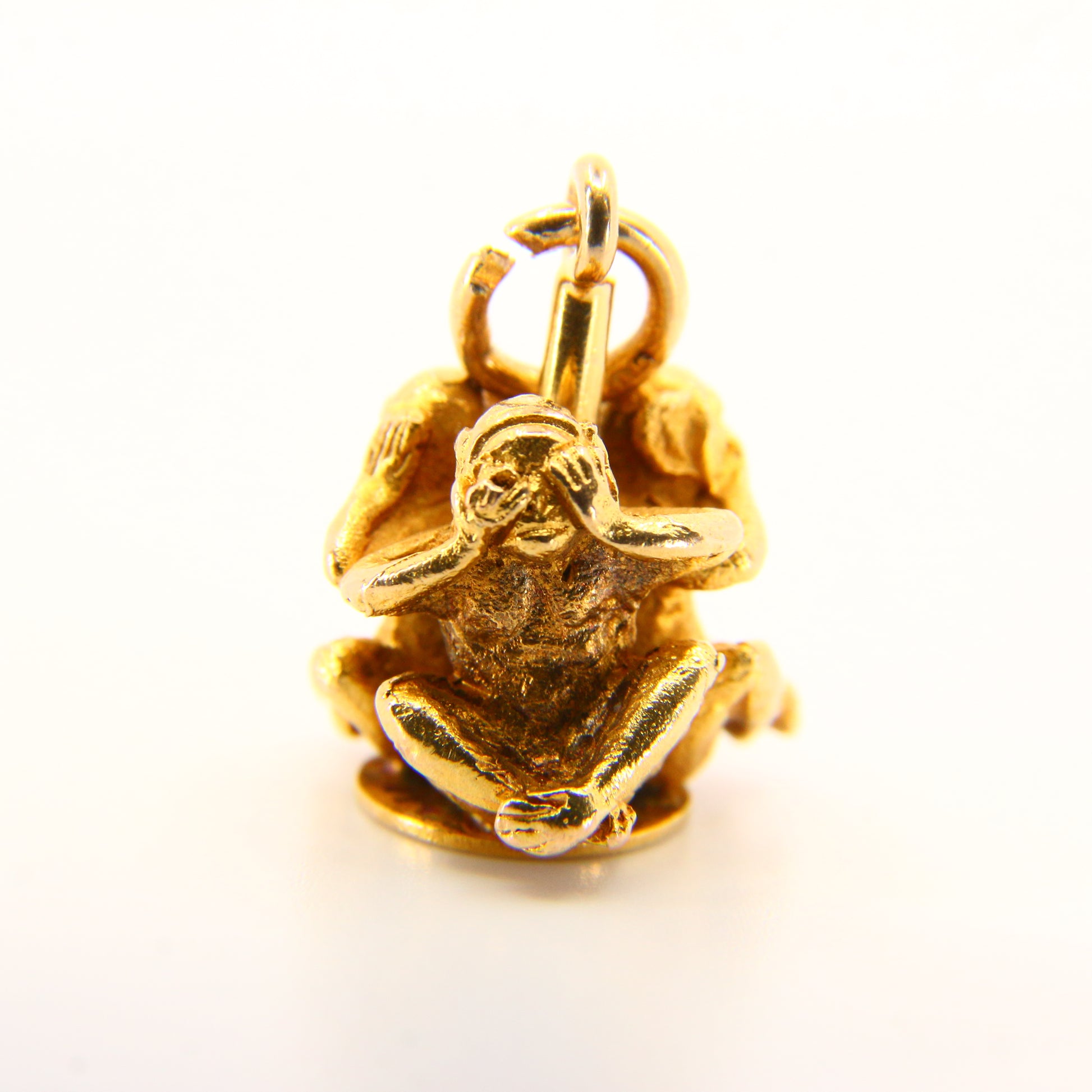 Vintage 9ct Gold Wise Monkeys Charm – Solid Hallmarked Pendant Gift