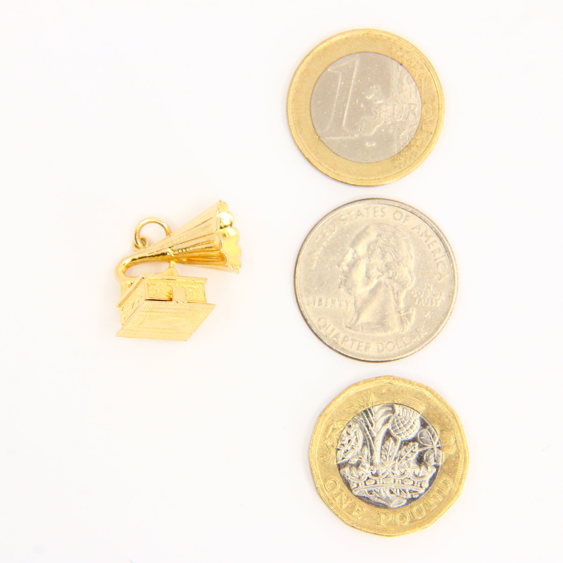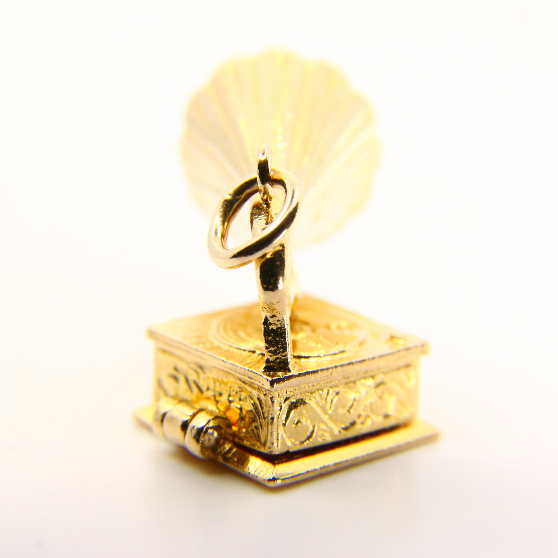 Vintage 9ct Gramophone Opening Charm Yellow Gold Hallmarked Vinyl Music Pendant