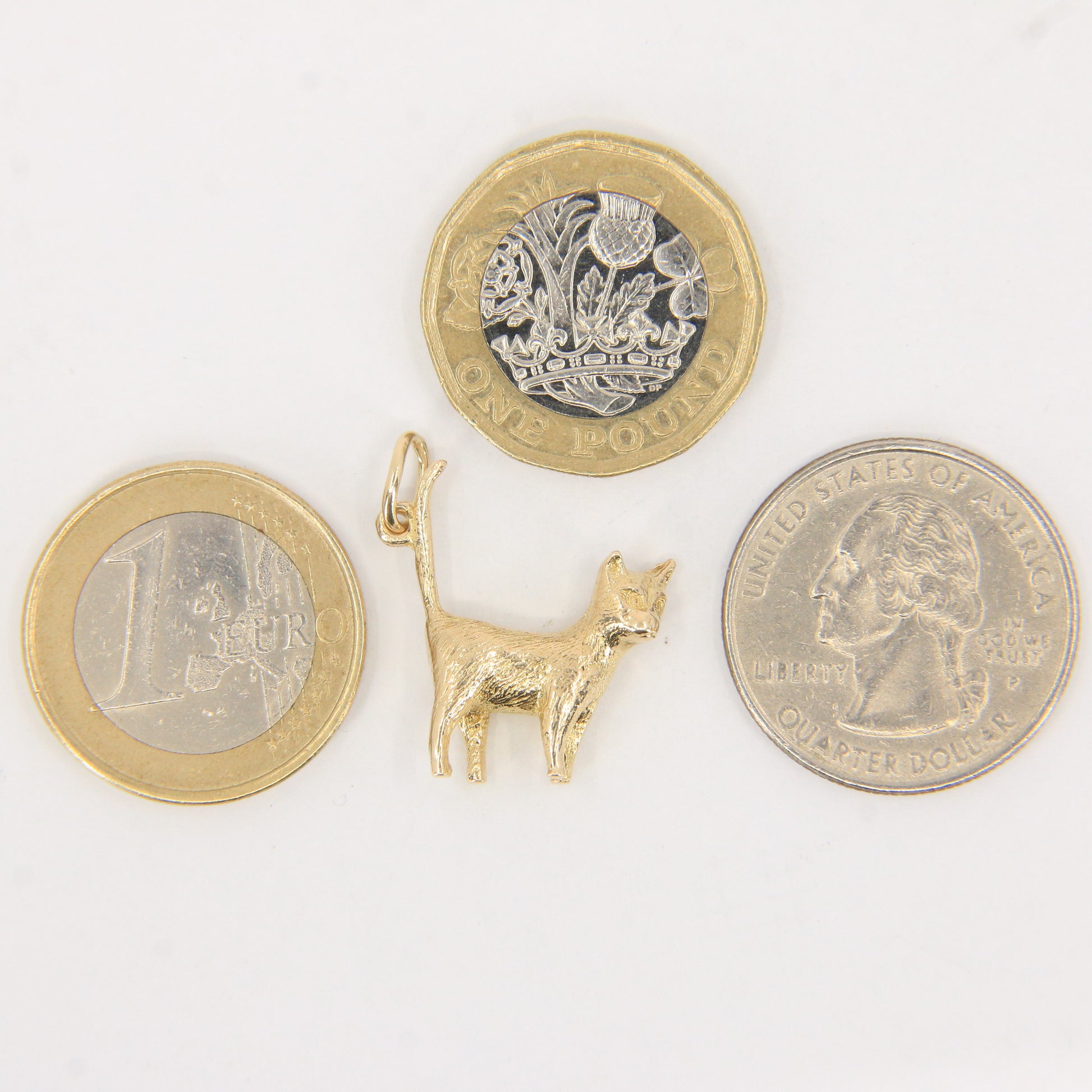 Vintage 9ct Hallmarked Cat Charm Pendant Yellow Gold Long Tailed Feline Gift