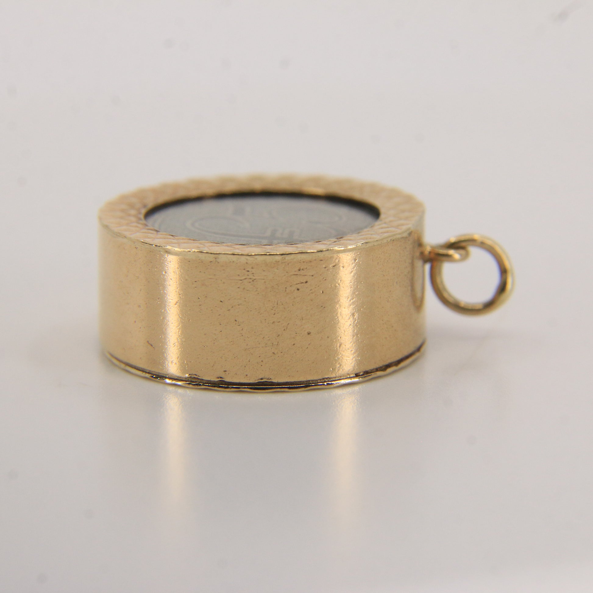 A rare and quirky vintage 9ct gold charm pendant containing a real £5 currency note, enclosed behind glass with decorative engraving. A fun collector’s piece symbolising luck and prosperity — great for a charm bracelet or necklace. A perfect gift or addition to any collection.