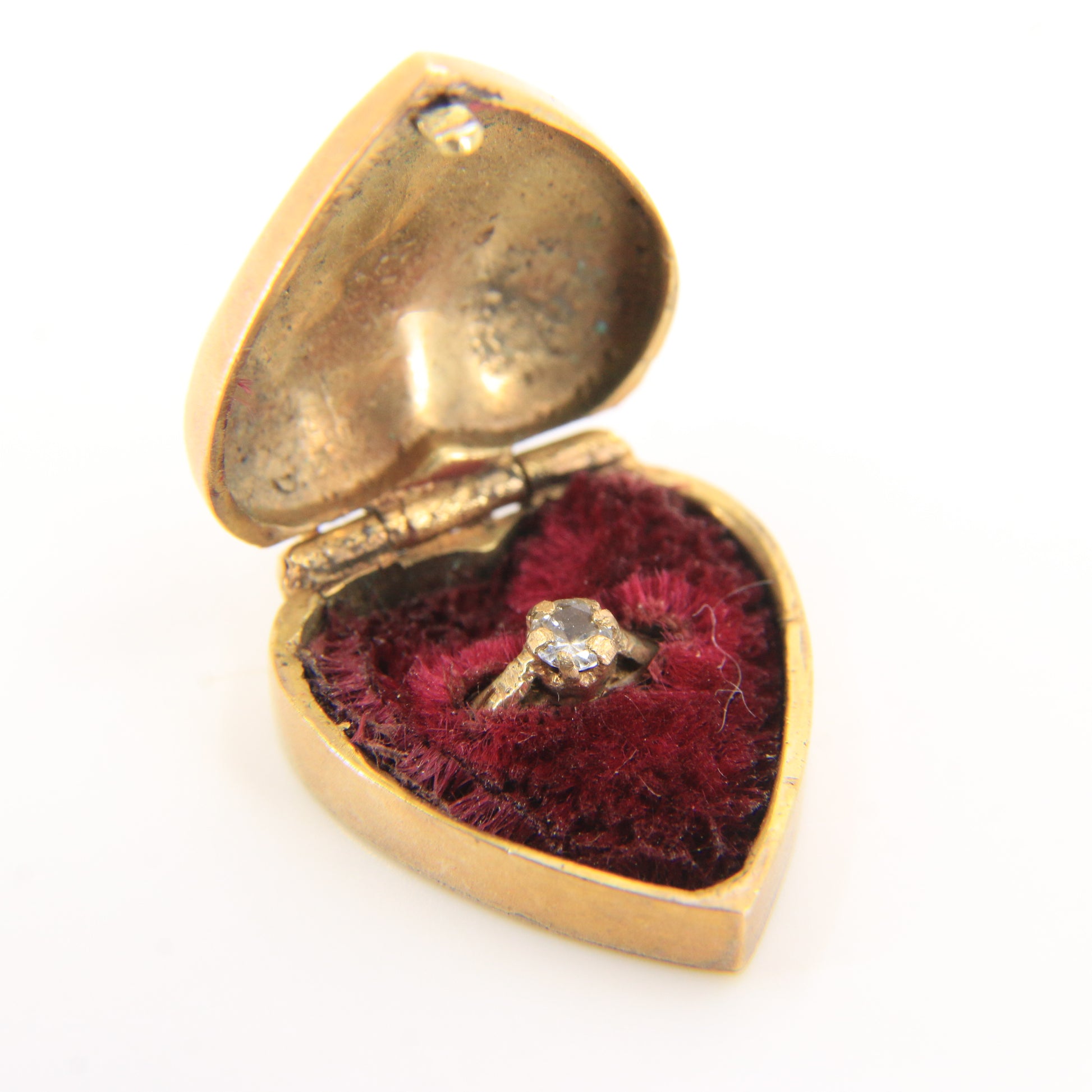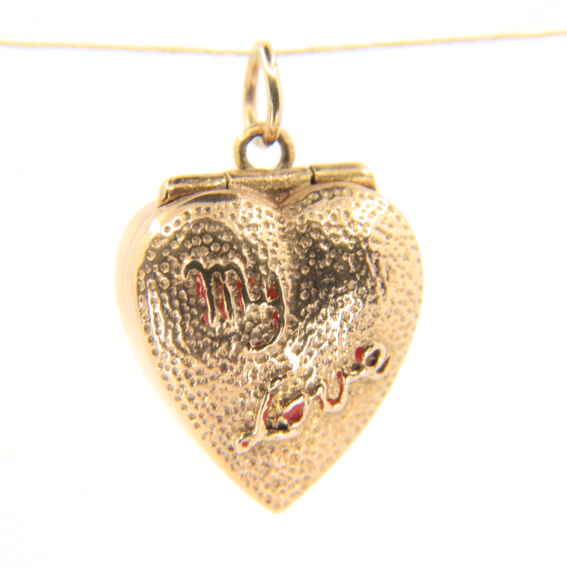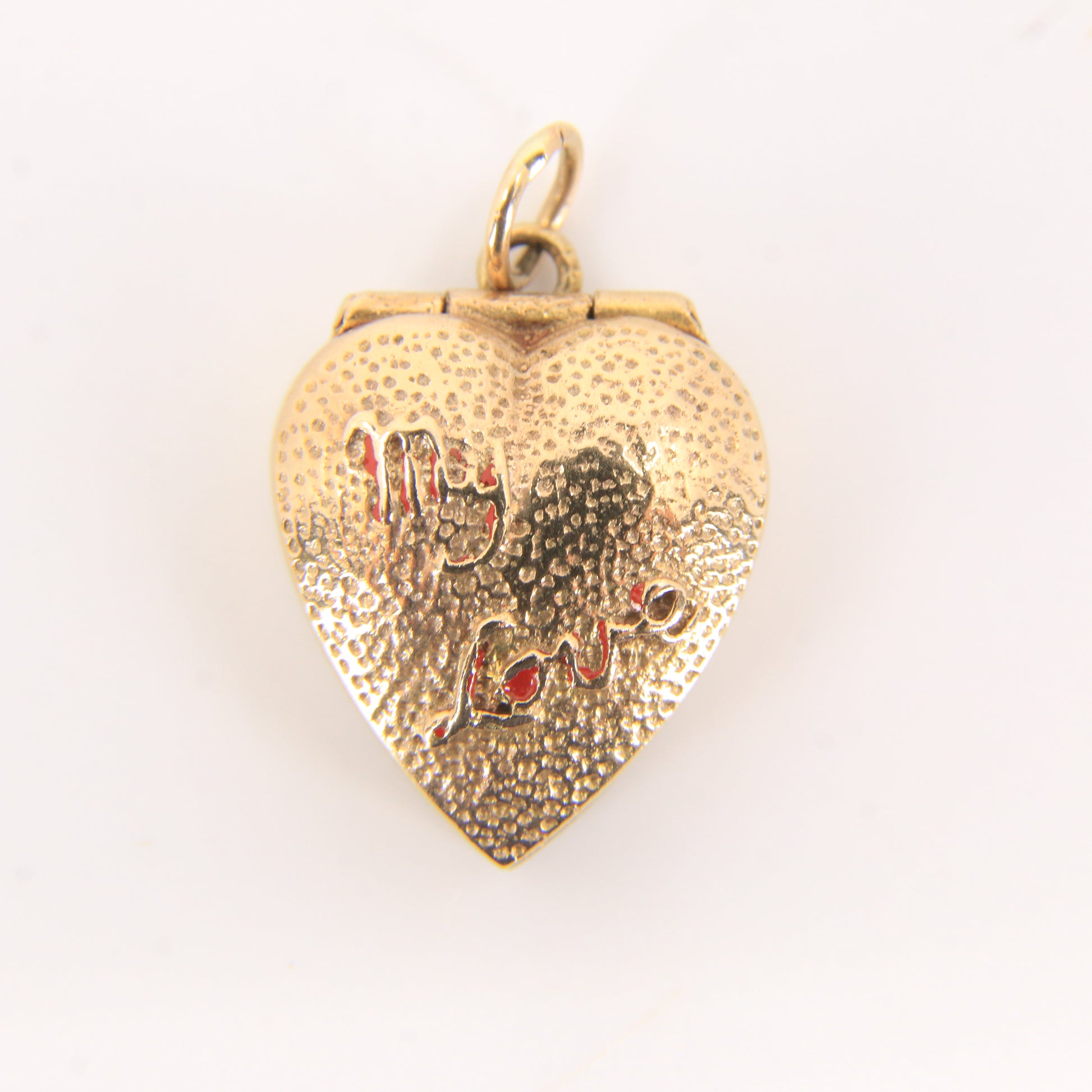 Charming vintage 9ct hallmarked heart-shaped gold charm that opens to reveal a CZ ring and "My Love" inscription on the outer box. A romantic, solid gold keepsake.