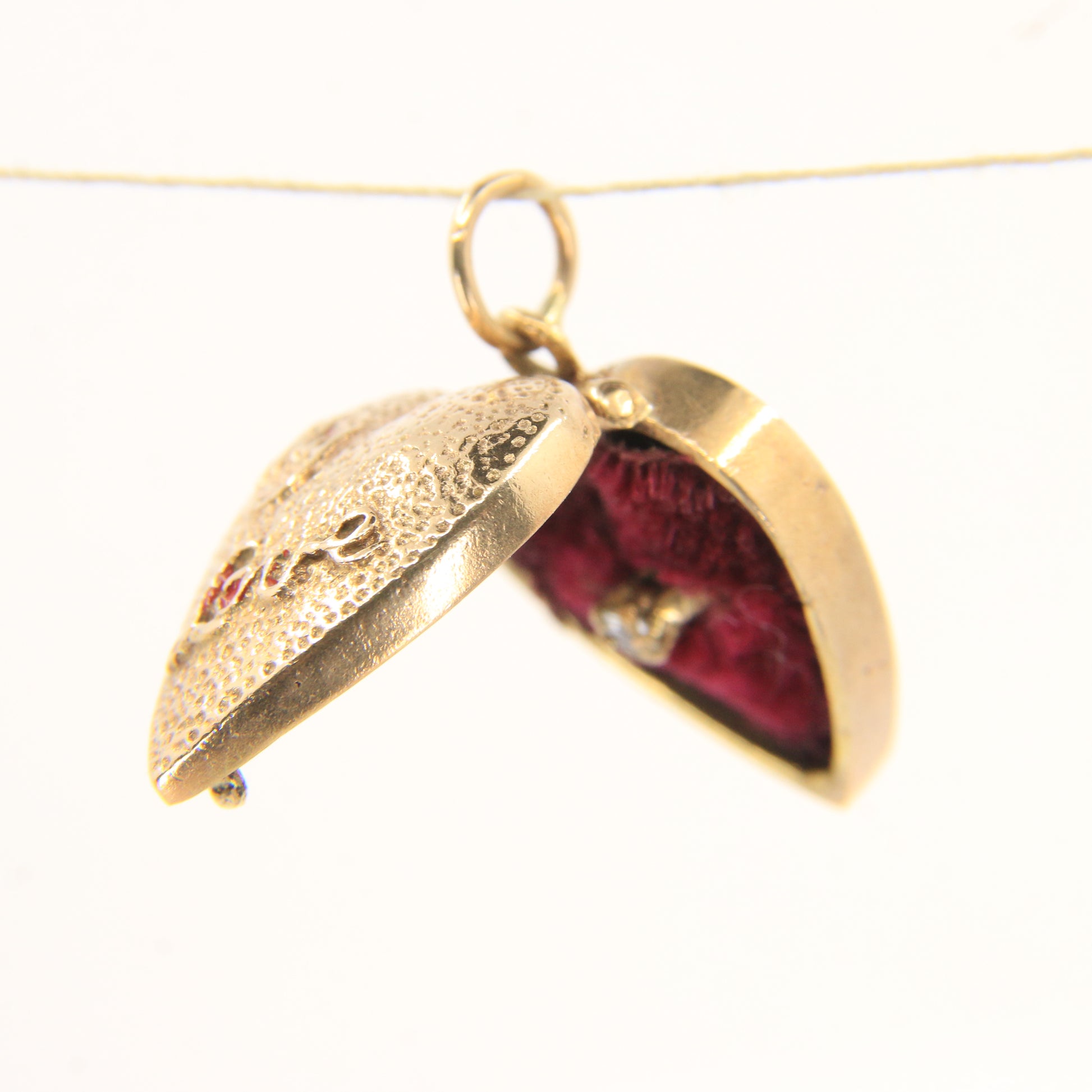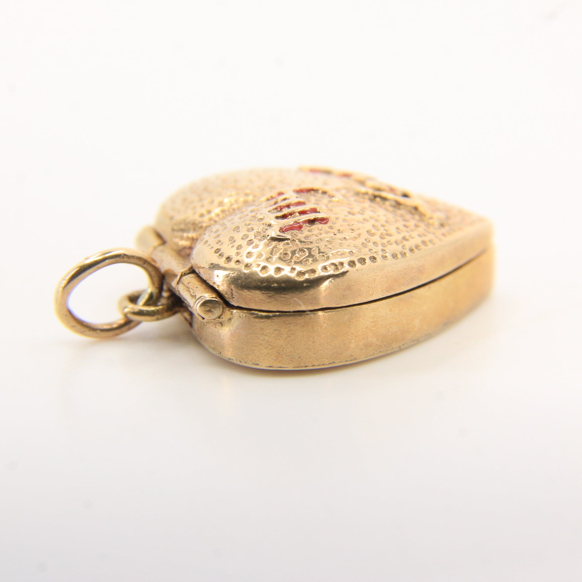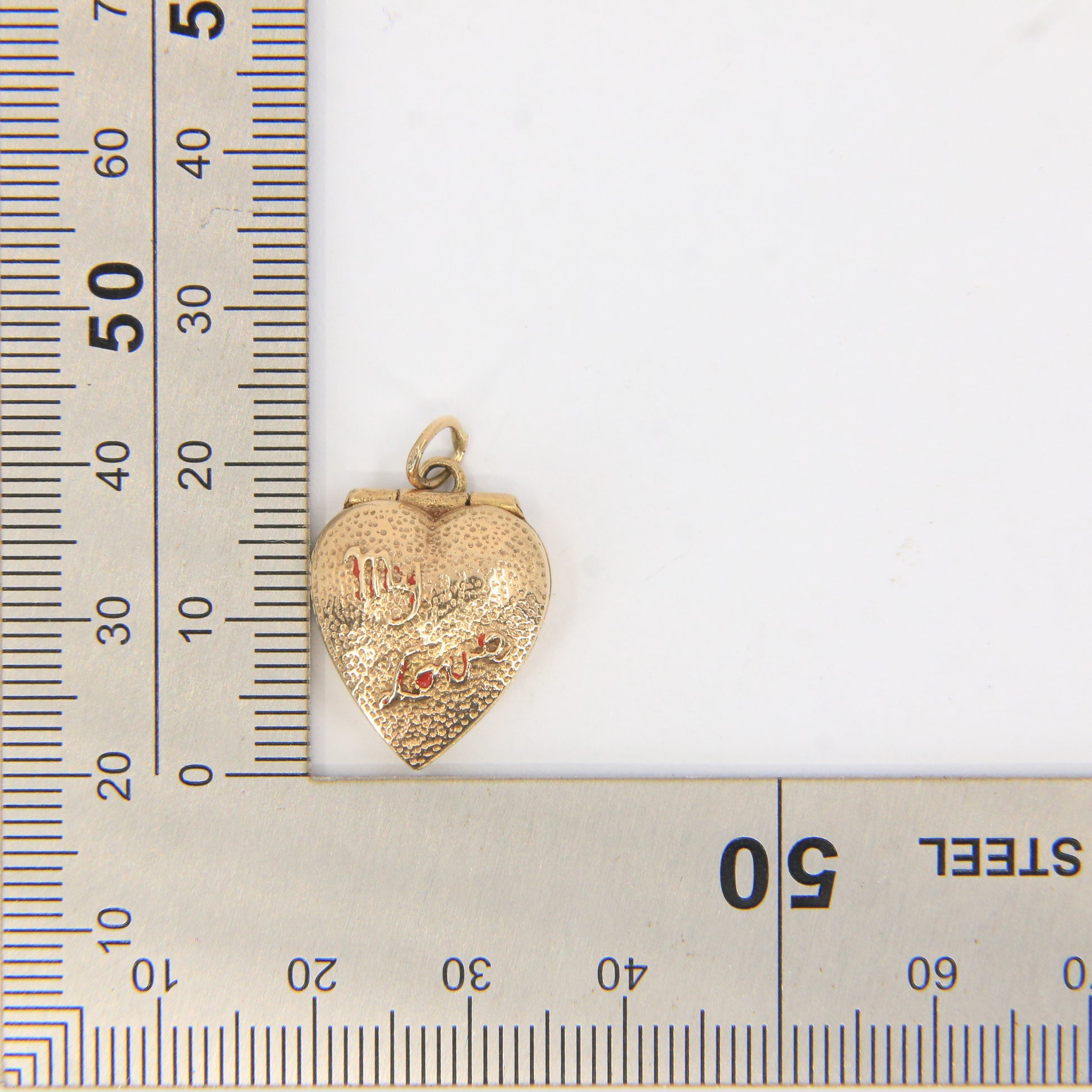 Charming vintage 9ct hallmarked heart-shaped gold charm that opens to reveal a CZ ring and "My Love" inscription on the outer box. A romantic, solid gold keepsake.