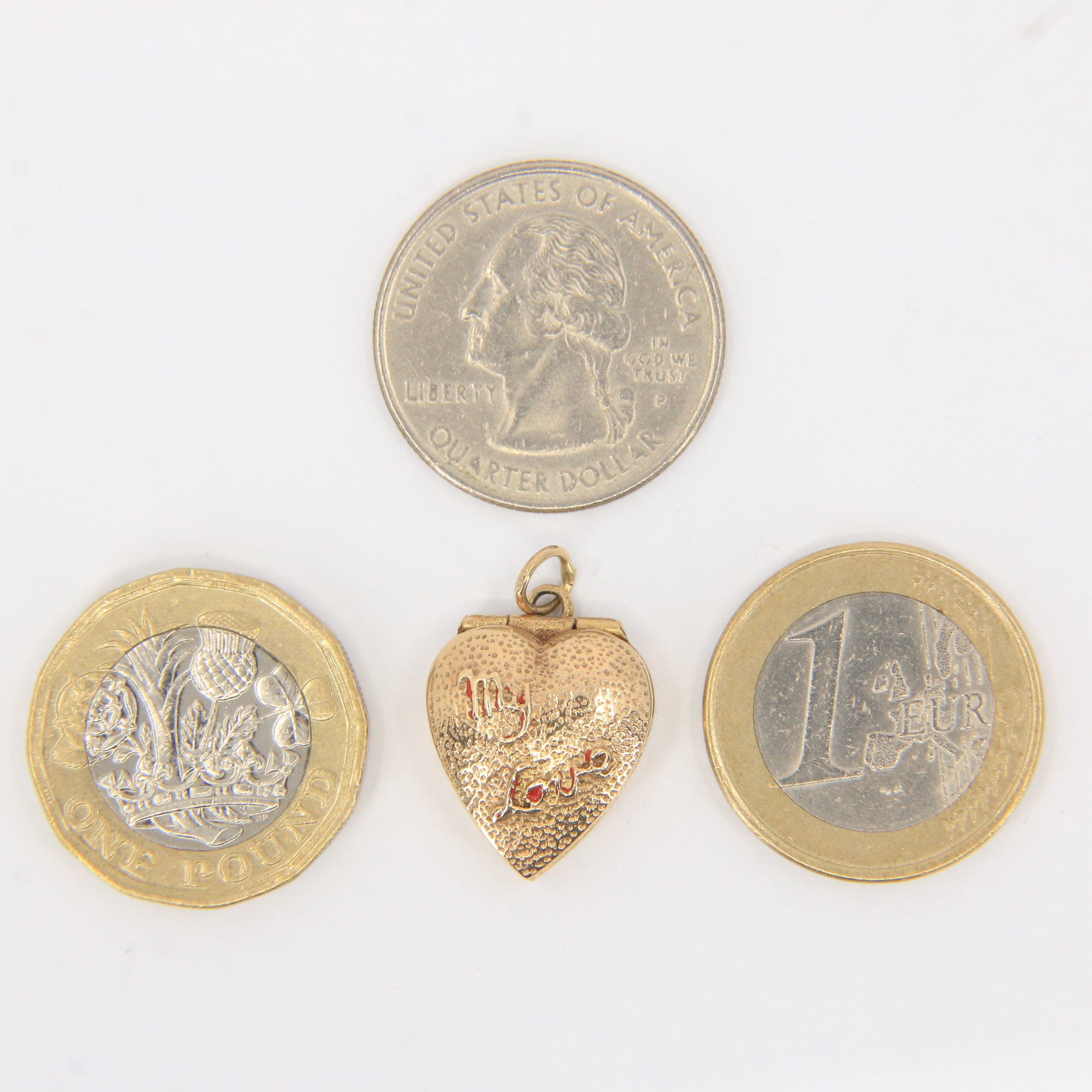 Vintage 9ct Hallmarked Gold Heart Charm – CZ Ring "My Love" Box