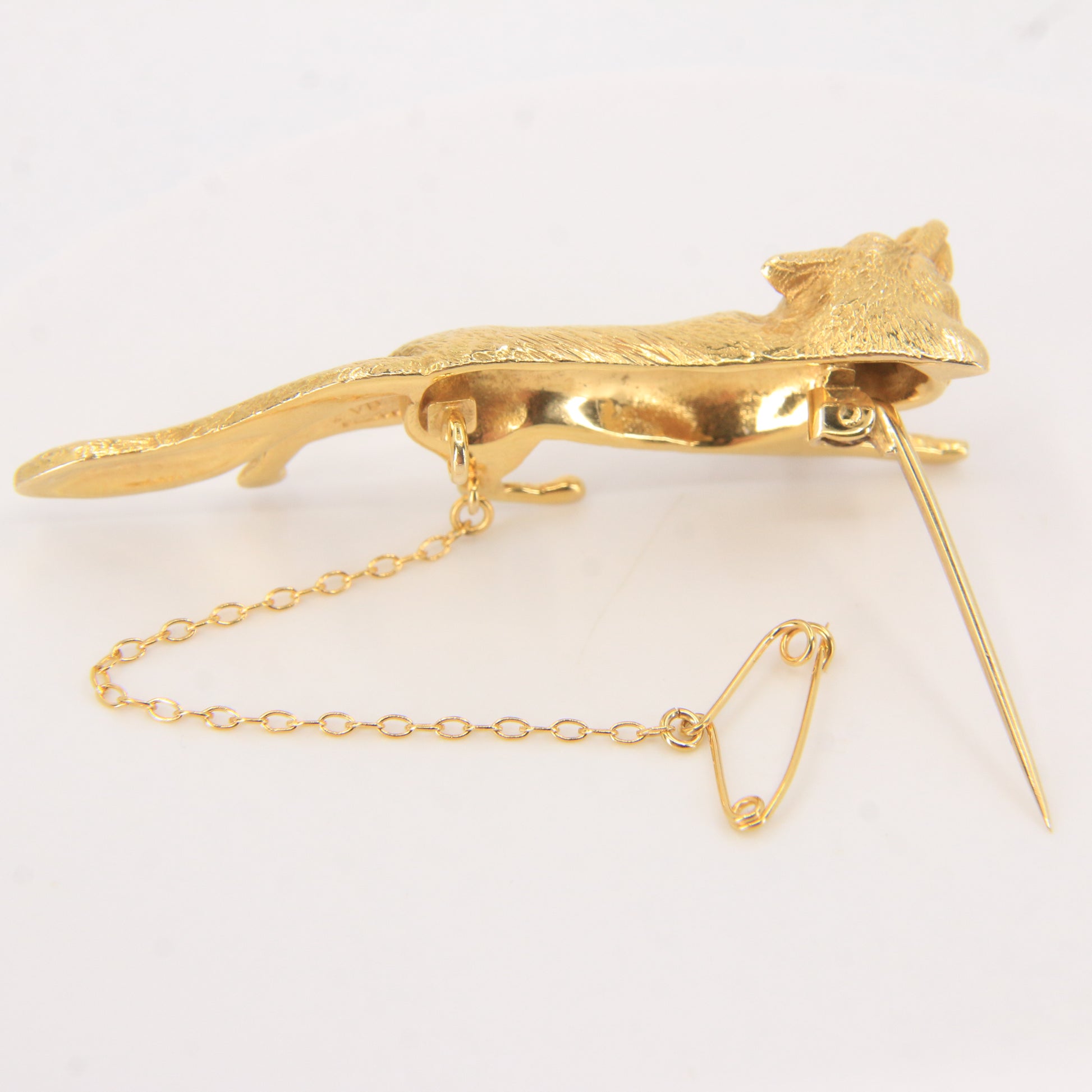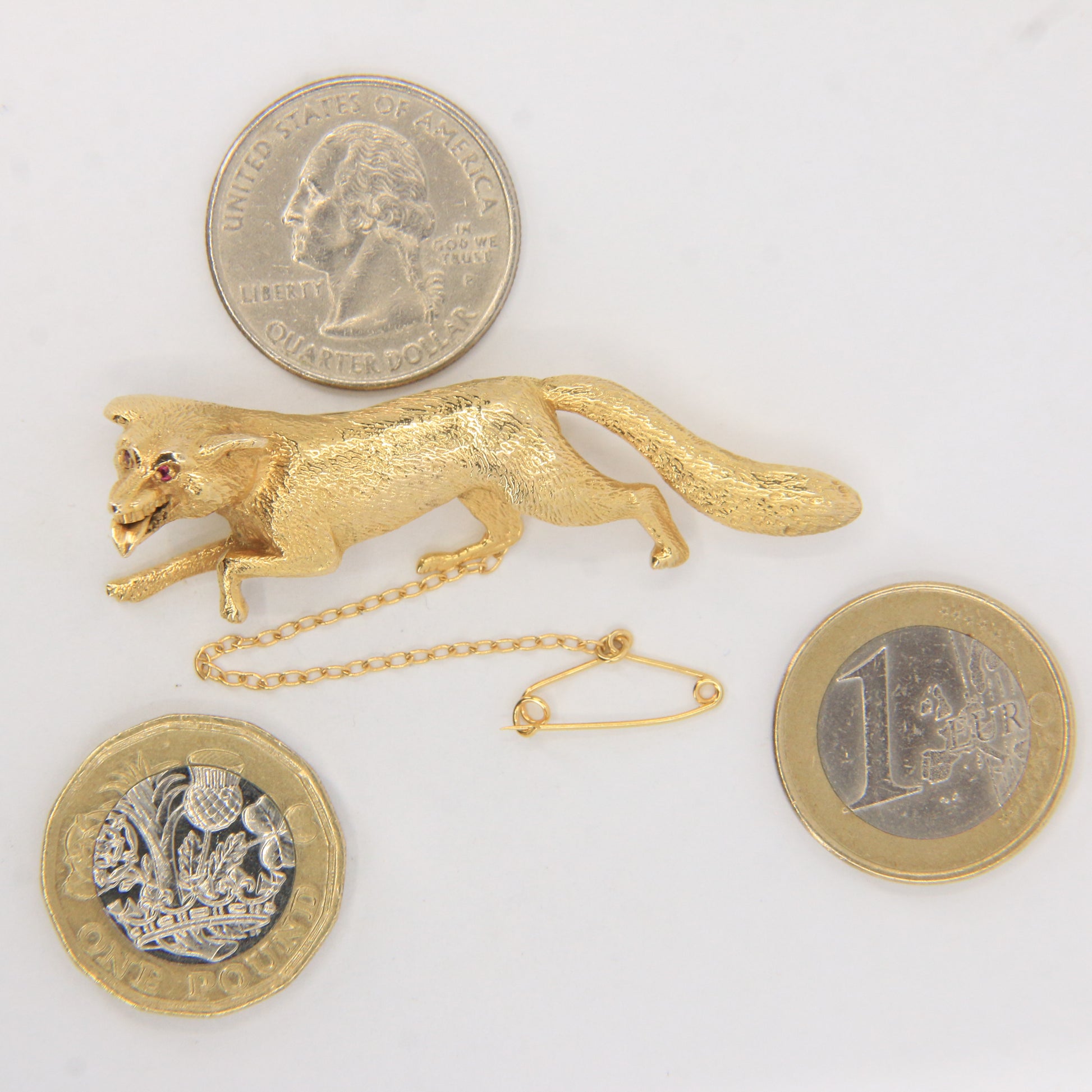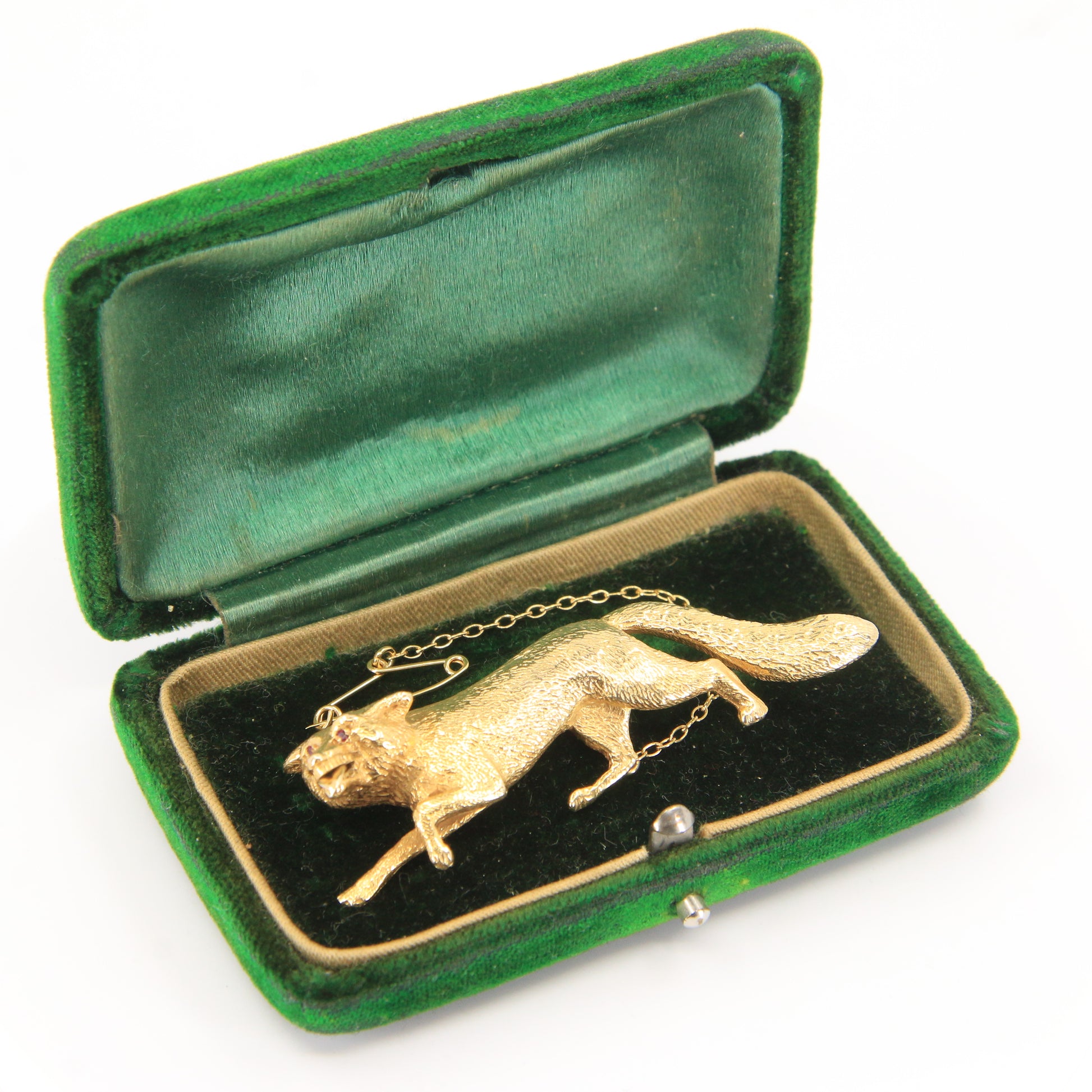 Vintage 9ct Hallmarked Gold Ruby Eyed Fox Brooch Wildlife Animal 1969 Boxed Gift