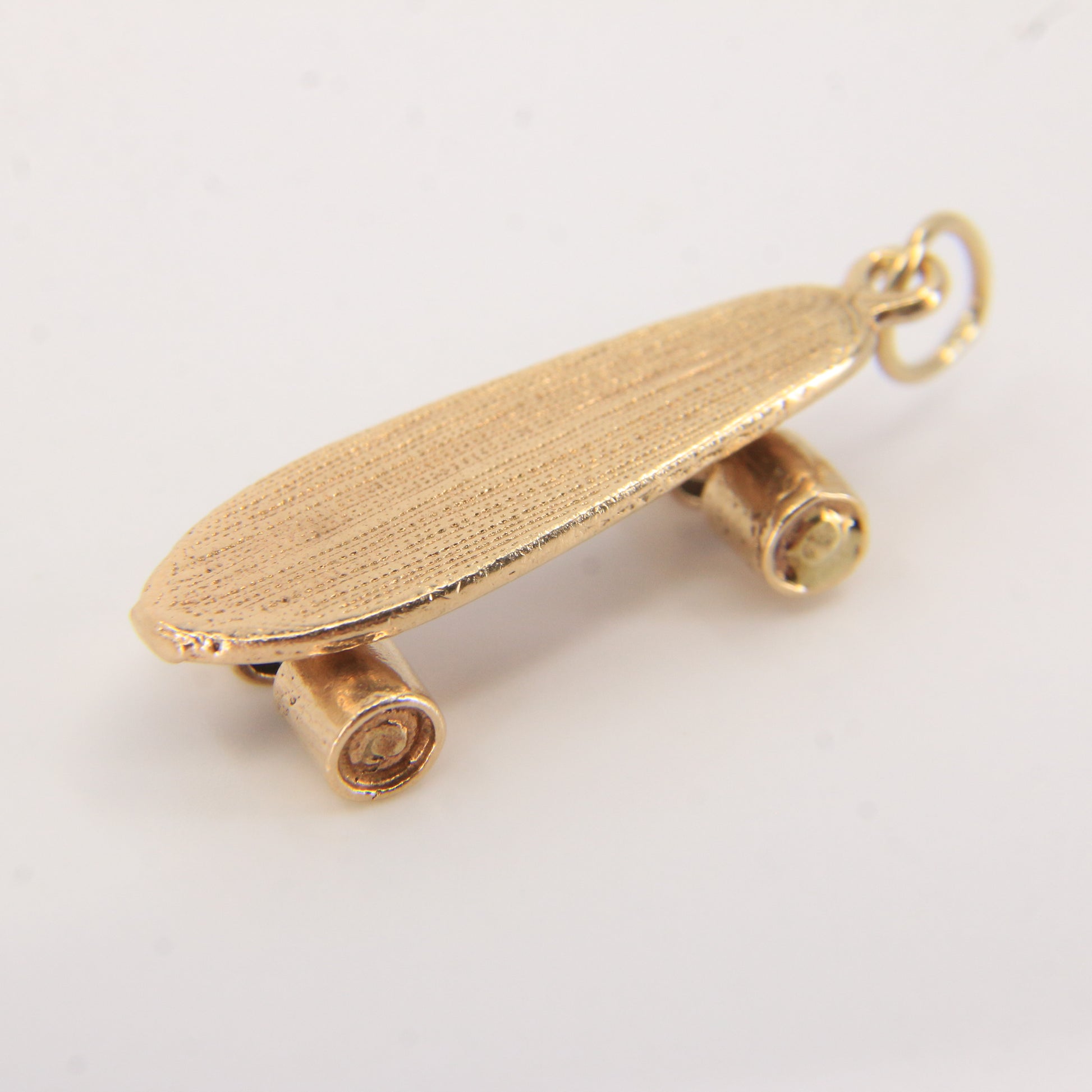 This vintage 9ct gold skateboard charm features an old-school deck design with great detail. A fun and collectible piece for skaters and charm lovers alike — add it to your collection today.