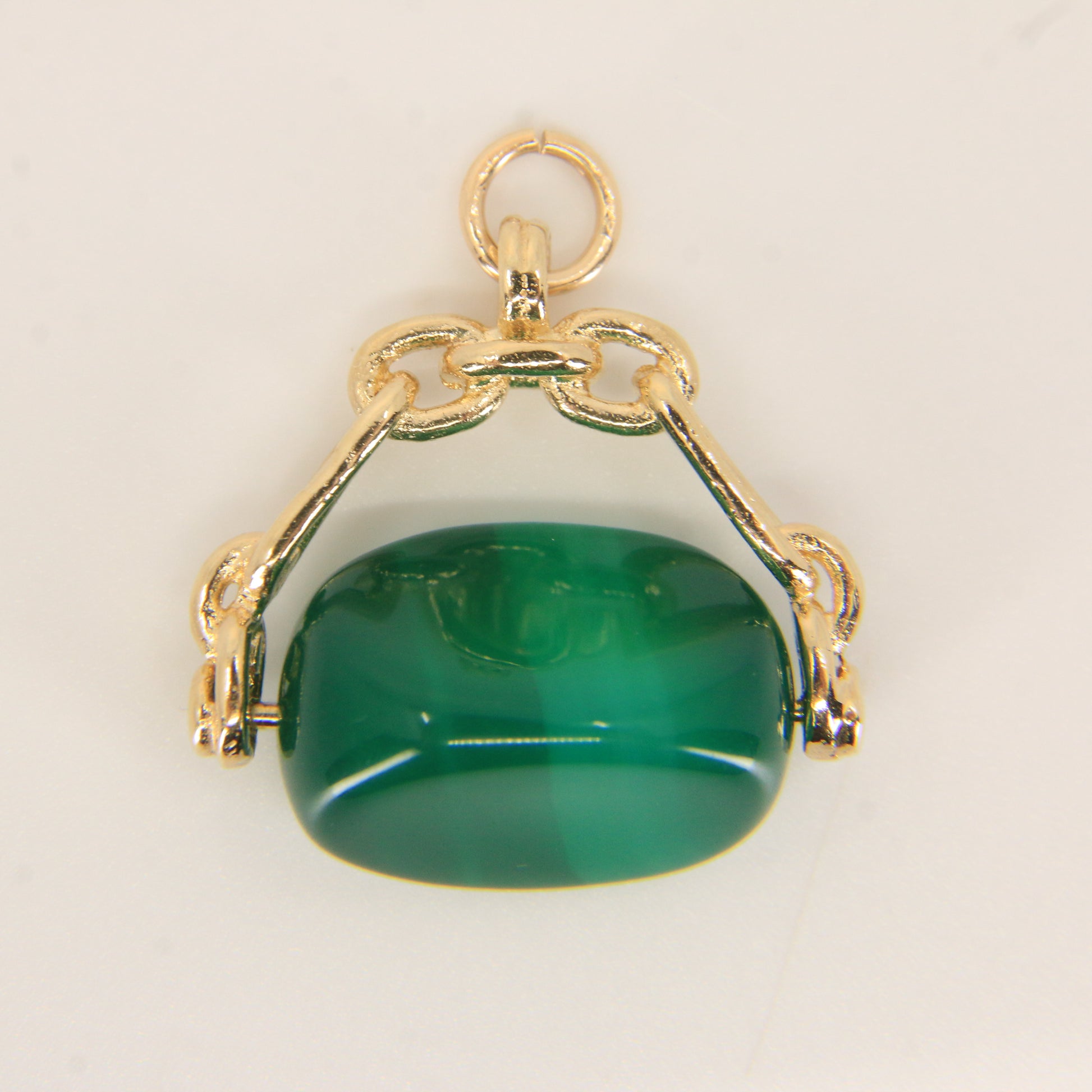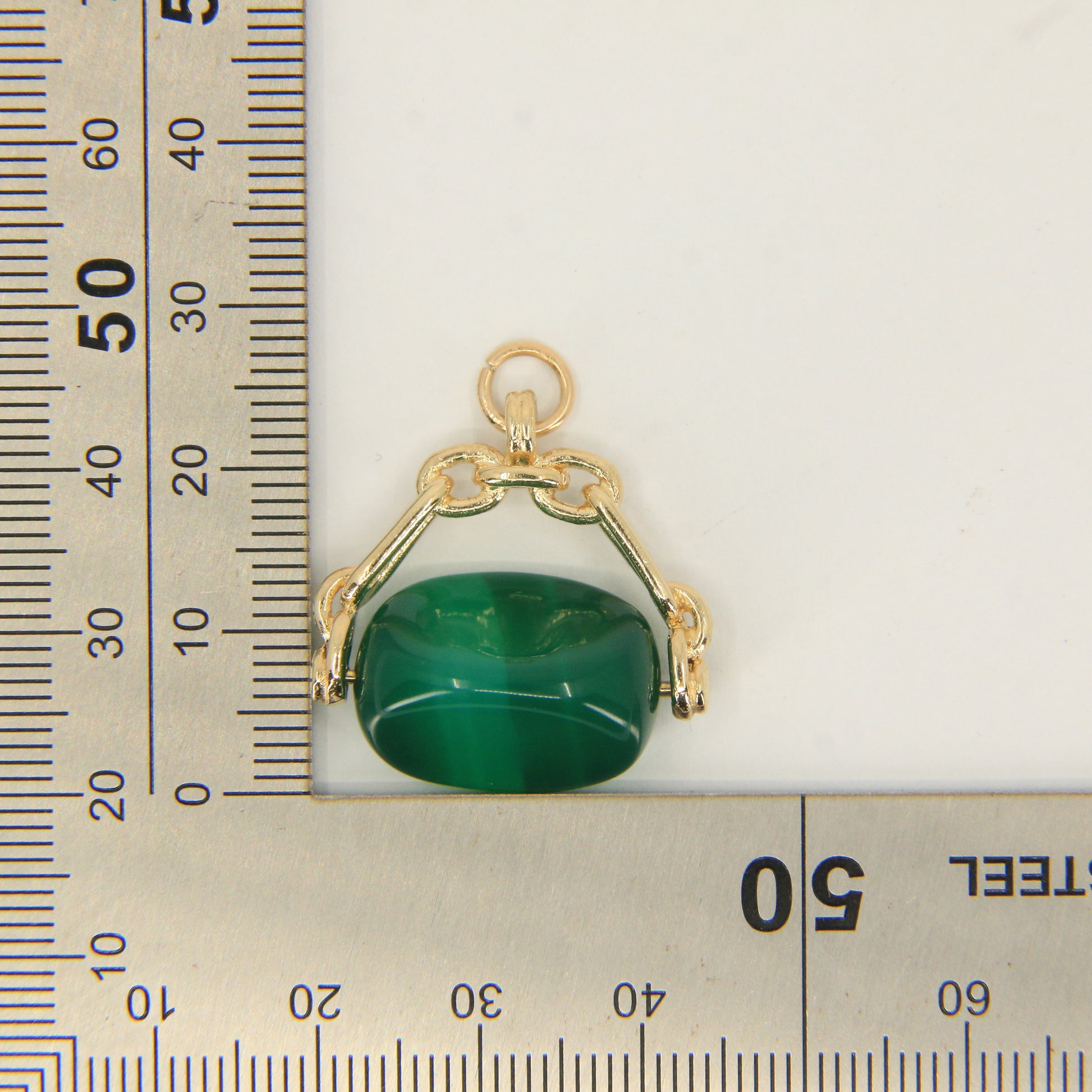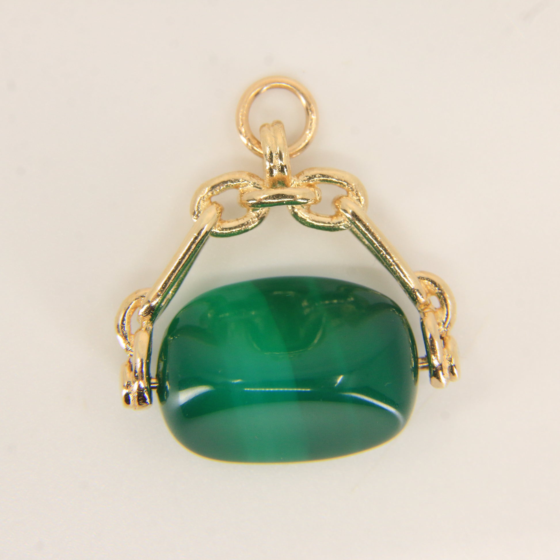 Vintage 9ct Hallmarked Gold Spinner Pendant – Malachite Fob Charm