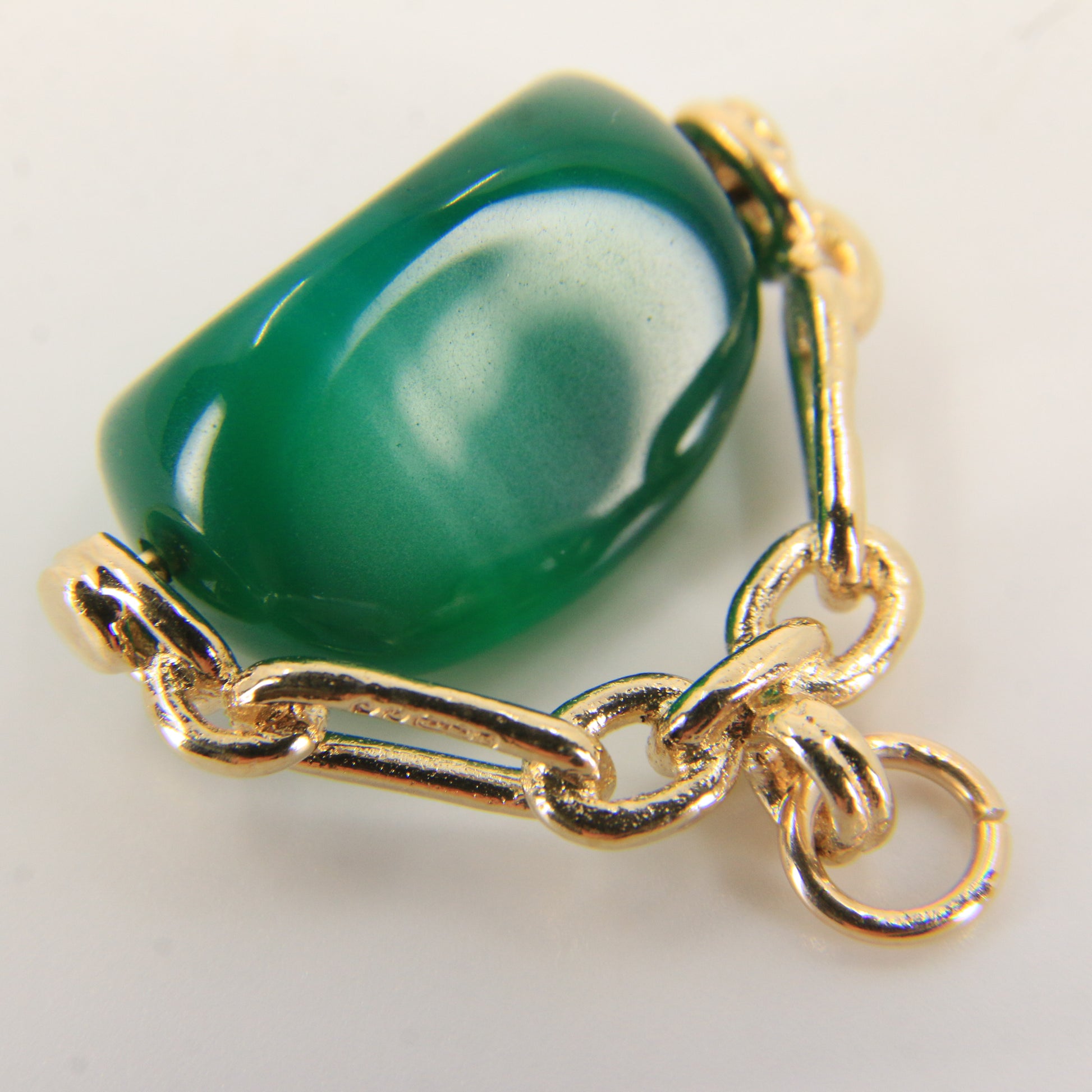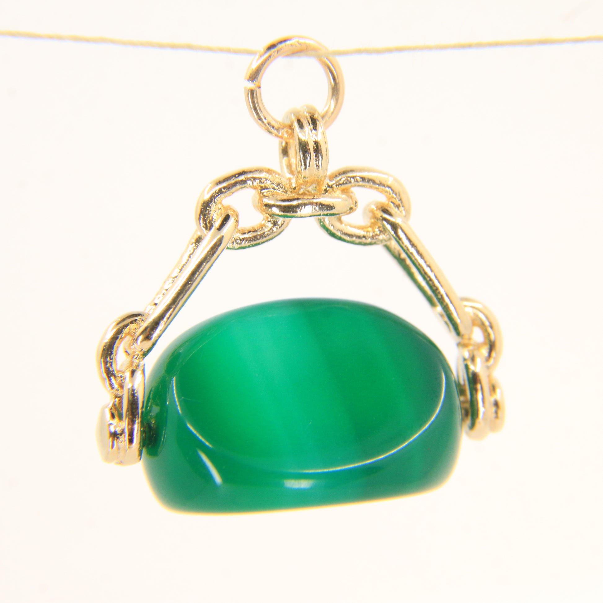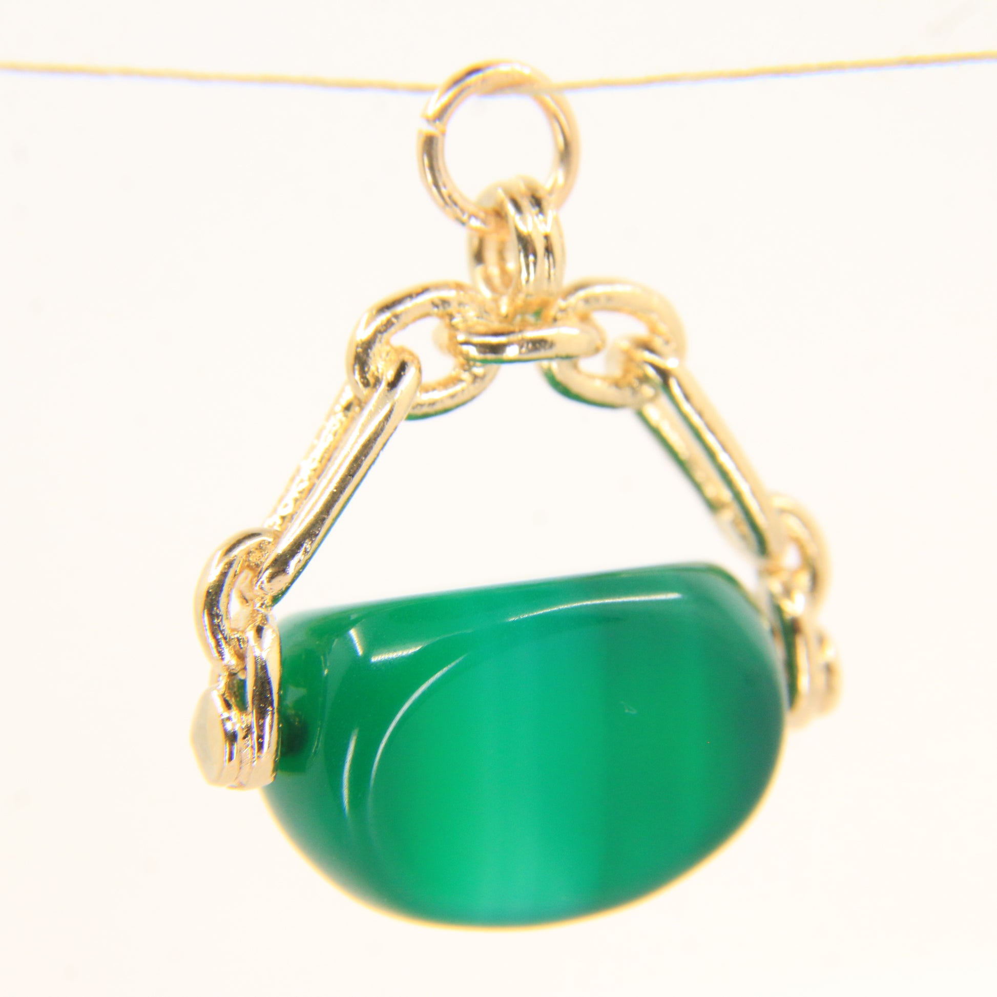 Vintage 9ct Hallmarked Gold Spinner Pendant – Malachite Fob Charm