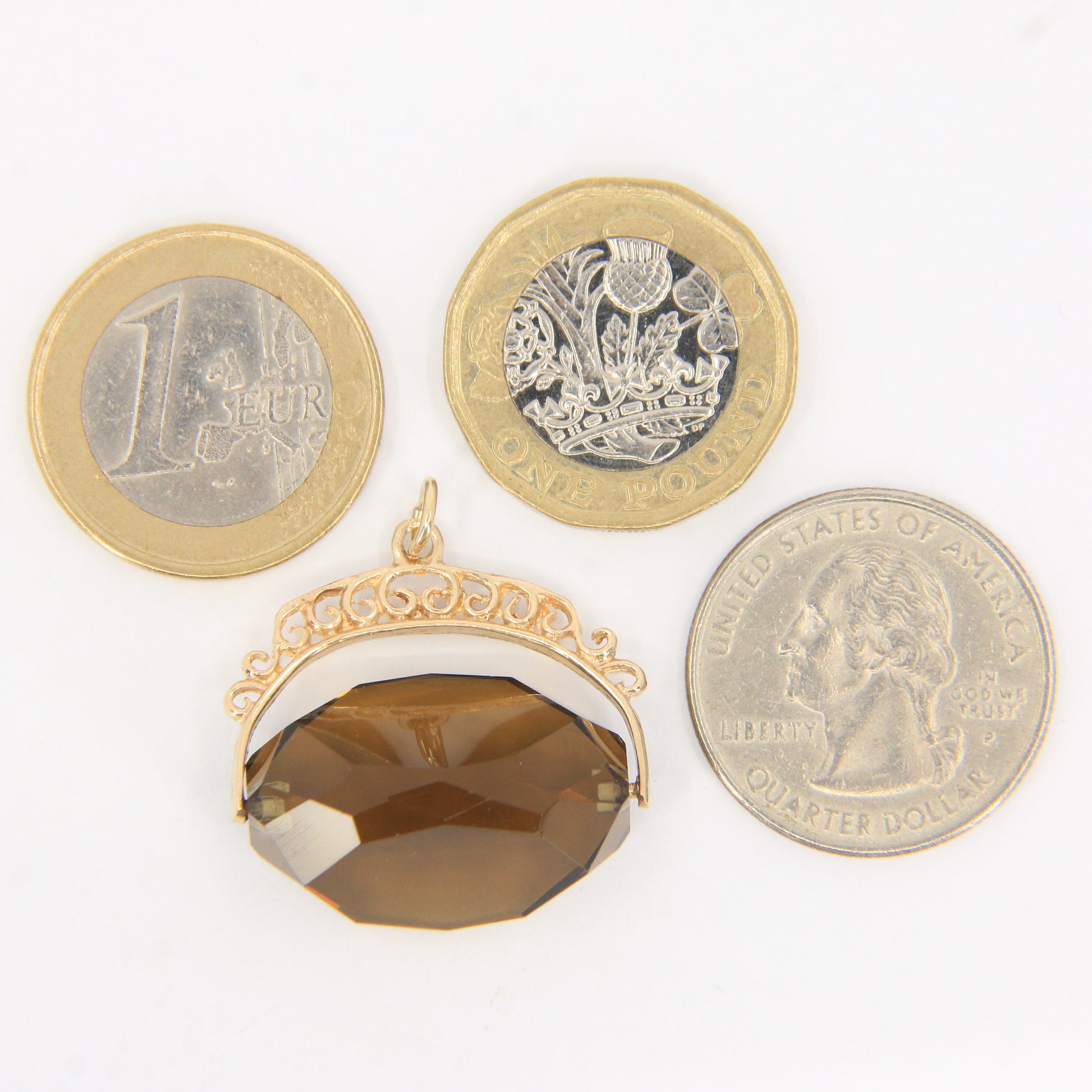Vintage 9ct Hallmarked Smokey Quartz Spinner Fob Pendant Yellow Gold Charm